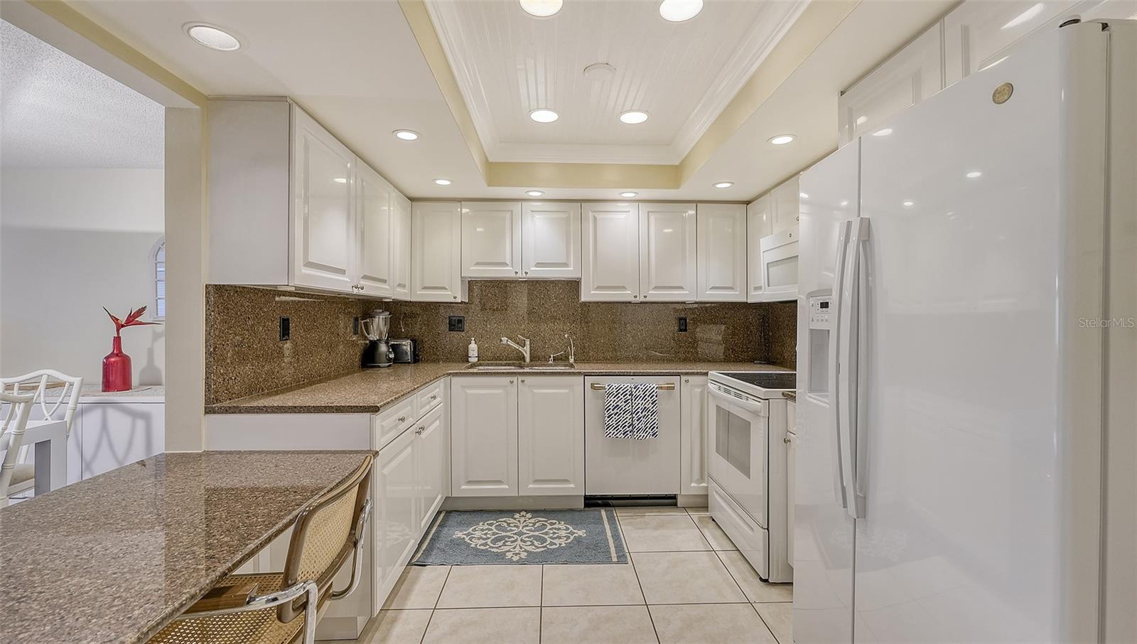 Experience Paradise! This fully furnished, open-concept 2-bedroom, 2-bathroom condo is mere steps from a pristine beach and comes with access to excellent community resort style amenities. The remodeled clubhouse contains exercise facilities, sauna, a library, large kitchen, upgraded audio, large screen TV, and a large patio overlooking the Gulf with multiple grills for resident's use. Nestled in a secluded enclave of Longboat Key, Seaplace is a highly coveted complex right on the Gulf of Mexico. The building itself is in high demand thanks to its proximity to the pool and sugary sands of the beach. Included with this unit is a sought-after covered parking space, along with an additional assigned uncovered spot, both conveniently just a few yards from the unit. Inside, the property boasts a fully renovated kitchen featuring modern appliances, granite countertops, and soft-close cabinets. Other highlights include a tray ceiling and under-mounted lighting. The open layout seamlessly connects the living room, dining room, and kitchen, offering a versatile space for relaxation and family engagement. The association just completed replacement of the building roof and the owner installed a new refrigerator less than a year ago, plus the HVAC system and hot water heater are only 4 years old. For added convenience, a washer and dryer are within easy reach inside the unit, and there's a separate storage unit included. This exceptional unit is in a building nearest to the beach, has an elevator, and is situated on the top floor. A charming path to the beach awaits, complete with chairs for savoring sunsets. Seaplace's gated community offers a range of amenities, including security, a spacious clubhouse, a state-of-the-art fitness center, two swimming pools, two heated spas, and a playground. Additionally, there are three Har-Tru tennis courts and a one-mile walking trail for active residents.The location is convenient, with proximity to the southern end of Longboat Key and nearby essentials like Publix and CVS. For shopping and dining, St. Armand's is just a stone's throw away. Don't miss out on this opportunity to make this piece of paradise your own. Contact us for a private appointment today.