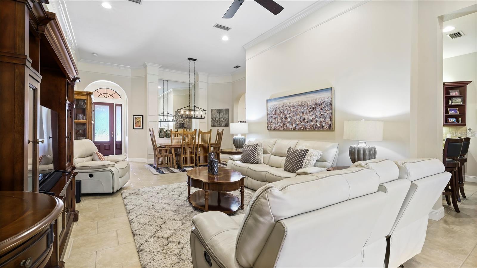 NEW PRICE! THIS IS A BARGAIN FOR LWR COUNTRY CLUB. Need a winter home? This Country Club property could be it. You will not find one better maintained. This beautifully appointed home has everything you need and you will love the extra large screened lanai with natural gas for your grill. The great room and two spacious bedrooms and Den provide plenty of living space for you and your guests. The high ceilings with custom crown molding make the home seem even larger. The beautiful upgraded kitchen with butler's pantry and eat in kitchen nook make living here a dream. The floors in the main living areas are offset tile and the bedrooms and den are stunning high quality laminate. And what could be better than having the lawn and landscaping done for you every week. This is a very affordable home for the Country Club. PLUS, no need to maintain a pool because your personal community pool is just a block away and includes a hottub and an outdoor kitchen/grilling area. This Lakewood Ranch home creates the ideal Florida living experience for an upscale lifestyle to enjoy in the nation's #1 selling community. Explore the varied exclusive memberships of golf, tennis, pickle ball, pools, fitness, dining, and shopping. Enjoy the many events of Lakewood Ranch including Music on Main every month.