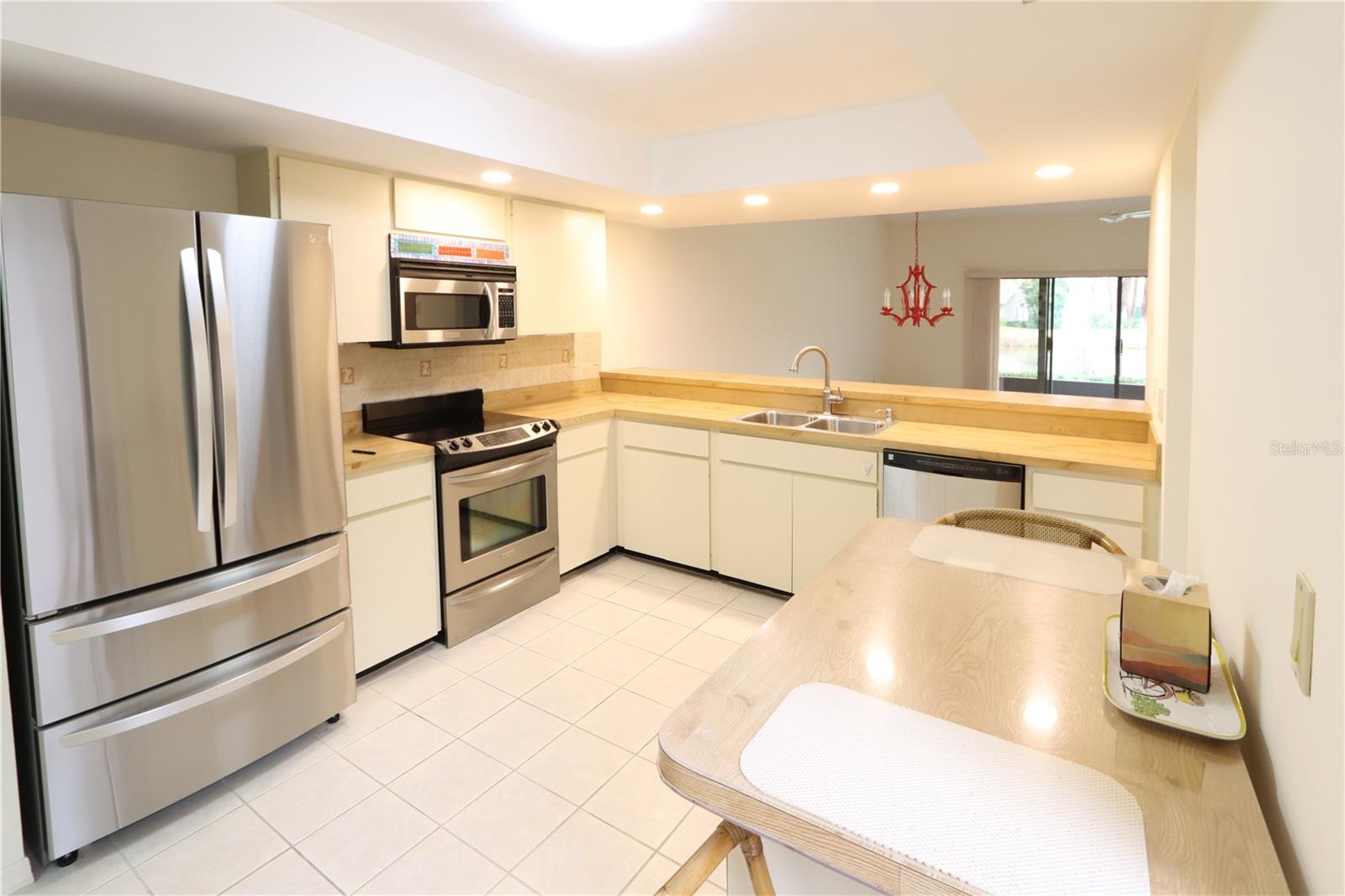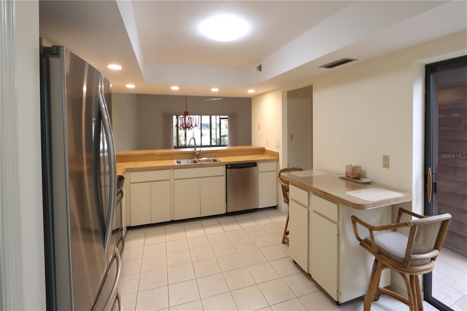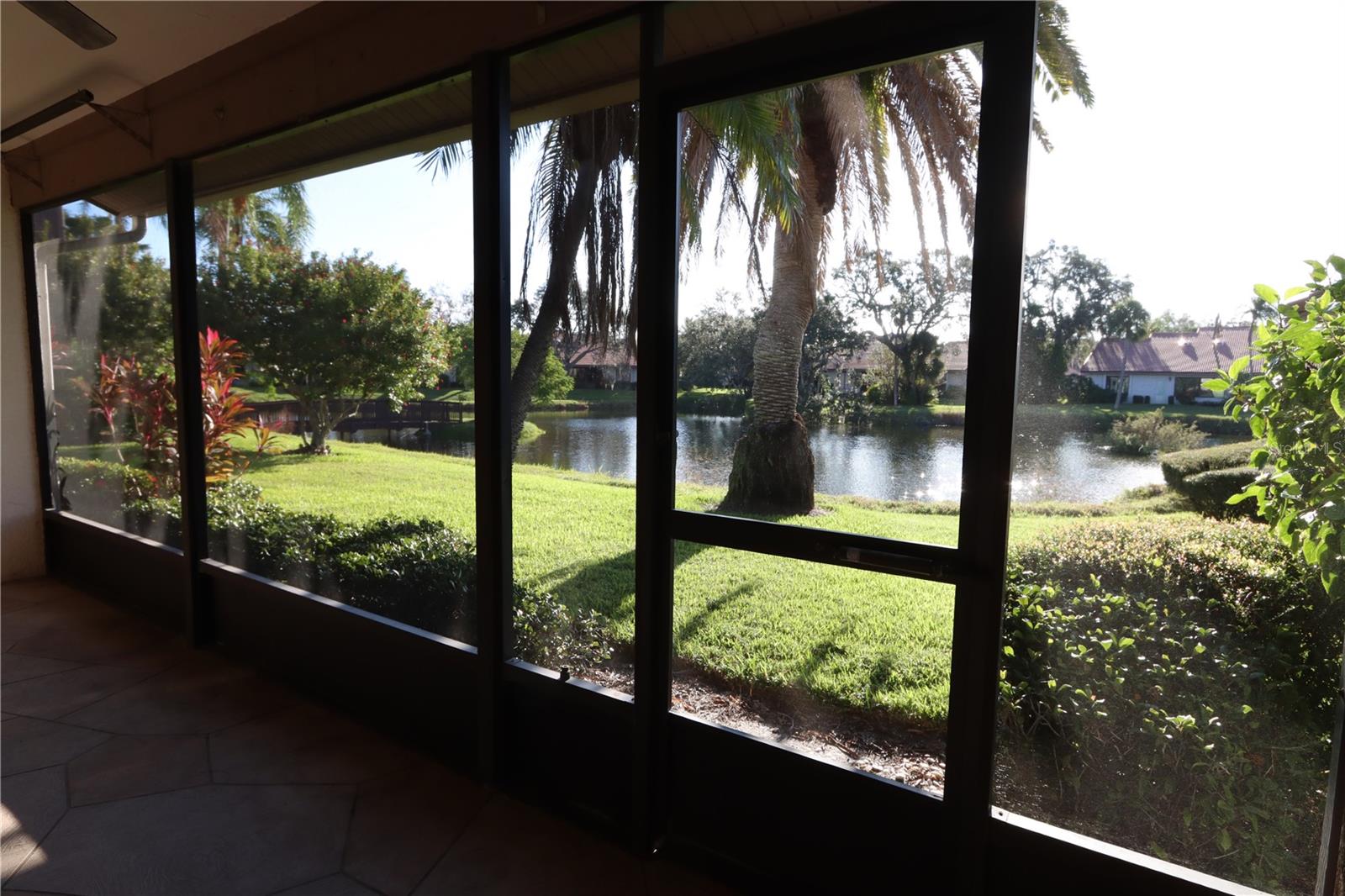 Florida living at its best. Beautiful expansive lake views from your living area and lanai, tranquil setting and very convenient to shopping, restaurants, medical facilities, public golfing, beaches of Siesta Key, the Legacy Trail and downtown Sarasota. This 55+ community provides a heated community pool, tennis courts, community center with billiard room and regular community activities. And the association just approved the addition of two pickleball courts. Enjoy the privacy of your comfortable two bedroom villa with vaulted ceilings, spacious two car garage, eat in kitchen, updated baths. HVAC system replaced in 2019, roof 2007, refrigerator 2022 and fabric hurricane shields for patio doors.