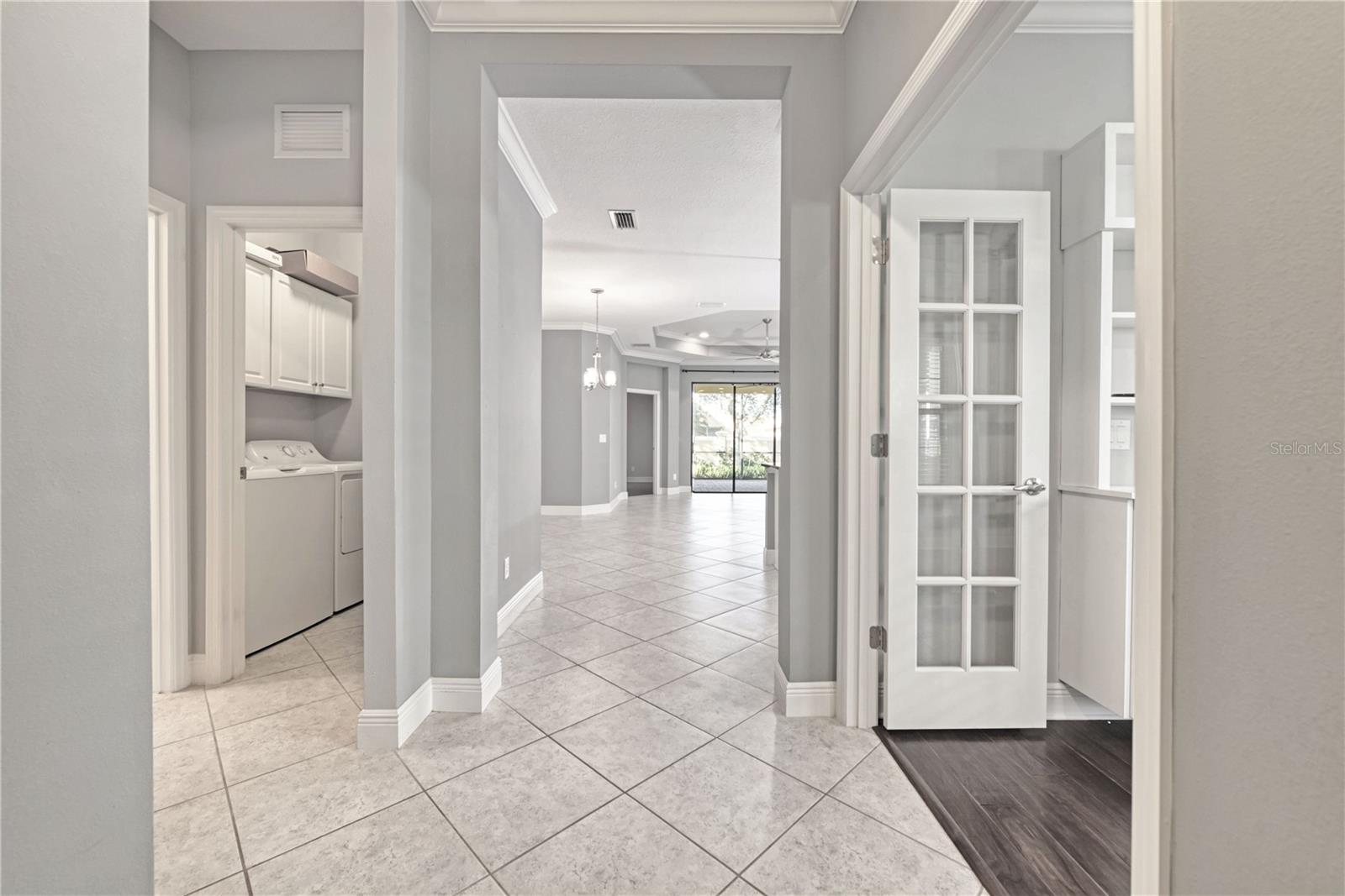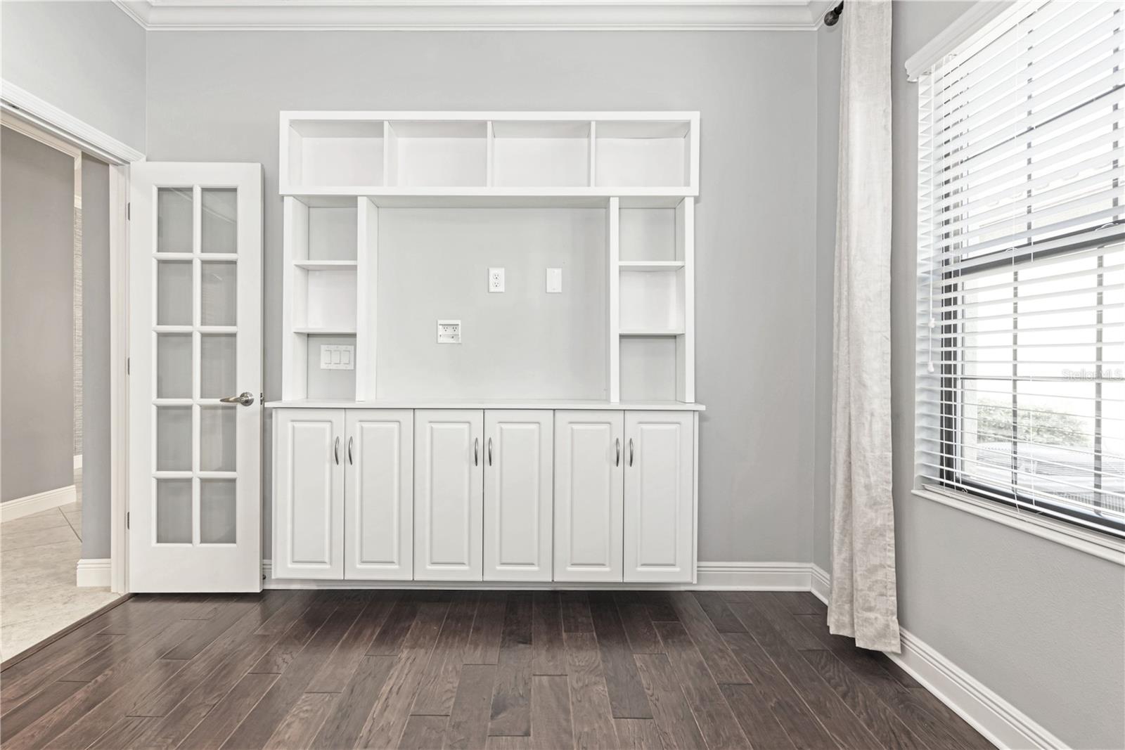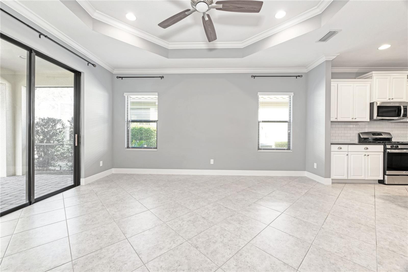 One or more photo(s) has been virtually staged. Discover elegance in the heart of Villa Amalfi neighborhood! Built in 2016 by Neal Communities, this Tidewater model offers a grand open floorplan with 2BR/2BA plus a study. Enjoy built-ins in the primary room and study, wood flooring, and a separate dining room. The 2-car garage and private entrance add convenience. Located directly across from community amenities, including an outdoor grill and pool, this villa offers the best location in the neighborhood. No CDD fees. Close to University Town Center, beaches, and the i75. The screened-in lanai with brick pavers is perfect for outdoor living. Don't miss the chance to call this stunning villa home!