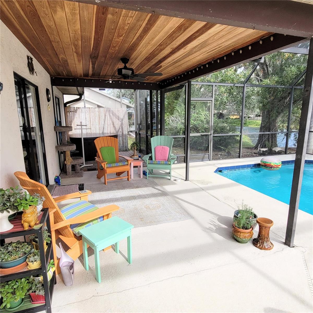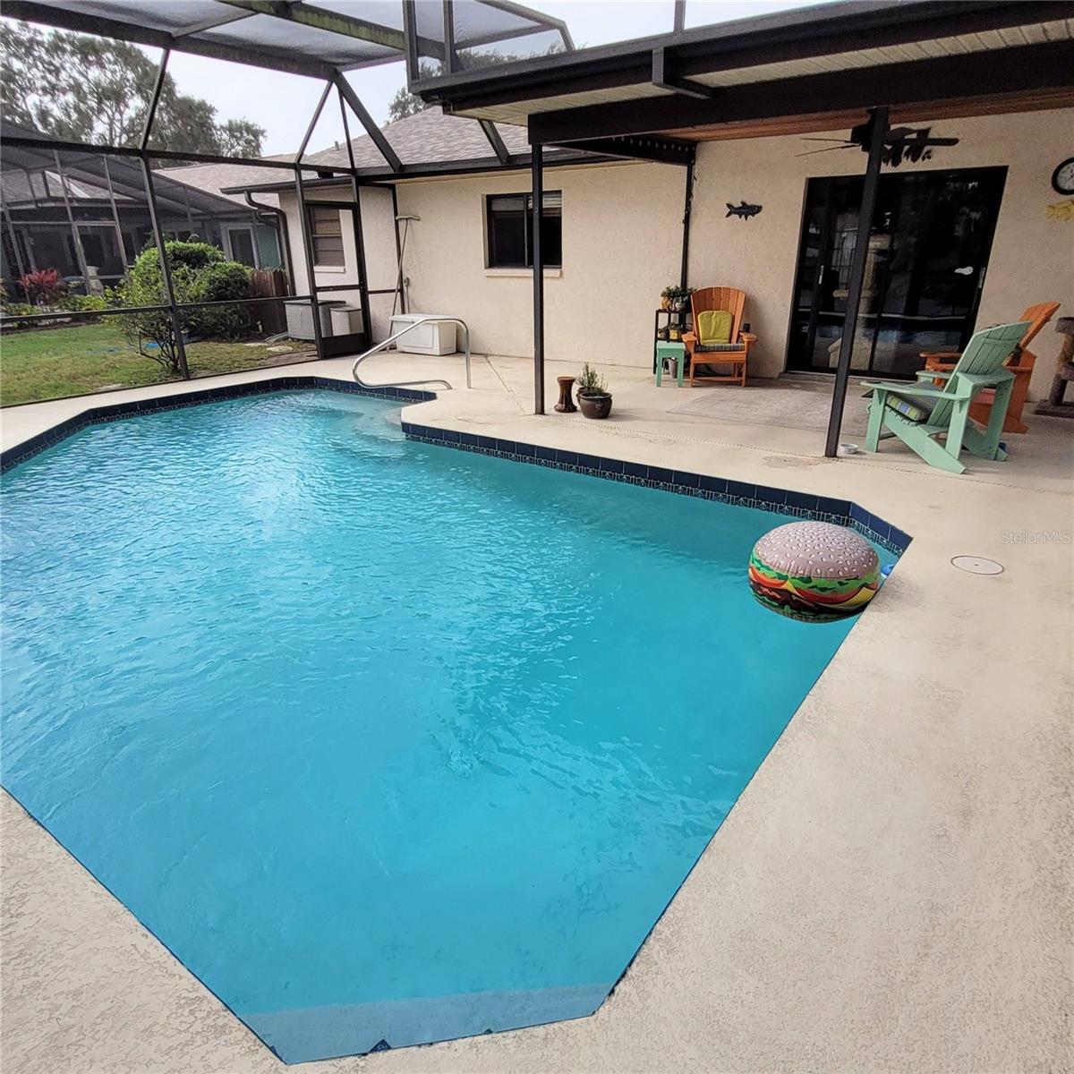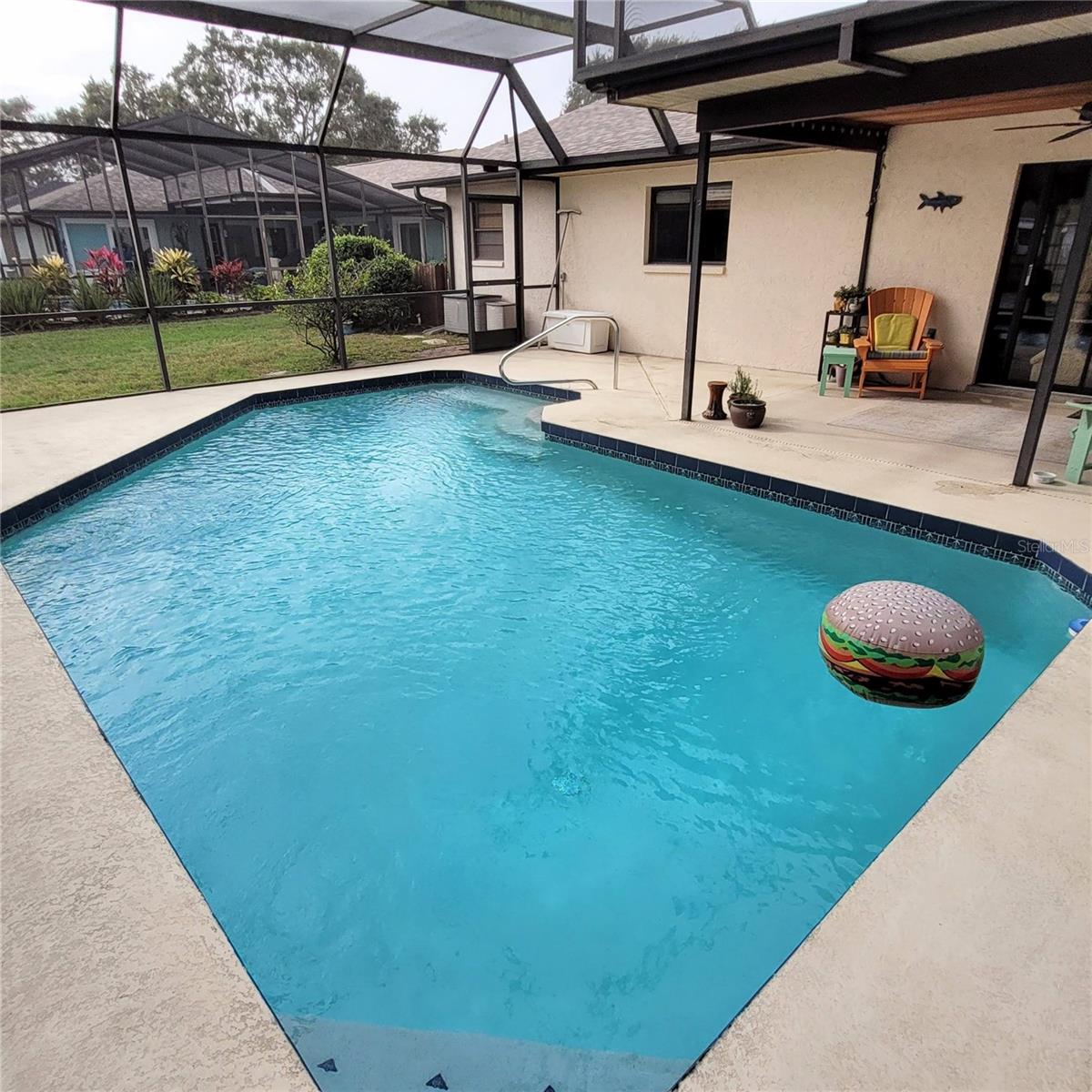 Don't Miss This Opportunity on 1/3 of an Acre! Located on a Dead End Street this Super 3 Bedroom, 2 Bathroom, 2 Car Garage Pool Home Sits on a Wonderful Pond Setting! Updates include New Roof June 2023, AC 2017, Hot Water Heater 2015 and Pool Resurface 2017. Features include Hot Tub on the Lanai, Wood Burning Fireplace & Vaulted Ceiling in the Living Room, Large Kitchen and Foyer Entry. Shelves in Garage Remain with the Property along with 2nd Refrigerator and Washer & Dryer. Ceiling Stain Around Fireplace is Old as the leak was repaired in 2008 and the Roof has been replaced. Some Furniture May Be Available, if needed. The Sprinkler System Works, But May Need a Tune-Up In Terms of The Automatic Timer. Seller Does Not Use Timer.