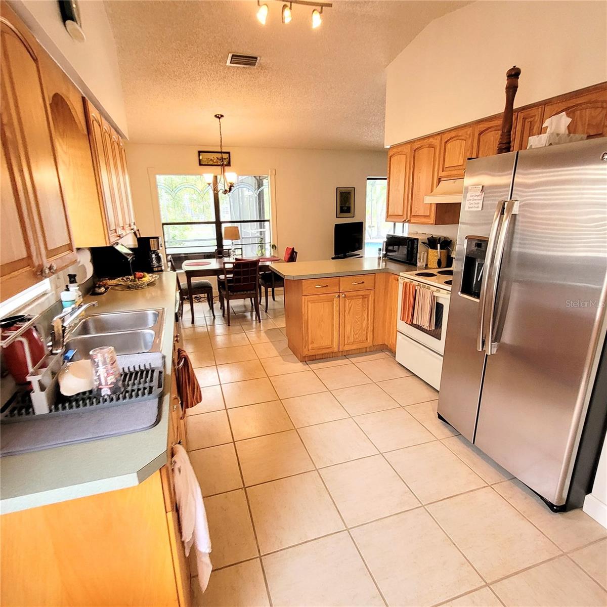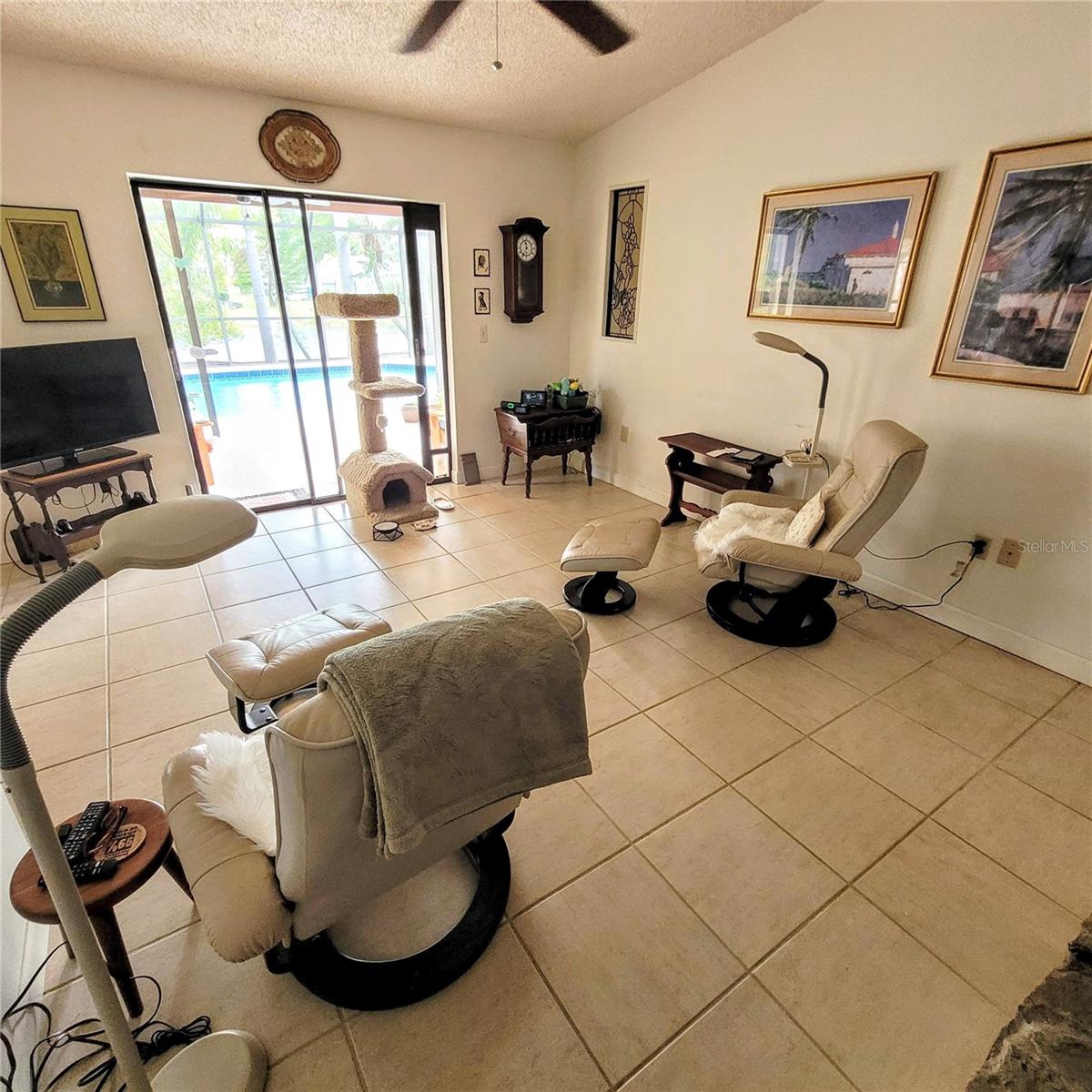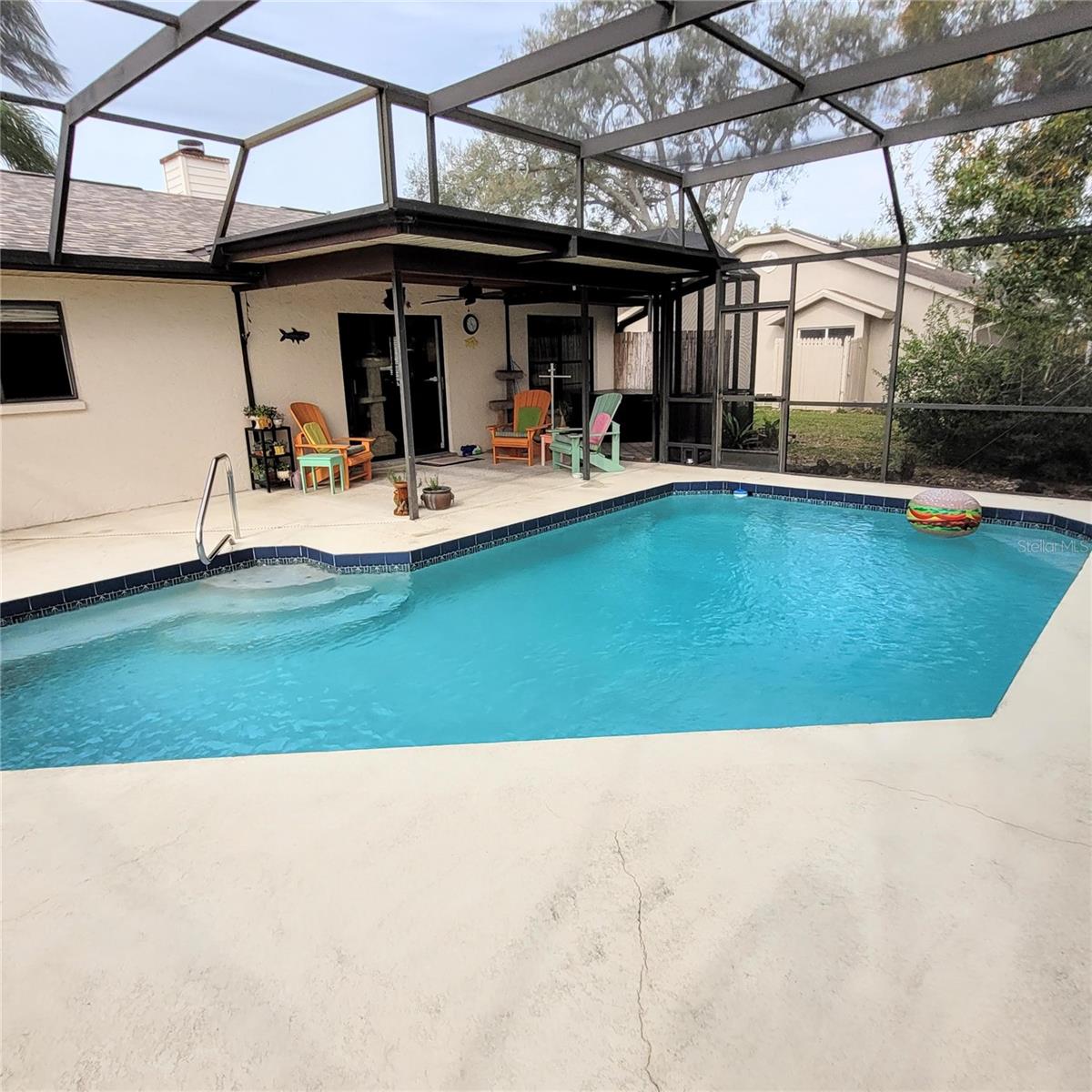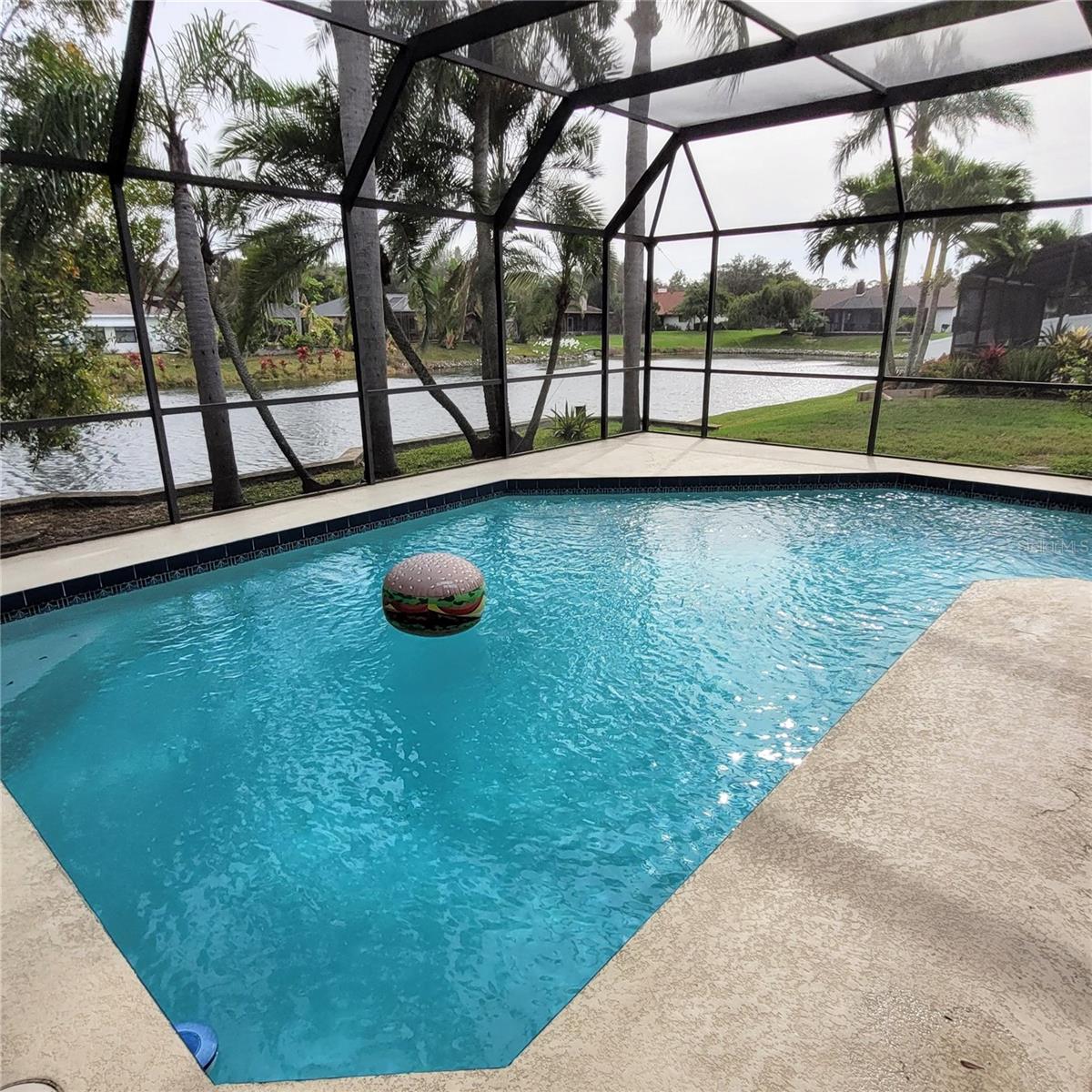 Don't Miss This Opportunity on 1/3 of an Acre! Located on a Dead End Street this Super 3 Bedroom, 2 Bathroom, 2 Car Garage Pool Home Sits on a Wonderful Pond Setting! Updates include New Roof June 2023, AC 2017, Hot Water Heater 2015 and Pool Resurface 2017. Features include Hot Tub on the Lanai, Wood Burning Fireplace & Vaulted Ceiling in the Living Room, Large Kitchen and Foyer Entry. Shelves in Garage Remain with the Property along with 2nd Refrigerator and Washer & Dryer. Ceiling Stain Around Fireplace is Old as the leak was repaired in 2008 and the Roof has been replaced. Some Furniture May Be Available, if needed. The Sprinkler System Works, But May Need a Tune-Up In Terms of The Automatic Timer. Seller Does Not Use Timer.