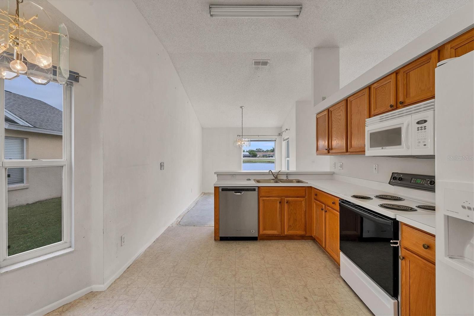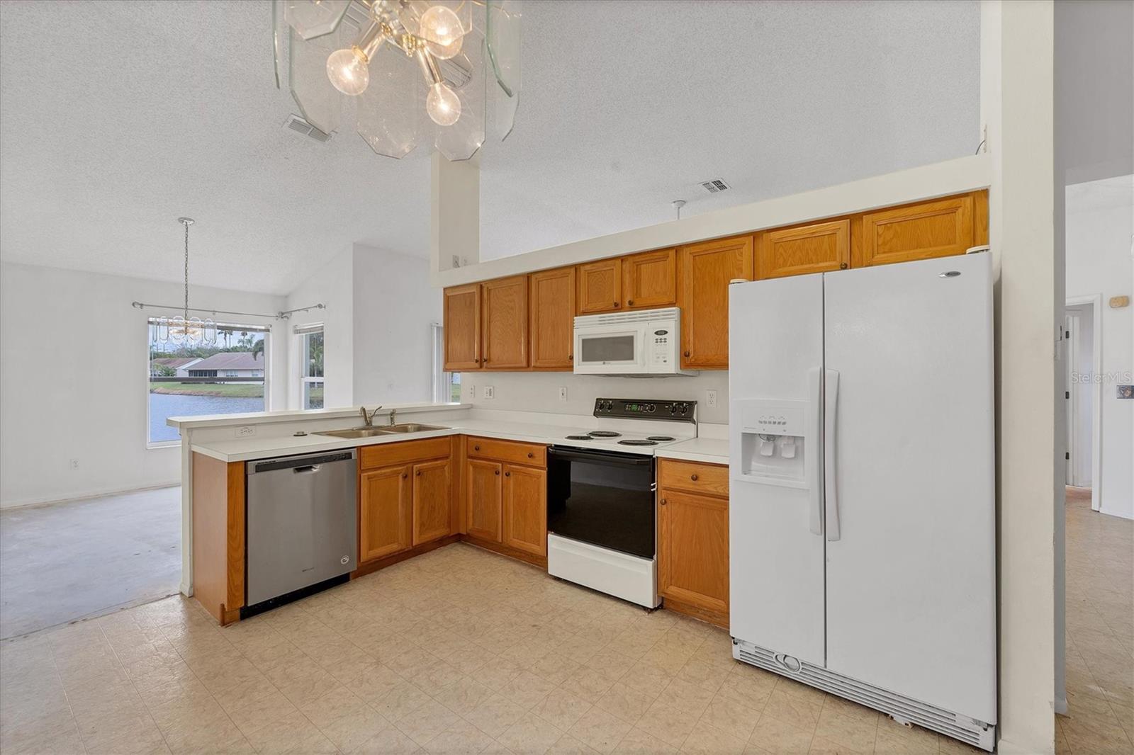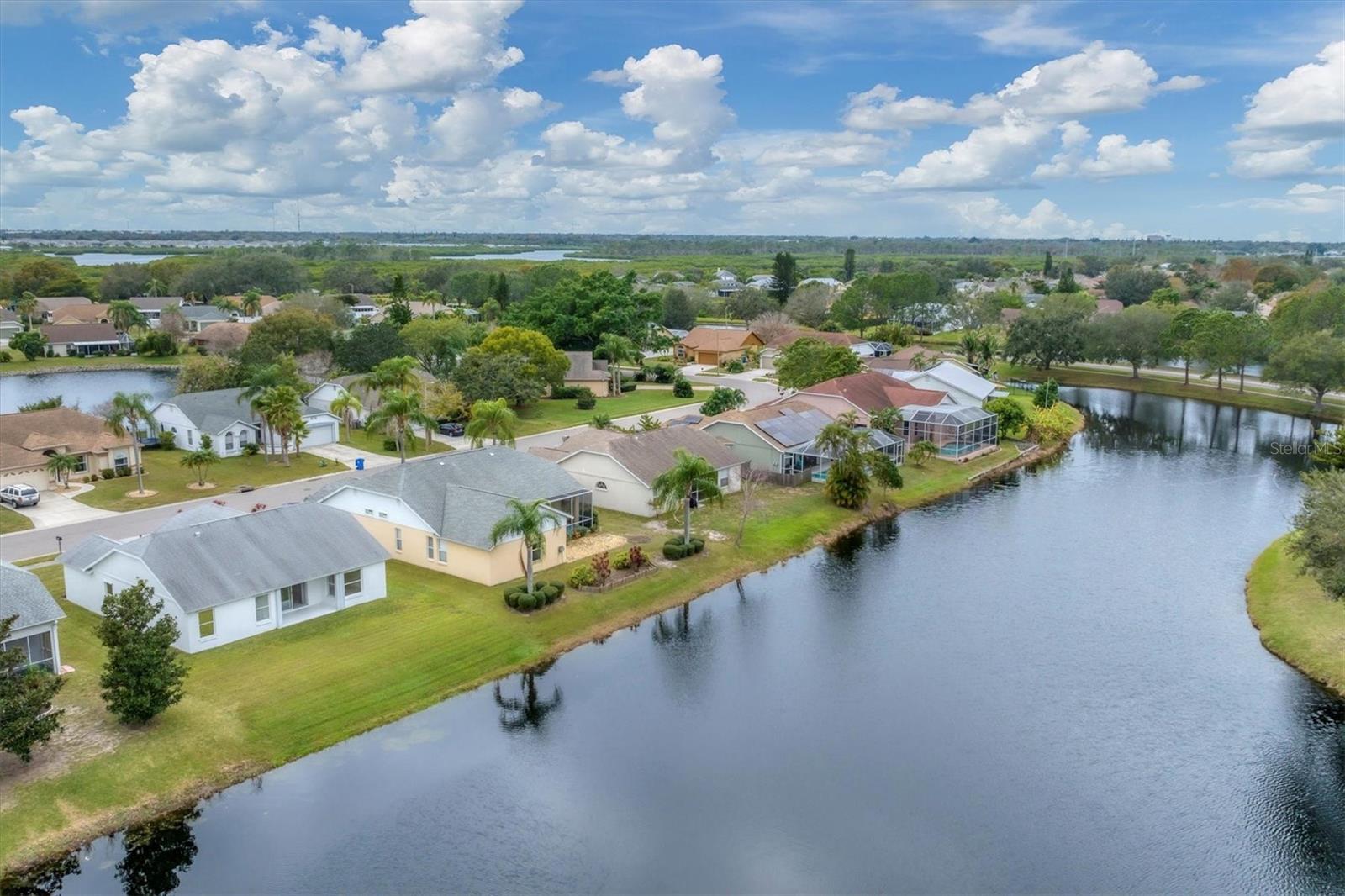 One or more photo(s) has been virtually staged. Lakefront, 3 Bedroom, 2 Bath, 1529 sq ft home with 2 Car Garage (re-enforced garage door). This home offers the best wide-open view of the Lake in our opinion, and we think you'll agree. NEW roof 3/24, with 30-year workmanship and 50-year material warranties transferable to the new owner(s) /buyer (s). LVP (Luxury Vinyl Plank) wood plank-looking flooring 3/24. Ceiling to floor freshly painted interior 2/24. A security system is in place, Hurricane shutters stored in the garage. New shutoff valves on all bathroom toilets and sinks and the master bath shower head and Kohler toilet replaced in master. New light fixtures in entrance, dining room, living room and master bedroom, new fan in 3ed bedroom. Irrigation system. Braden River Lakes is a neighborhood set along the gorgeous banks of the Braden River. About 2 blocks from community amenities overlooking the river include a community pool, 2 Gazebos, pickleball or tennis, volleyball, picnicking, and a playground, residents of this home can enjoy river access for kayaks, paddle boards, or canoes! Braden River Lakes offers one of the best locations in Bradenton. Located just west of I-75 on State Road 64, Braden River Lakes is conveniently located near grocery stores, hospitals, and many businesses are all accessible from this community. Plus, only 14-mile drive to the sugar sands of Anna Marie Island beaches on the Gulf of Mexico. Close to Bradenton, Sarasota, Lakewood Ranch, St Pete, and Tampa too!