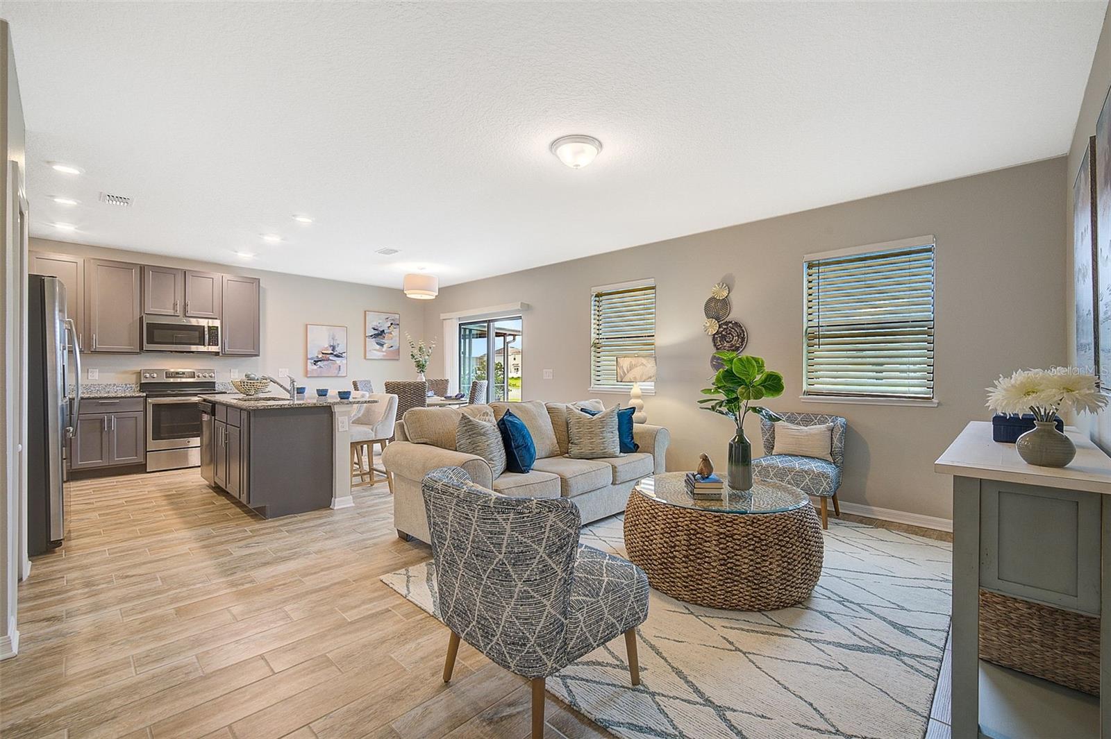Absolutely beautiful lakeview home! Be sure to put this Willow Walk home at the top of your list; it's a must see! The curb appeal is outstanding with attractive, mature Florida landscaping and a great architectural home design. The interior is beautiful and the layout is perfect. Offering a 3 bedroom split floor plan, 2 bathrooms, open concept kitchen, dining room and living room floor plan, as well as a two car garage it's just the right size. The kitchen highlights include stainless steel appliances, shaker style cabinets, granite countertops, a breakfast bar, pantry, and view of the lake. The home has elegant plank tile floors in the baths and main rooms, with comfortable carpet in the bedrooms. The view of the lake from the living room and patio make for a relaxing retreat. The large community pool invites you to spend time enjoying the Florida sunshine.This Maronda home presents an exceptional opportunity. Swift closing is possible, so arrange a showing today--you could be settling into your dream home in just a few short weeks!