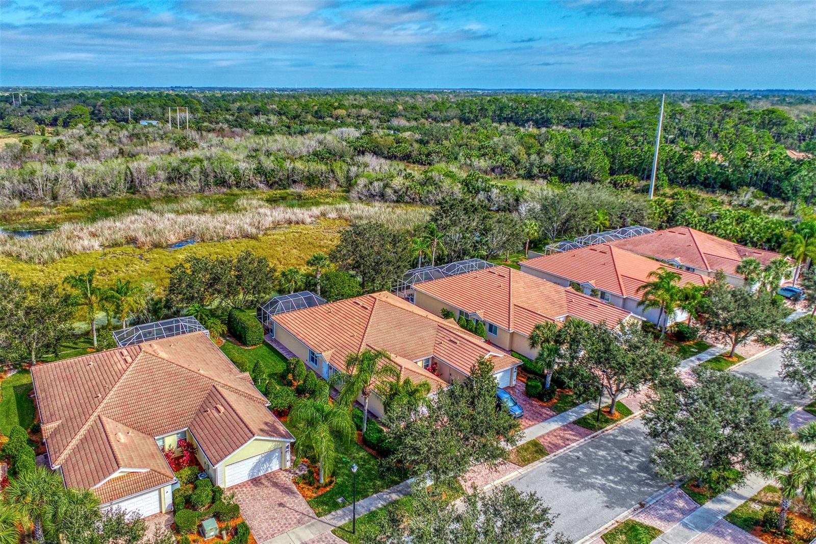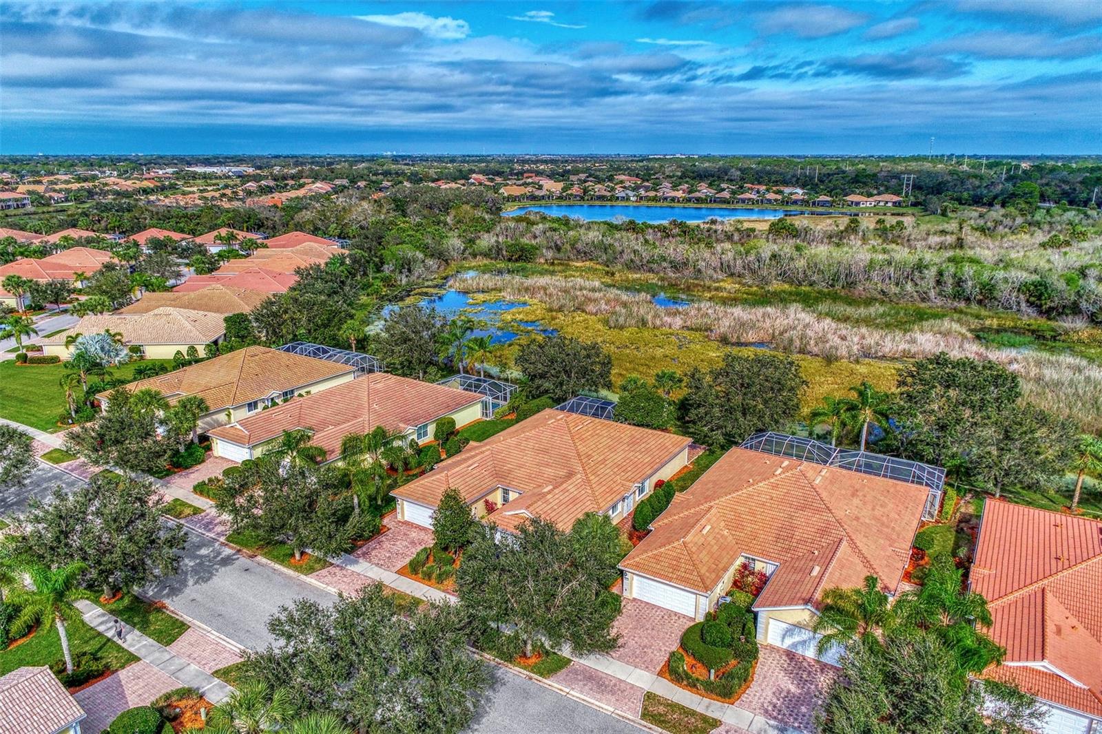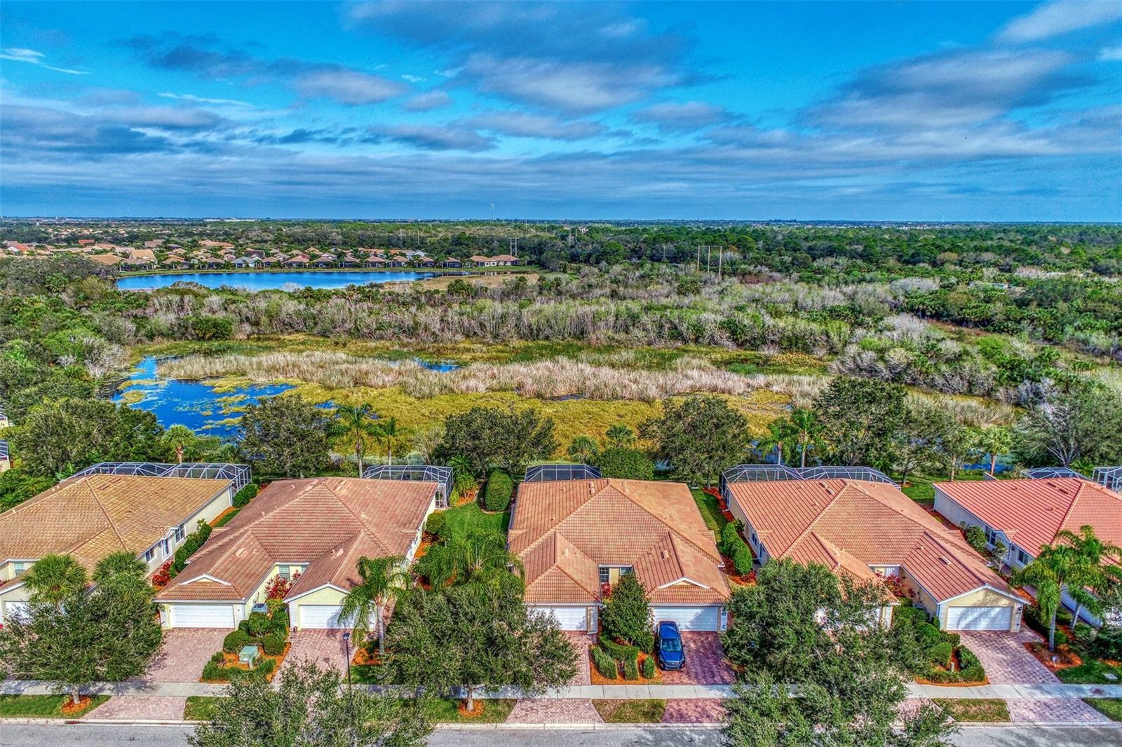 PRICE REDUCTION! Enjoy living in the friendly, resort-style Isles of Sarasota which is a maintenance-free community and located on Palmer Ranch in Sarasota. This villa has been well-maintained, is turn-key furnished, immaculate and is move-in ready. Built by Divosta, this is the popular Carrington floor plan featuring 3 bedrooms, 2 baths and a 2-car garage (with sink). Delightful water/preserve/wetlands views with an abundance of Florida wildlife are observable from most of the home. The kitchen has stainless steel appliances a new dishwasher, white cabinets, Corian countertops & LED lighting under cabinets. There is ceramic tile underneath the carpeted bedrooms so a switch to an all-tile home is east to do. Cabinets were added to the laundry room for extra storage space. The attic area above the interior lanai was insulated. The guest bathroom has a Jucuzzi bathtub with heater. A 240 volt outlet was added in the garage for EV charging. Accordion hurricane shutters and high-impact sliders provide peace of mind for the year-round or seasonal owner. The large lanai cage (27'x19') spans the complete rear of the home. Paver bricks were added from front door to the lanai cage and inside the lanai. The exterior of the home was painted in 2021, the interior in 2022.The Isles offers a variety of amenities such as a fitness center, heated resort-style pool, pickleball, 4 lighted tennis courts, bocce, a basketball court, tot lot, clubhouse with multiple social events and classes in the recreation center, and an onsite activities director. The Isles has a vibrant tennis community. You will be close to shopping, dining options, the new Sarasota Memorial Hospital, the Legacy Trail, world renowned Siesta Key Beach and the many cultural venues near downtown Sarasota. You will make friends in The Isles!