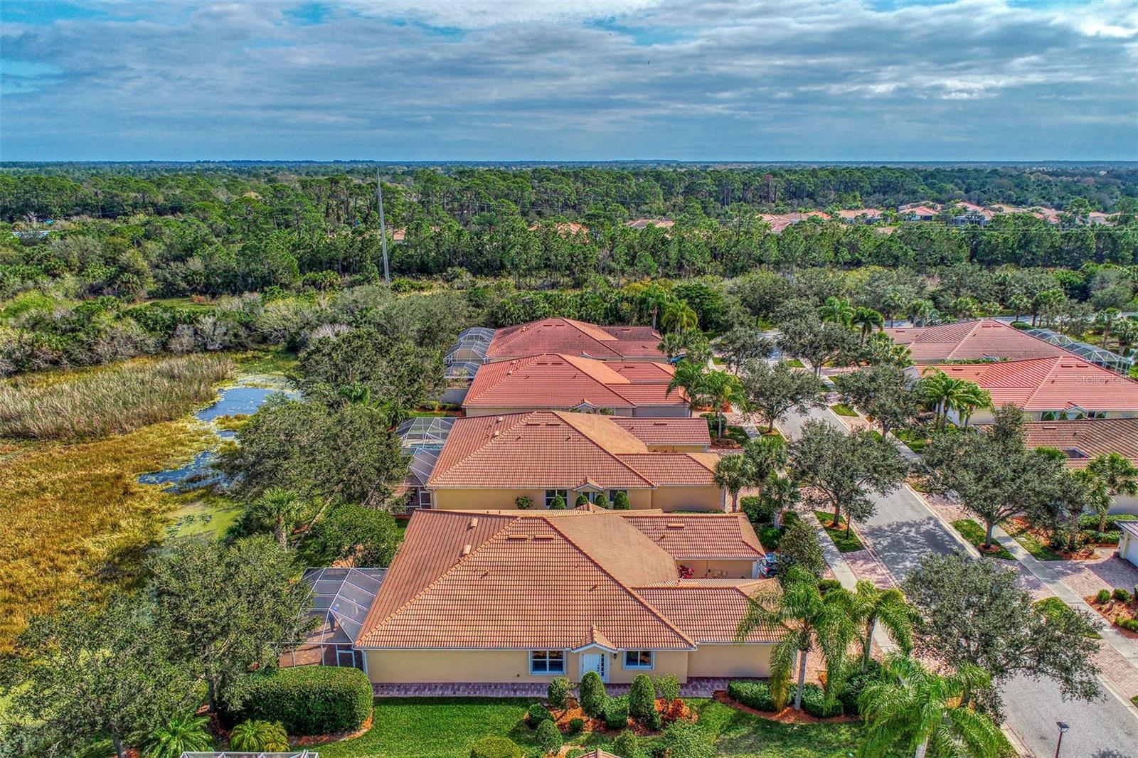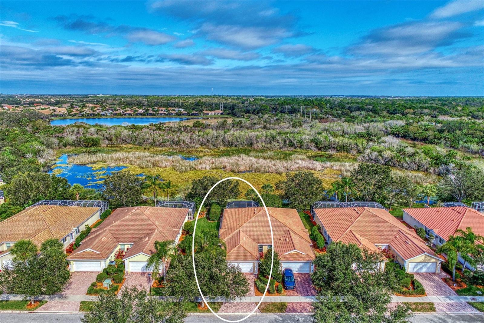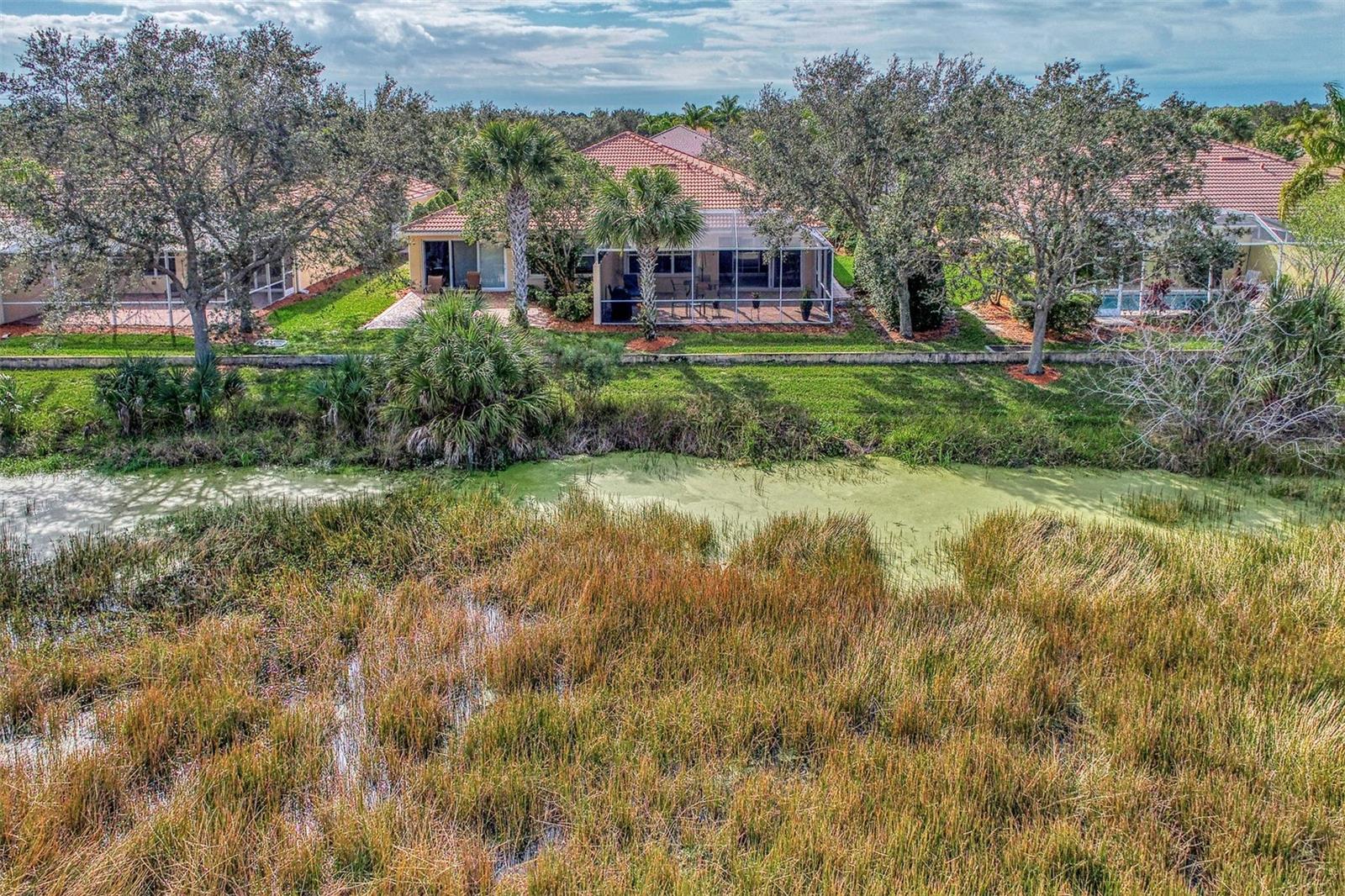 PRICE REDUCTION! Enjoy living in the friendly, resort-style Isles of Sarasota which is a maintenance-free community and located on Palmer Ranch in Sarasota. This villa has been well-maintained, is turn-key furnished, immaculate and is move-in ready. Built by Divosta, this is the popular Carrington floor plan featuring 3 bedrooms, 2 baths and a 2-car garage (with sink). Delightful water/preserve/wetlands views with an abundance of Florida wildlife are observable from most of the home. The kitchen has stainless steel appliances a new dishwasher, white cabinets, Corian countertops & LED lighting under cabinets. There is ceramic tile underneath the carpeted bedrooms so a switch to an all-tile home is east to do. Cabinets were added to the laundry room for extra storage space. The attic area above the interior lanai was insulated. The guest bathroom has a Jucuzzi bathtub with heater. A 240 volt outlet was added in the garage for EV charging. Accordion hurricane shutters and high-impact sliders provide peace of mind for the year-round or seasonal owner. The large lanai cage (27'x19') spans the complete rear of the home. Paver bricks were added from front door to the lanai cage and inside the lanai. The exterior of the home was painted in 2021, the interior in 2022.The Isles offers a variety of amenities such as a fitness center, heated resort-style pool, pickleball, 4 lighted tennis courts, bocce, a basketball court, tot lot, clubhouse with multiple social events and classes in the recreation center, and an onsite activities director. The Isles has a vibrant tennis community. You will be close to shopping, dining options, the new Sarasota Memorial Hospital, the Legacy Trail, world renowned Siesta Key Beach and the many cultural venues near downtown Sarasota. You will make friends in The Isles!