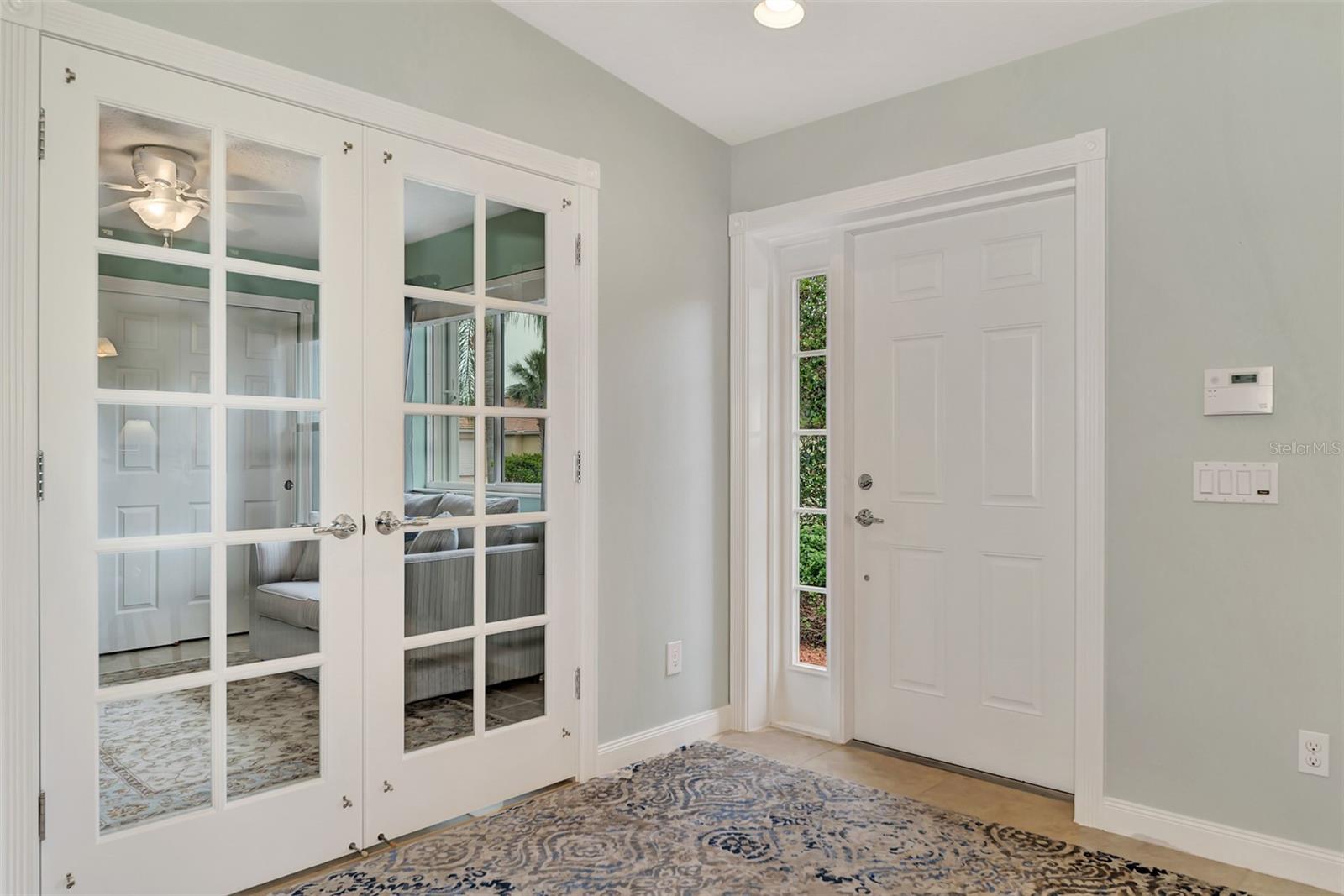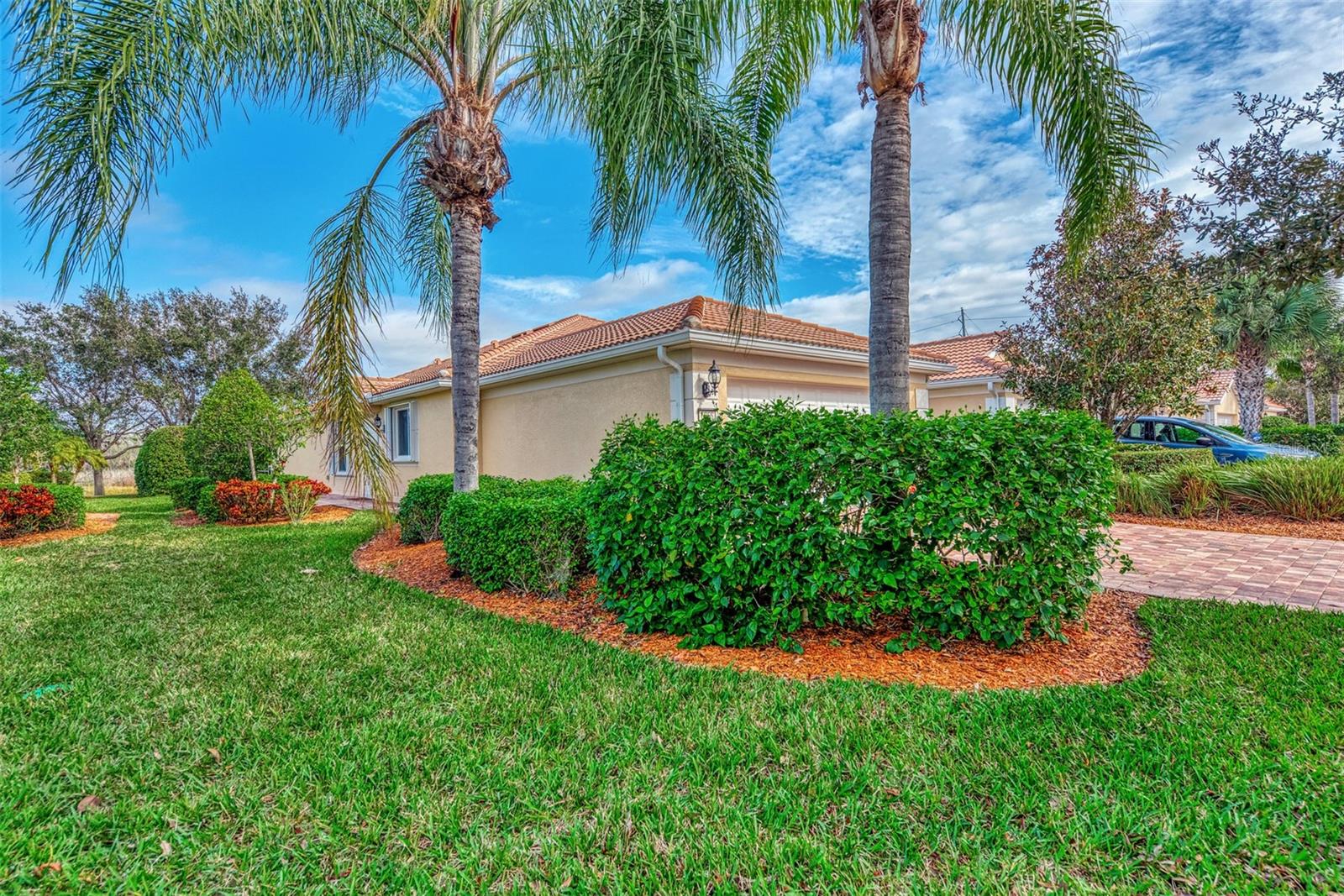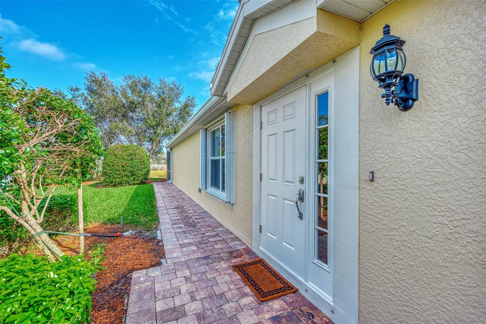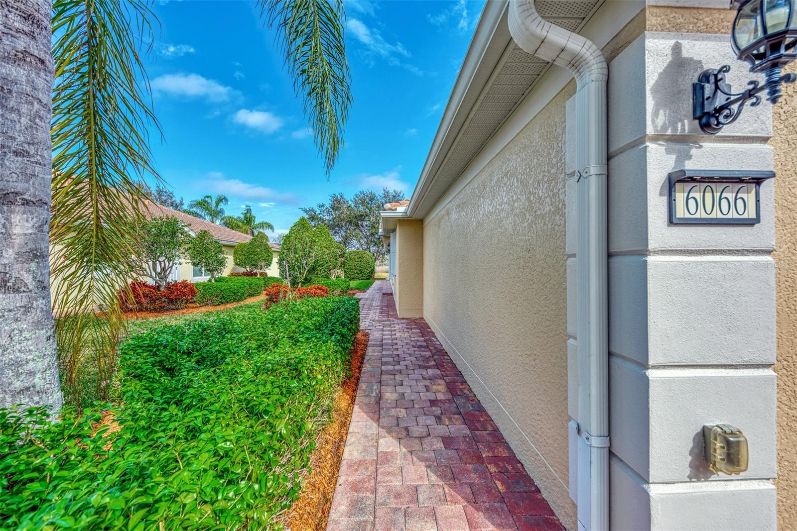 Exterior: Hurricane Shutters, Rain Gutters, Sidewalk, Sliding Doors