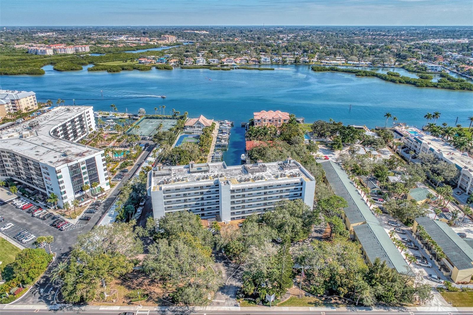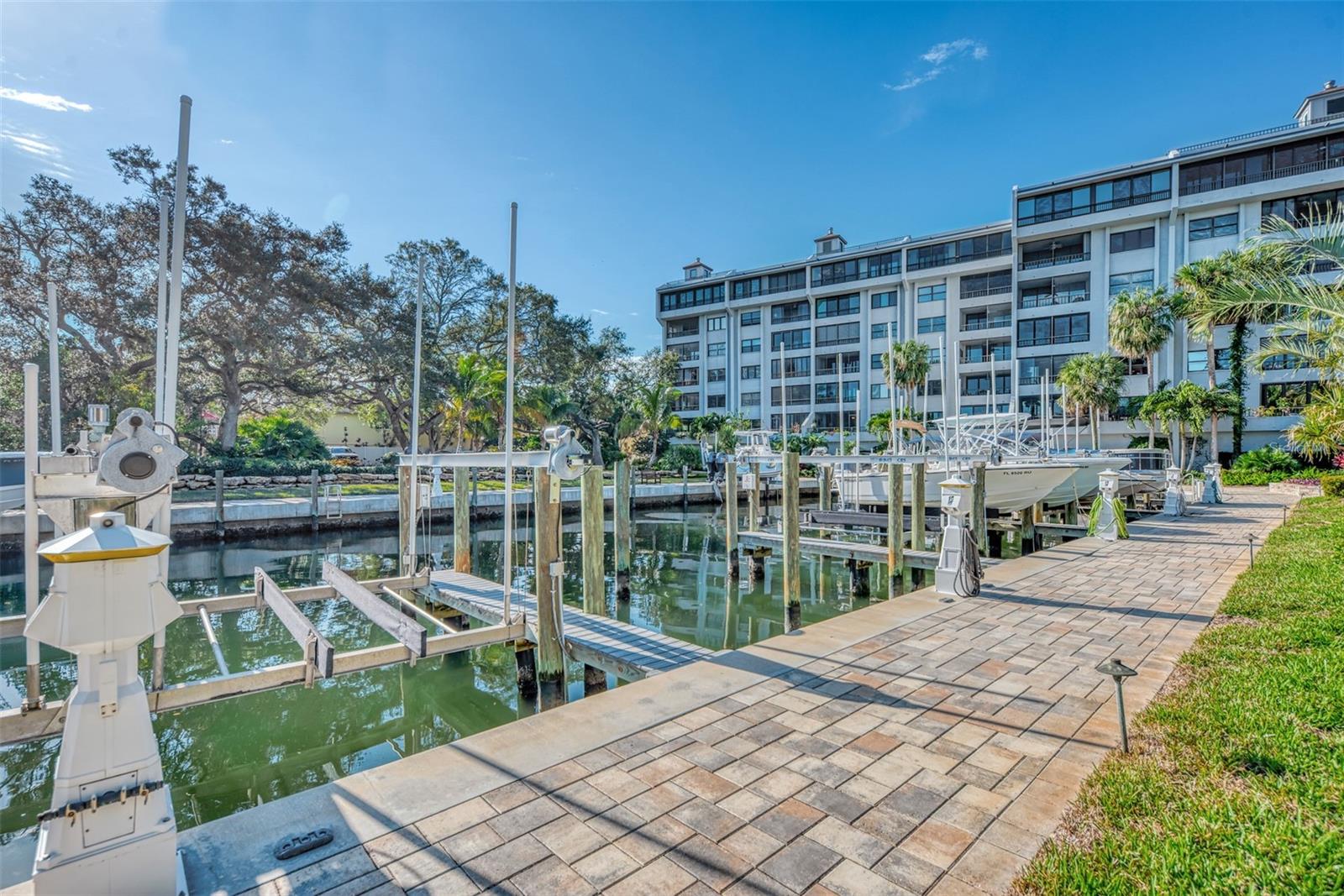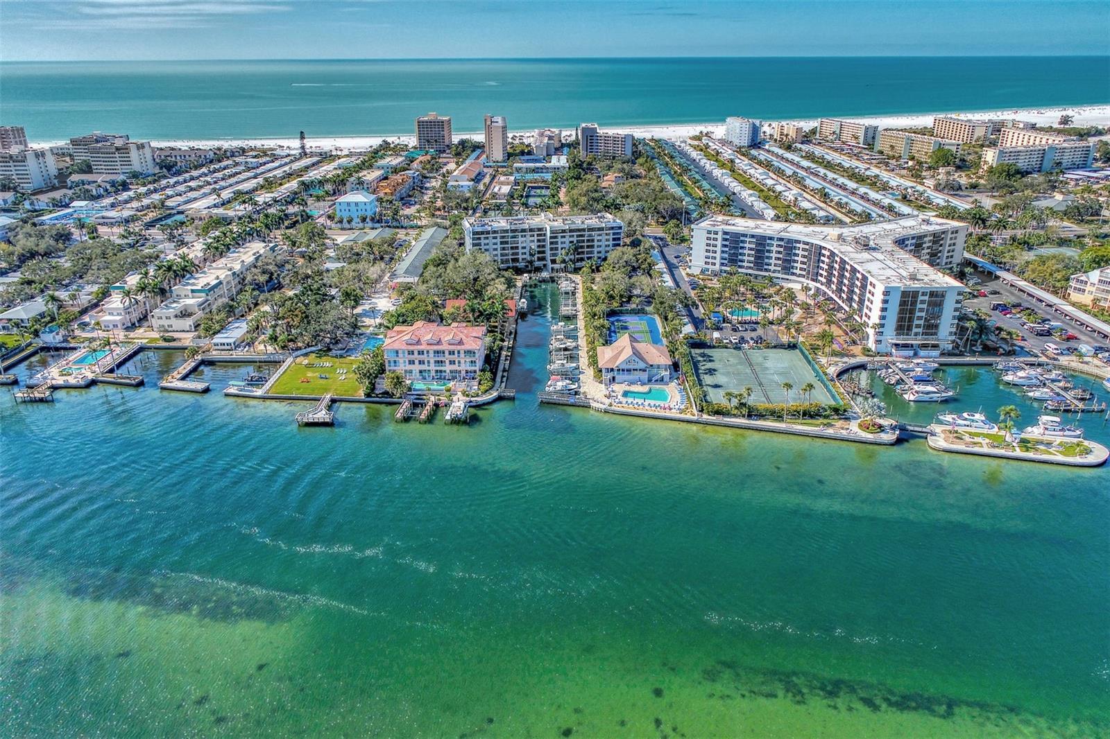 Boater paradise. A well appointed 2 bedroom 2 bathroom condo with a a deeded boat dock awaits its new owners. A rarely available opportunity. This is the top floor of the building on the 6 th floor with Gulf of Mexico and bay views and deeded beach access. As you come out of the elevator, you're instantly captivated by the gulf views. Just outside your patio door, you are greeted to long range bay views overlooking the marina. This is waterfront living at its best. Beautifully renovated condo with neutral color palette. A large kitchen with wood cabinets and quartz counter top. Open dining and living room combo that overlooks the bay. Guest bedroom has a partial gulf view. The renovated bathroom has a travertine shower, wood cabinets and granite counters tops. There is a pocket door in the hallway to create a second master suite feel. The Master bedroom overlooks the bay with an extended patio. The large bathroom has a double sink vanity, wood cabinetry and granite tops. There is also a walk in shower finished in a French pattern travertine . Large walk in closet and an additional owners closet/ storage with a security safe. Full size washer and dryer laundry inside the unit. Open kitchen concept with bay and gulf views. Small desk area in the kitchen or a breakfast knook can also occupy this space with gulf views. Great size living room overlooking the bay. Extended lanai with screens and windows for cooler days. Step onto the patio and overlook the marina , club house, fire pit area, pickle ball courts, your boat, and the beautifully manicured grounds with amazing bay views. The unit is move in ready. It is offered fully furnished with tasteful high end furnishings and decor with a few items to be excluded. Brand new refrigerator and hot water heater. The boat dock has a newer 10,000 lb boat lift and dock which is included in purchase. The boat slip can accommodate a 24 ft boat. As the owner, you are afforded the opportunity to either sell or lease the dock if you don't own a boat. Endless possibilities to generate extra income. The unit is centrally located on the key and the building offers many activities for a active lifestyle. This building is also pet friendly. You also have a dedicated under garage parking space and a good size storage locker located by the building entrance a marina walkway. A must see at this price.