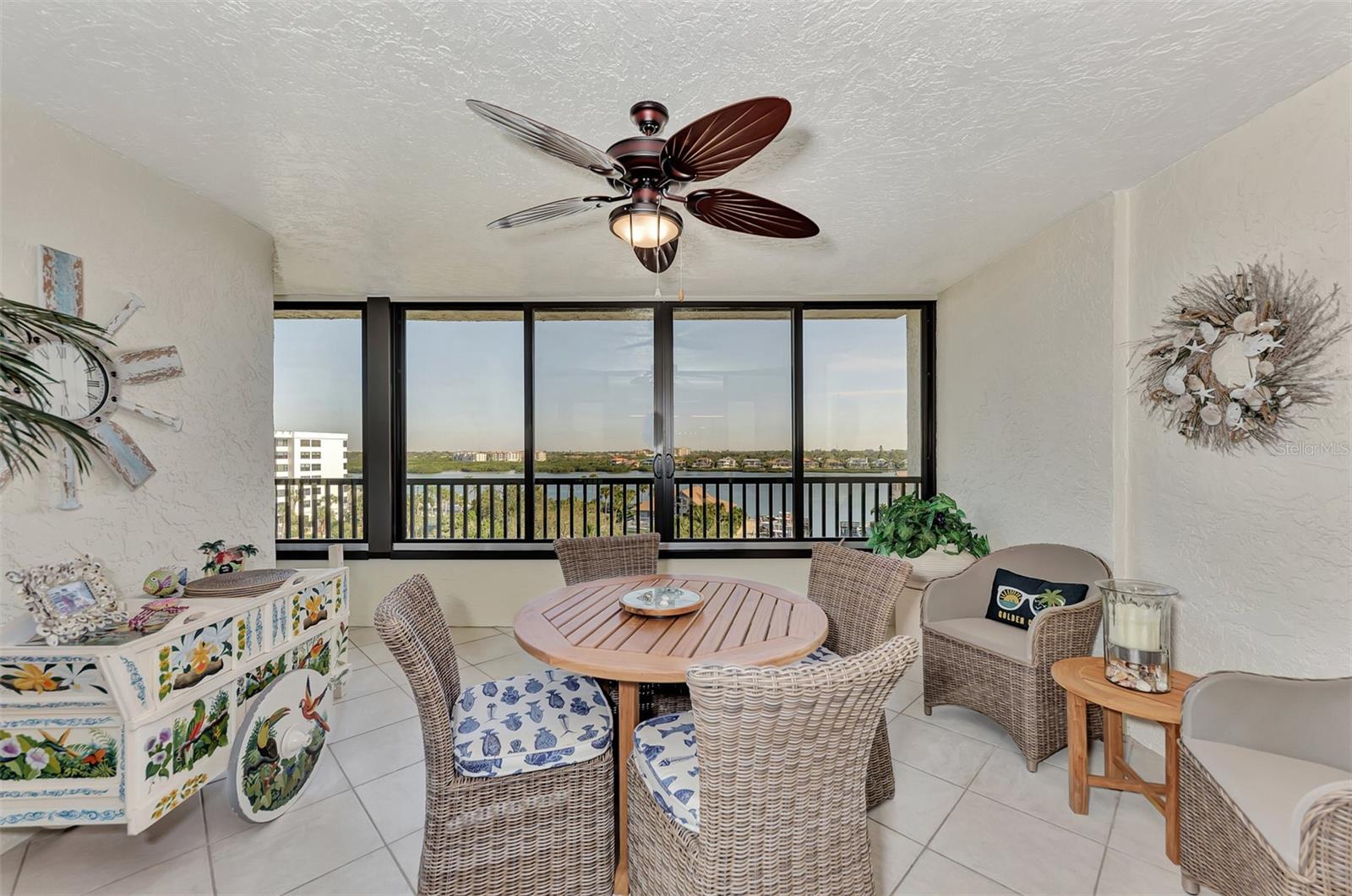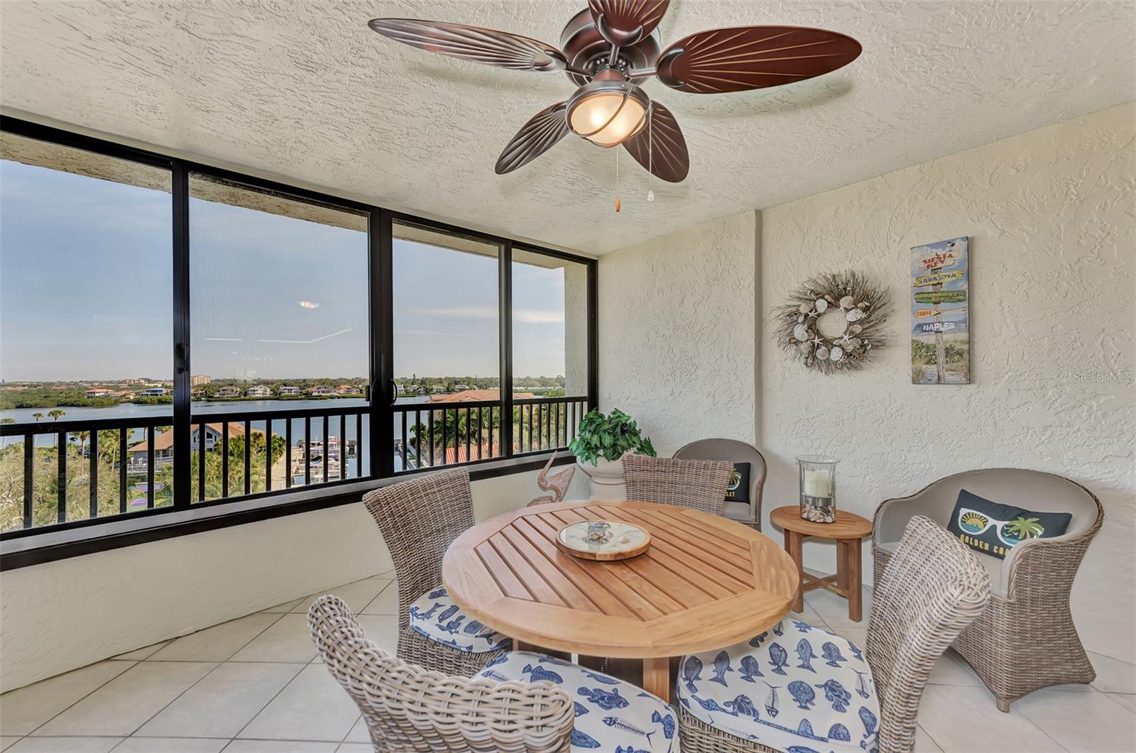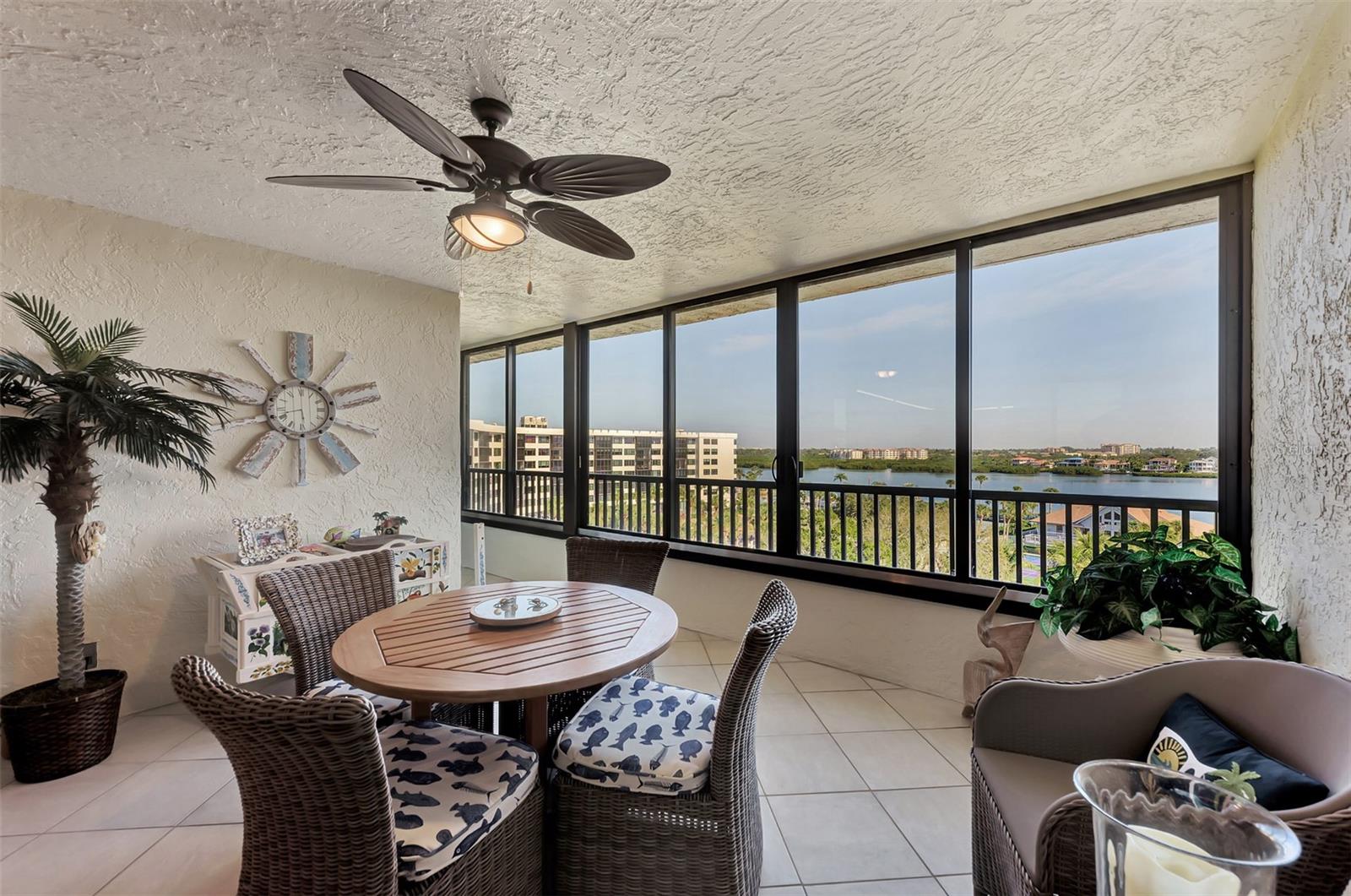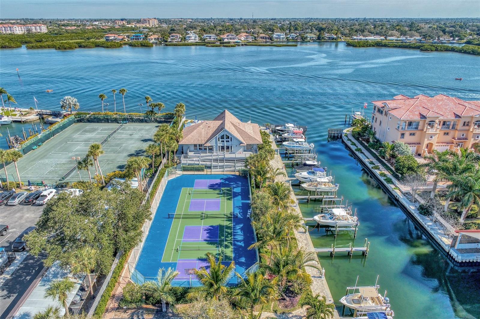 Boater paradise. A well appointed 2 bedroom 2 bathroom condo with a a deeded boat dock awaits its new owners. A rarely available opportunity. This is the top floor of the building on the 6 th floor with Gulf of Mexico and bay views and deeded beach access. As you come out of the elevator, you're instantly captivated by the gulf views. Just outside your patio door, you are greeted to long range bay views overlooking the marina. This is waterfront living at its best. Beautifully renovated condo with neutral color palette. A large kitchen with wood cabinets and quartz counter top. Open dining and living room combo that overlooks the bay. Guest bedroom has a partial gulf view. The renovated bathroom has a travertine shower, wood cabinets and granite counters tops. There is a pocket door in the hallway to create a second master suite feel. The Master bedroom overlooks the bay with an extended patio. The large bathroom has a double sink vanity, wood cabinetry and granite tops. There is also a walk in shower finished in a French pattern travertine . Large walk in closet and an additional owners closet/ storage with a security safe. Full size washer and dryer laundry inside the unit. Open kitchen concept with bay and gulf views. Small desk area in the kitchen or a breakfast knook can also occupy this space with gulf views. Great size living room overlooking the bay. Extended lanai with screens and windows for cooler days. Step onto the patio and overlook the marina , club house, fire pit area, pickle ball courts, your boat, and the beautifully manicured grounds with amazing bay views. The unit is move in ready. It is offered fully furnished with tasteful high end furnishings and decor with a few items to be excluded. Brand new refrigerator and hot water heater. The boat dock has a newer 10,000 lb boat lift and dock which is included in purchase. The boat slip can accommodate a 24 ft boat. As the owner, you are afforded the opportunity to either sell or lease the dock if you don't own a boat. Endless possibilities to generate extra income. The unit is centrally located on the key and the building offers many activities for a active lifestyle. This building is also pet friendly. You also have a dedicated under garage parking space and a good size storage locker located by the building entrance a marina walkway. A must see at this price.