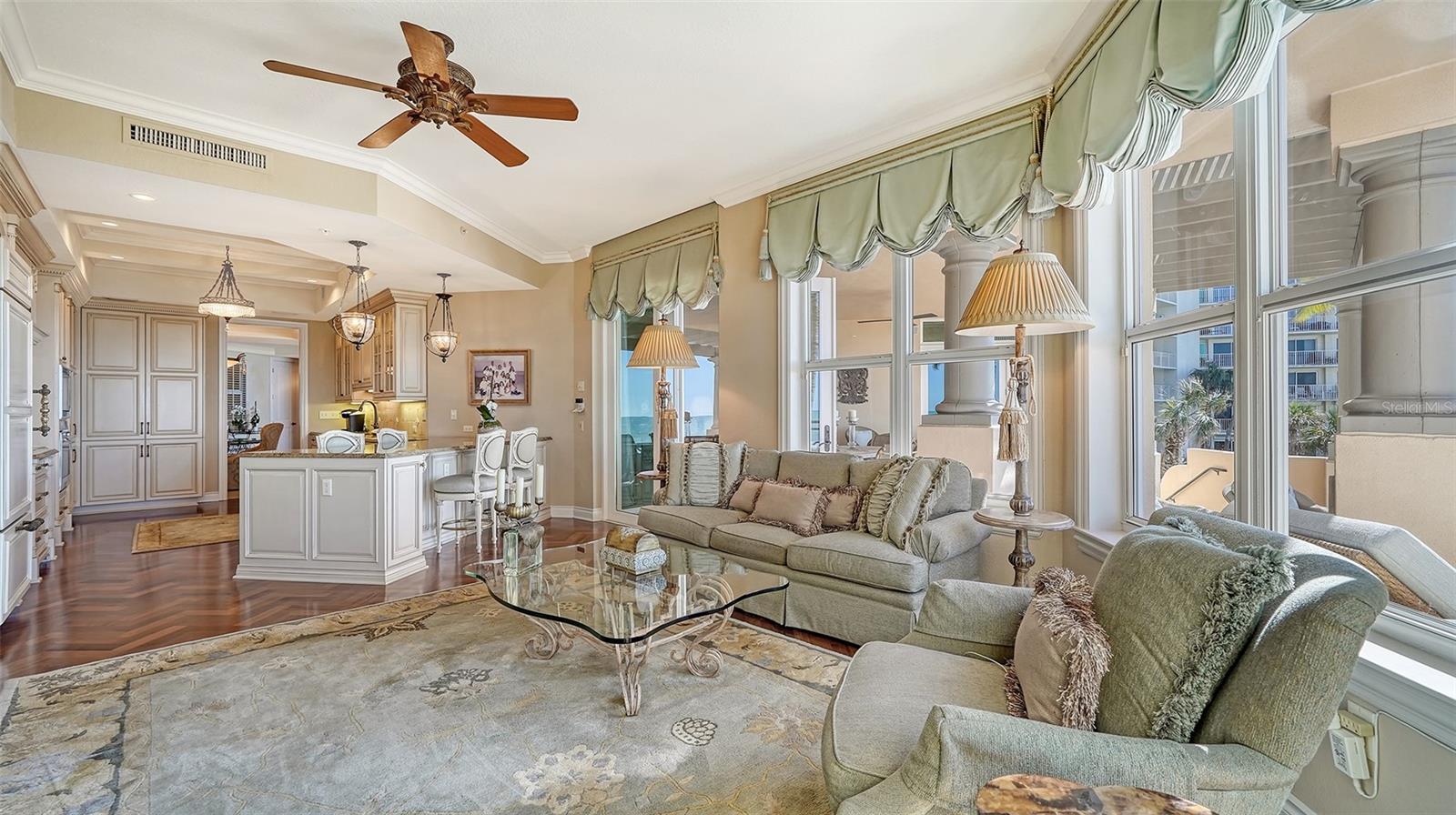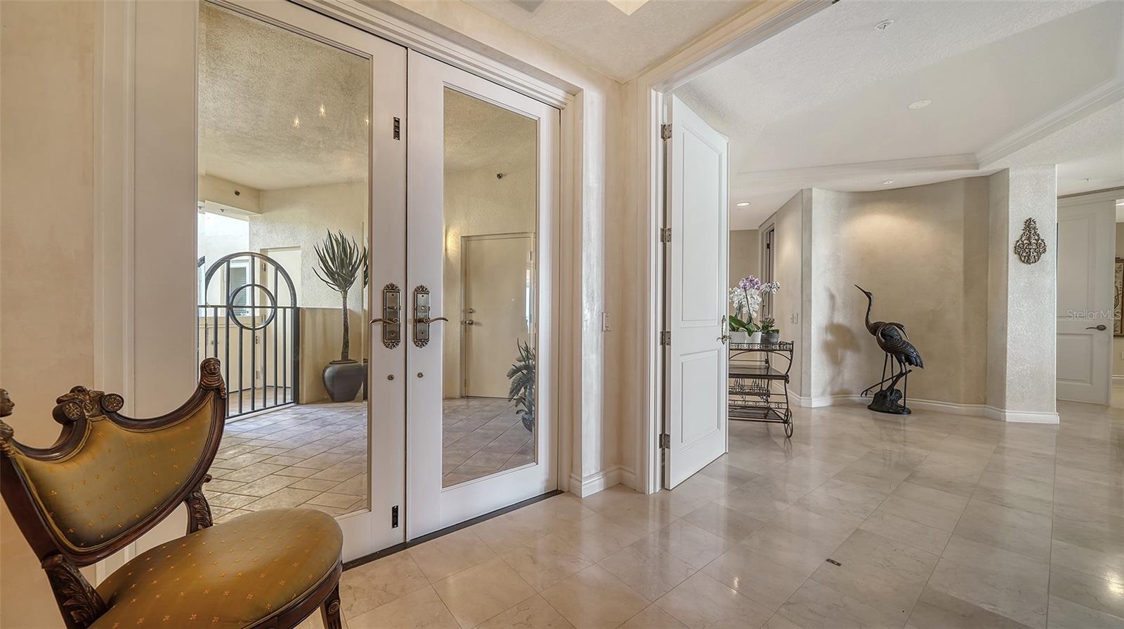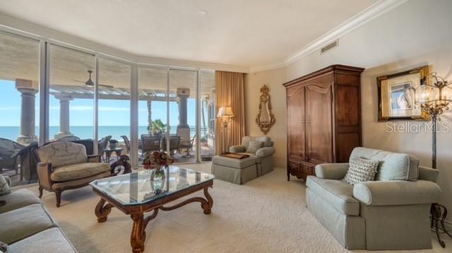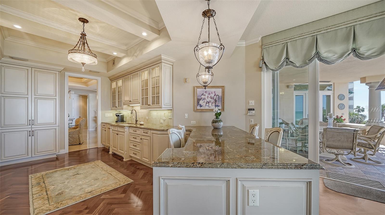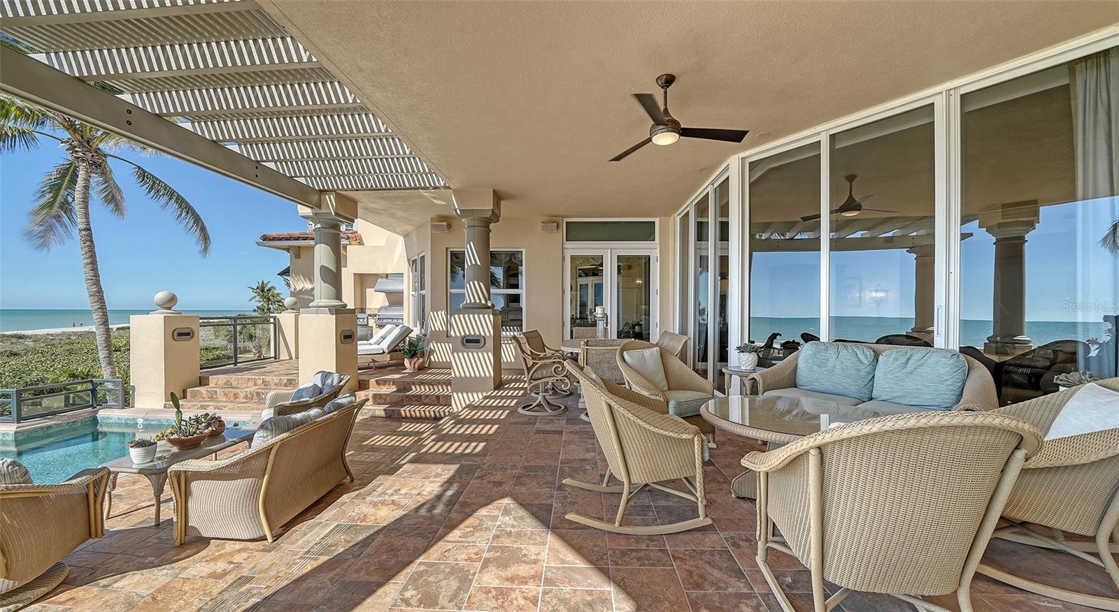 Discover unparalleled luxury living at Vizcaya, where this unique condominium redefines coastal elegance on the Gulf of Mexico. With its own private swimming pool and expansive terrace overlooking the sandy beach, every moment here is infused with tranquility and breathtaking views. Ascend via the private elevator, where you're greeted by a welcoming foyer that sets the tone for luxurious coastal living. Step inside to find a spacious layout. A beautiful custom kitchen sits adjacent to a family room, providing the ideal setting for culinary creations and gatherings with loved ones. Picture yourself cooking while gazing out at the expanse of the Gulf of Mexico, creating memories that will last a lifetime. Additionally, a separate dining room adjacent to the large living room offers an elegant space for formal dinners or intimate gatherings, with stunning views of the terrace and beyond. Whether you're entertaining guests or enjoying quiet evenings at home, every corner of this condominium exudes sophistication and coastal charm. The condominium has two large en-suite bedrooms. The primary bedroom offers a lavish retreat with a large bath, separate walk-in closets and panoramic vistas of the gulf. Meanwhile, the guest bedroom feels like a private sanctuary, complete with its own sitting room and exterior entrance for added convenience. For those who work or simply seek solitude, there's an office that can double as an additional bedroom. Indulge in the resort-style amenities of the Vizcaya community, including a large pool, tennis courts and a clubhouse with a fitness room. Wake up to the sight of dolphins dancing in the waves from your breakfast window or cast a line at the fishing pier just nearby. Notably, only a select few units in Vizcaya boast their private swimming pool, elevating this residence to a league of its own. With its unparalleled features and thoughtful design, this unit seamlessly blends comforts of home with allure of resort living.