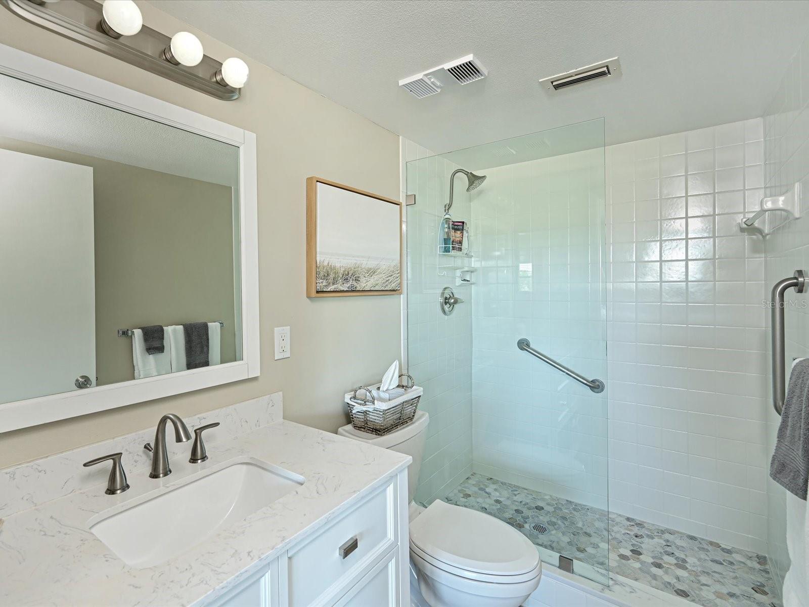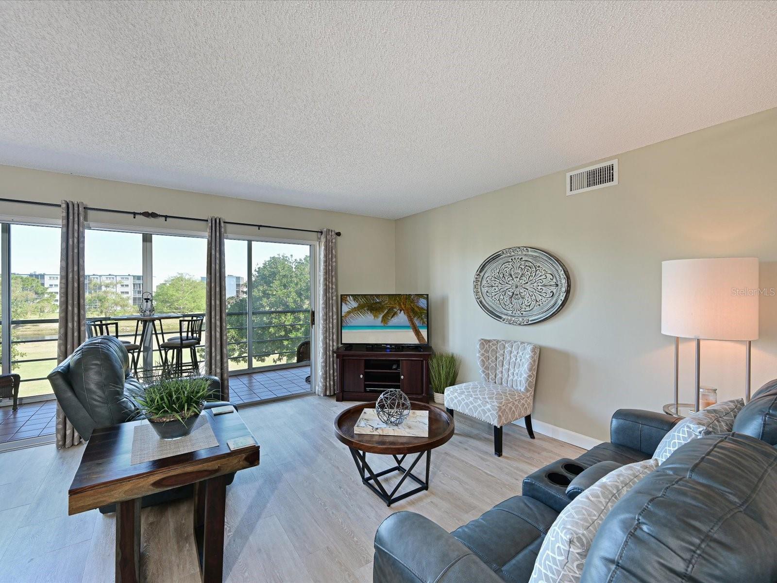 New price and a $5,000 seller to buyer incentive towards the buyers closing costs or to put towards the purchase price. Welcome to Ironwood, located only 6.2 miles from the Gulf beach's of Anna Maria Island. Enjoy relaxing 3rd floor golf course views from this 2 bedroom 2 bath corner end unit condo overlooking the #1 fairway of the Pinebrook Ironwood Golf Community. Being sold turnkey furnished this unit is absolutely adorable and shows fantastic. This is an exceptional building location nestled between the Rec I Clubhouse to the west and the Golf Pro shop to the east. The unit features a great open floor plan that flows from the foyer to the living room to the 6x19 glassed in lanai overlooking the golf course. Resent updates include the open concept kitchen with the dome ceiling removed, granite countertops, Frigidaire 2021 SS appliances, garbage disposal, new pantry and closet doors, vinyl plank flooring throughout with added tall baseboards and a new hot water heater on 3/27/2024. The paint scheme, colors and decor are absolutely tranquil. All of the windows are double pain insulated windows except the sliders on the lanai that are protected by electric role hurricane shutters. The master bedroom easily accommodates a kings size bed with room to spare, has an access door to the lanai, plus has a large walk in closet and a backup closet. Both the master bath and the guest bath have been recently remolded with updated vanities, lights, fixtures, toilets, vinyl plank flooring and the shower pan recently replaced. The laundry room for this floor is only a few steps down the hall by the elevator, not in the unit itself. You get one assigned covered carport #34 and a storage locker by the elevator. This is a 55+ and No pet building. You must own for 2 years prior to leasing with a 3 month minimum lease and 1 x per year. Pinebrook Ironwood is a public course so you can pay as you play. The Rec I Clubhouse next door features a heated pool, an exercise equipment room, a billiard room, a grilling area, shuffleboard and a banquet room plus tennis court access. Ironwood is conveniently located all of your personal needs, walking distance to the newly remodeled GT Bray Park, Robinsons Preserve and of course, Anna Maria Island.