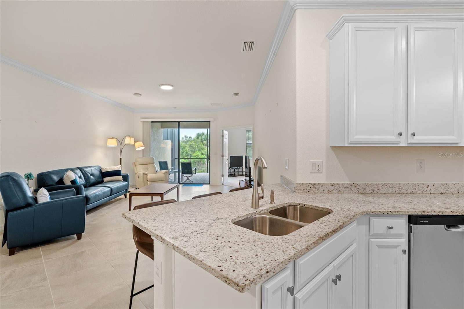 Back on the Market- Buyers loss is your gain! Come check out this must-see villa in Sarasota National! This beautiful 2BD/2BA plus den floor plan is located on the lake side of the community. The open floor plan offers space for entertaining or spending time with the family. The kitchen offers lots of counter space, granite counters, and stainless steel appliances along with a brand new dishwasher. This villa offers a large master bedroom with en-suite bathroom and two closets. Master bath has dual sinks and walk in shower and a tub. Guest bedrooms and guest bathroom are on the opposite side of the villa, so guests can have full privacy. There are two sliding glass doors lead from the living room as well as the master suite to the private partially covered lanai overlooking the preserve. See all that Sarasota National has to offer! Resort style amenities complete with 24/7 guarded access, zero entry pool, lap pool, 7,000 sq ft fitness center, coffee lounge/library, dog park, tennis courts, pickleball, bocce ball, spa, tiki bar and dining facilities! This development is equipped with wildlife, preserves, water views, biking and walking paths. Minutes away from the new Wellen Park shopping area and Atlanta Braves stadium. Manasota Key, Venice Beach and Downtown Historic Venice are just a short drive. Your choice of restaurants and outdoor activities await. Come live everyday like you are on vacation! Please note Golf membership is NOT required or available as membership is only available with golf side home sites.