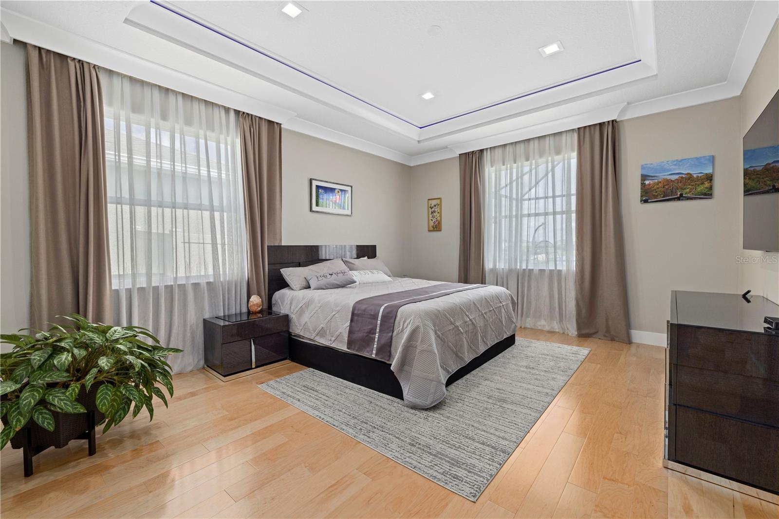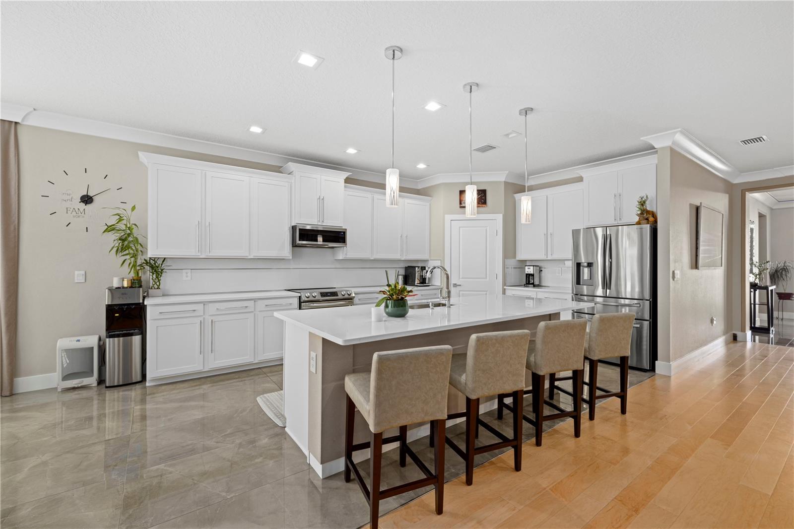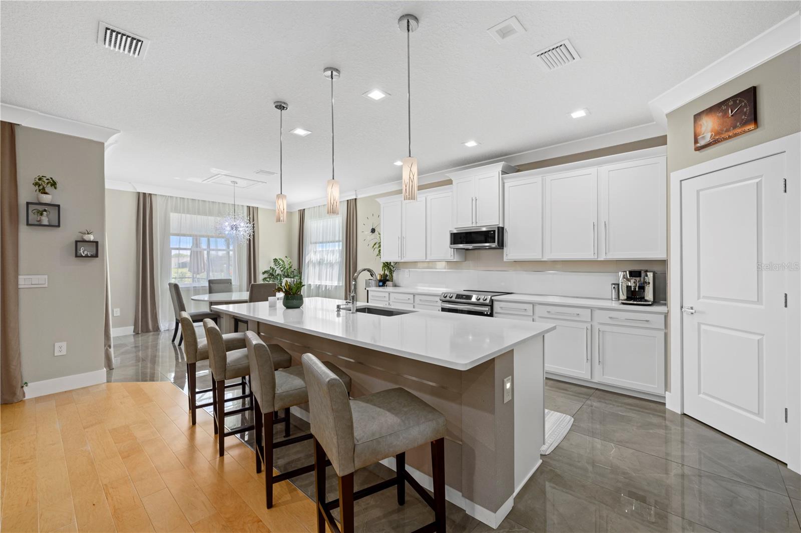 Welcome to Your Dream Home in Lakewood Ranch!Nestled in the heart of the highly sought-after Solera community in Lakewood Ranch, this exquisite 4-bedroom, 3-bathroom residence offers the perfect blend of luxury and comfort. As you step inside, the warmth of the all-maple hardwood flooring in the living room immediately invites you in. The home's thoughtful design is evident in every detail, from the elegant crown molding throughout to the state-of-the-art LED lighting in the living room, bedrooms and lanai.Designed with the gourmet in mind, the kitchen boasts premium porcelain tile floors, complementing the space's sleek and modern aesthetic. The dining room shares this luxurious flooring, creating the perfect backdrop for memorable meals and gatherings.Experience the ultimate in relaxation in your private saltwater swimming pool, a serene oasis for warm Florida days. The pool area is a testament to the home's dedication to luxury and comfort, offering a private retreat within your own backyard.The residence doesn't stop impressing there. With a central dehumidifier system, you'll enjoy a comfortable and healthy indoor climate year-round. The insulated garage doors not only enhance the home's energy efficiency but also provide a quiet and secure space for your vehicles. The added convenience of gutters and downspouts ensures peace of mind during rainy seasons.Completing this magnificent home are the brand-new appliances, a testament to the property's commitment to quality and modernity. Every element has been carefully selected to ensure the highest standards of living.Located in the vibrant community of Solera, residents benefit from the proximity to top-rated schools, shopping, dining, and entertainment options. This property is not just a house; it's a lifestyle waiting for you.Don't miss the opportunity to make this stunning Lakewood Ranch home yours. Schedule a viewing today and step into the lifestyle you deserve!