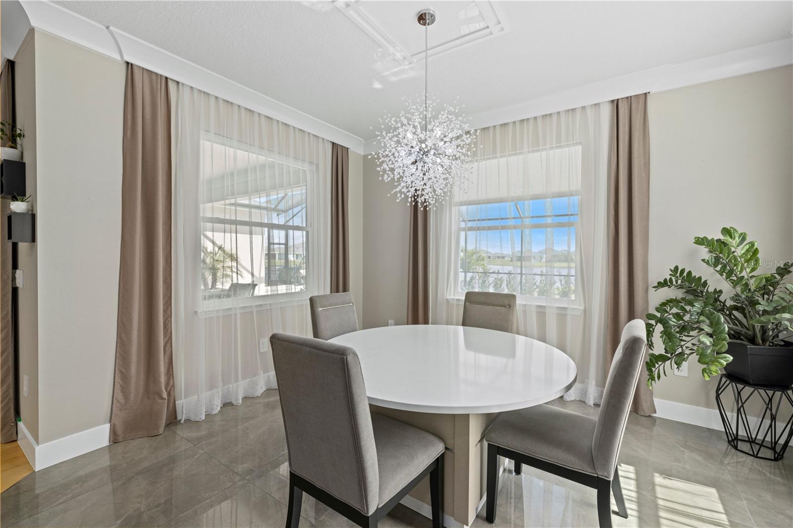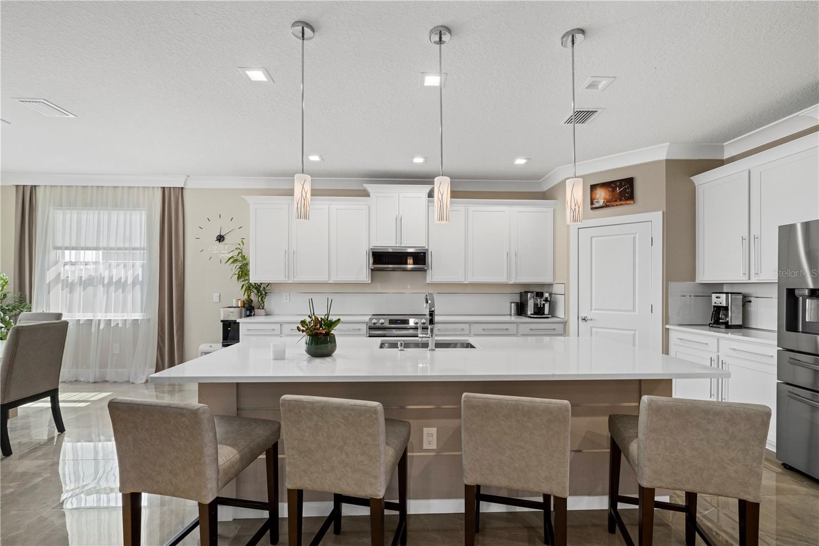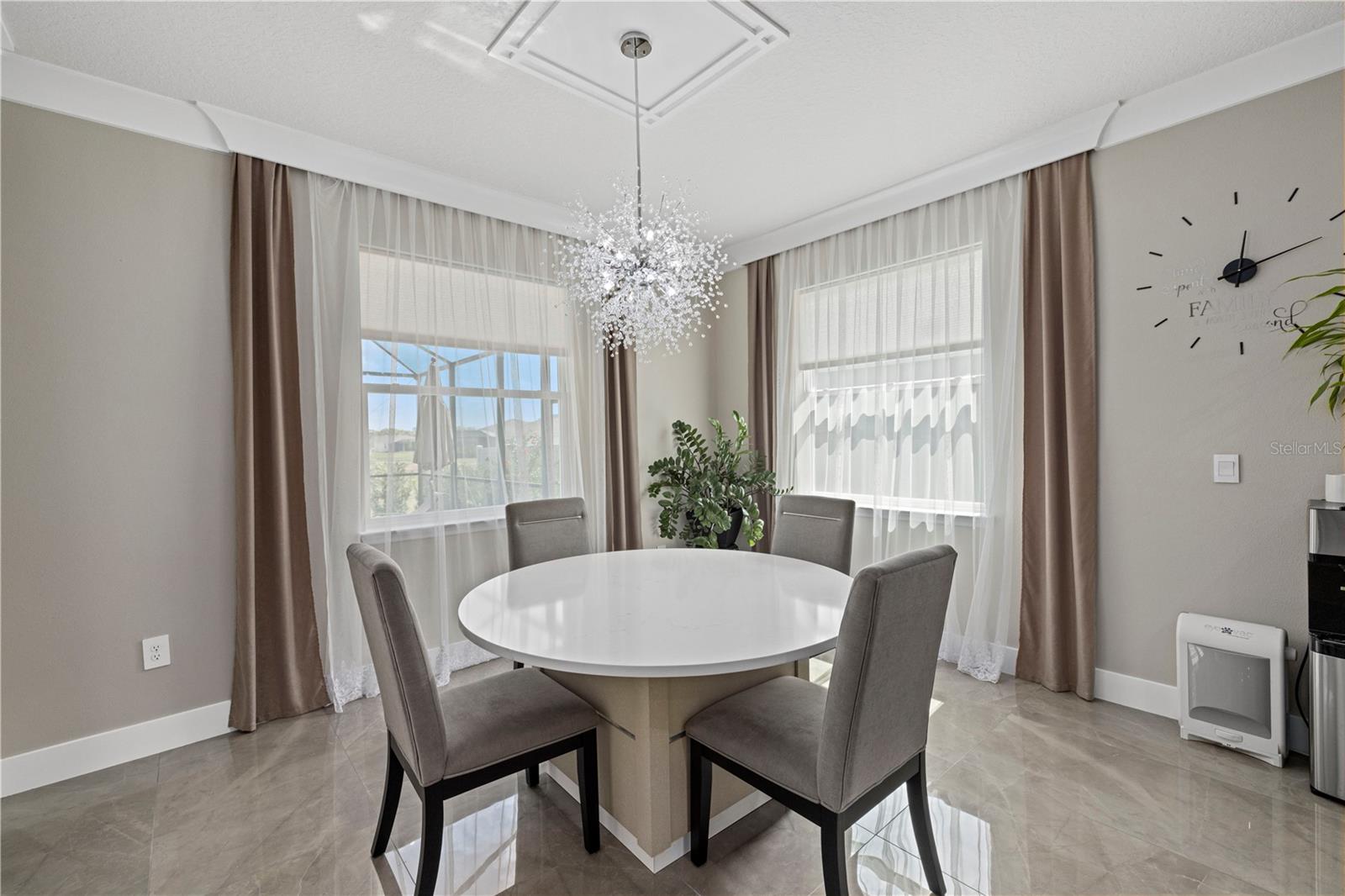 Welcome to Your Dream Home in Lakewood Ranch!Nestled in the heart of the highly sought-after Solera community in Lakewood Ranch, this exquisite 4-bedroom, 3-bathroom residence offers the perfect blend of luxury and comfort. As you step inside, the warmth of the all-maple hardwood flooring in the living room immediately invites you in. The home's thoughtful design is evident in every detail, from the elegant crown molding throughout to the state-of-the-art LED lighting in the living room, bedrooms and lanai.Designed with the gourmet in mind, the kitchen boasts premium porcelain tile floors, complementing the space's sleek and modern aesthetic. The dining room shares this luxurious flooring, creating the perfect backdrop for memorable meals and gatherings.Experience the ultimate in relaxation in your private saltwater swimming pool, a serene oasis for warm Florida days. The pool area is a testament to the home's dedication to luxury and comfort, offering a private retreat within your own backyard.The residence doesn't stop impressing there. With a central dehumidifier system, you'll enjoy a comfortable and healthy indoor climate year-round. The insulated garage doors not only enhance the home's energy efficiency but also provide a quiet and secure space for your vehicles. The added convenience of gutters and downspouts ensures peace of mind during rainy seasons.Completing this magnificent home are the brand-new appliances, a testament to the property's commitment to quality and modernity. Every element has been carefully selected to ensure the highest standards of living.Located in the vibrant community of Solera, residents benefit from the proximity to top-rated schools, shopping, dining, and entertainment options. This property is not just a house; it's a lifestyle waiting for you.Don't miss the opportunity to make this stunning Lakewood Ranch home yours. Schedule a viewing today and step into the lifestyle you deserve!