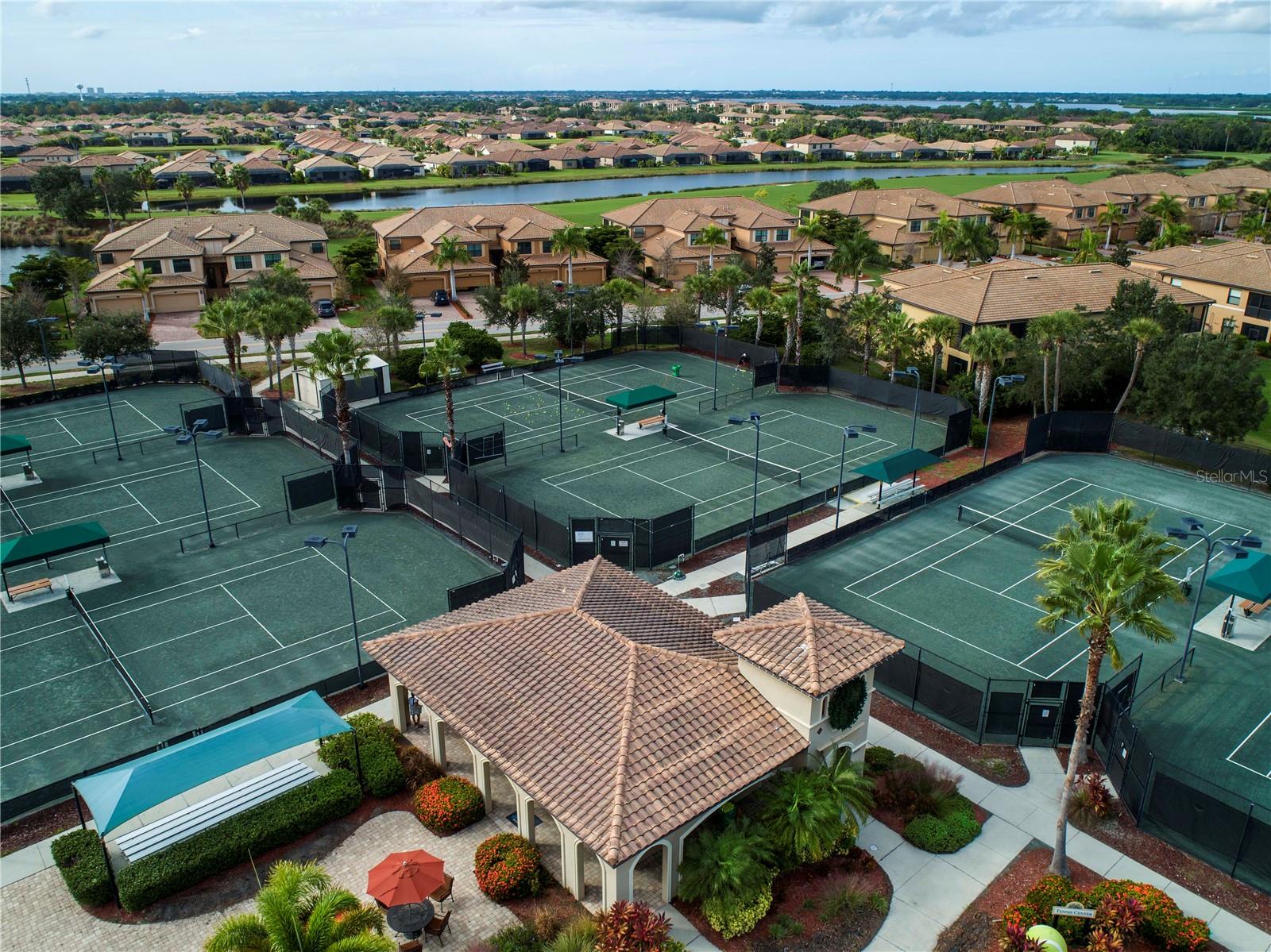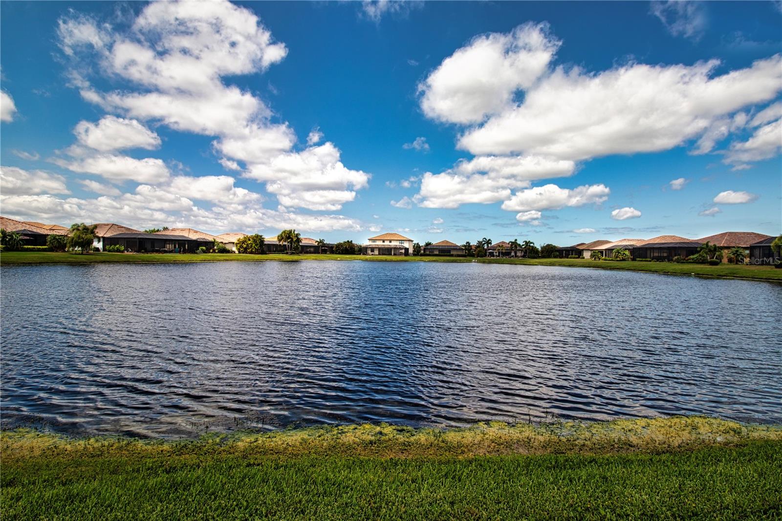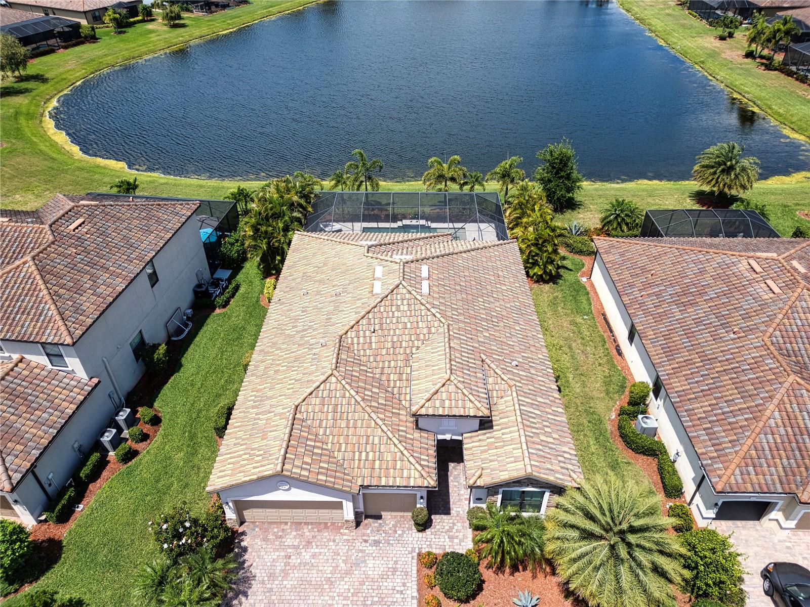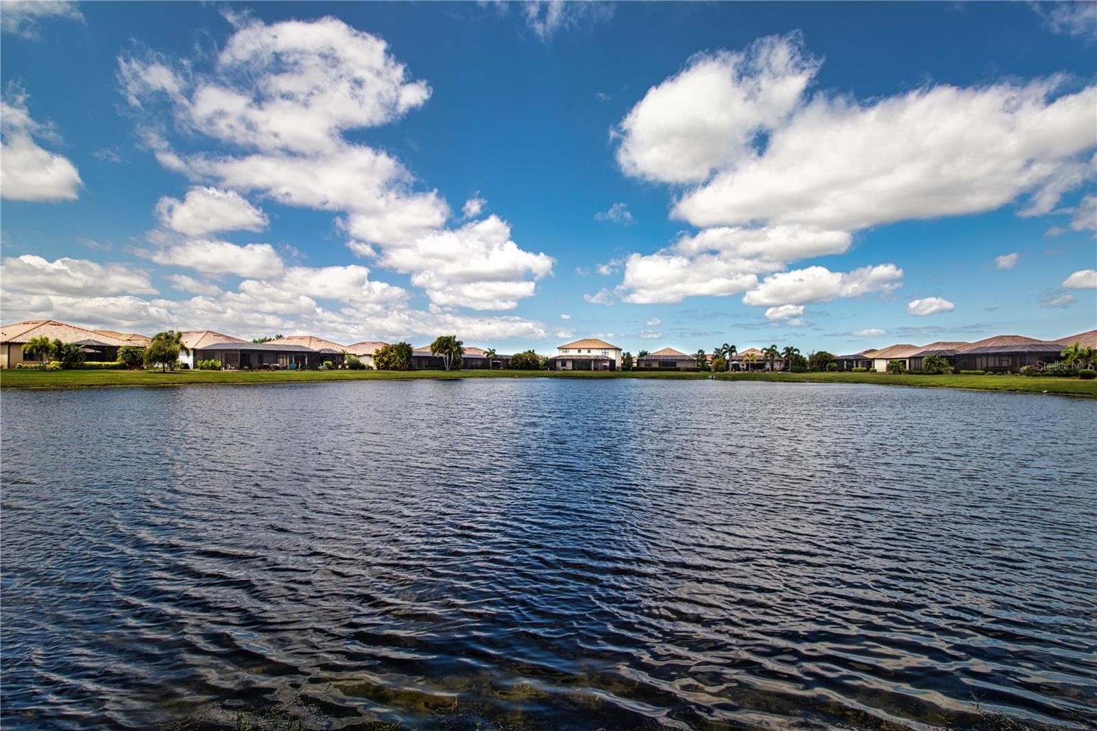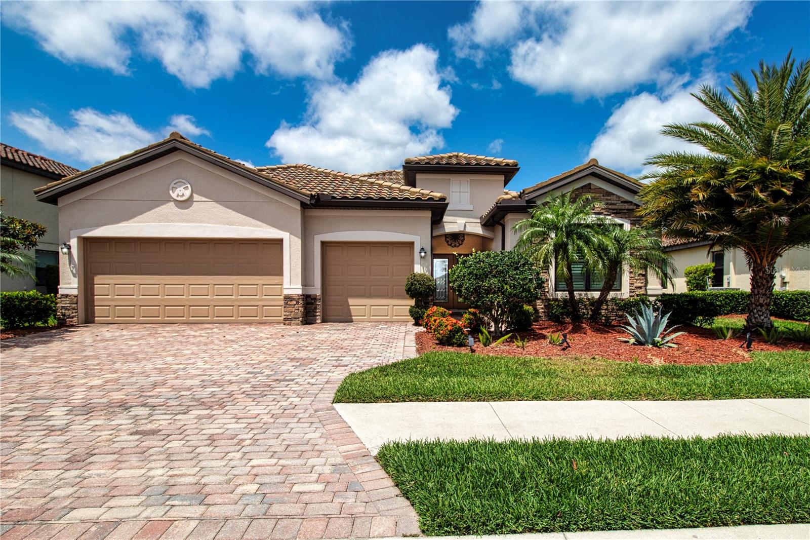 Sought after Summerville II in River Strand Golf and Country Club! You will fall in love with this Stunning 3 BR plus Den home with 3 Car Garage! Incredible full lake view! River Strand Sanctuary has a Social Membership! Crown molding and plantation shutters are throughout the whole house along with many designer features! The open concept floor plan offers plenty of room for entertaining along with a gourmet kitchen, spacious flat counter breakfast bar. Kitchen also boasts a new SS vented hood over stove, 42" wood cabinets, granite counters, tiled backsplash, pendant lights and more! Expansive Great Rm. has a beautiful tray ceiling with crown molding and triple slider overlooking pool and lake. Spacious dining area also has the lake view! Retire to your generous owner's suite with tray ceiling with crown, large walkin closet, luxurious bath with tiled shower and access to lanai! Den has double glass drs and could be used as a 4th BR! 2nd bedroom has ensuite bath for extra comfort and privacy for guests. 3 rd BR has a double dr closet. Relax by your luxurious heated pool overlooking peaceful and serene lake. Plenty of room for entertaining on gorgeous travertine tiled lanai! There are many upgraded features such as barrel tile roof, driveway with pavers and hurricane shutters. Live like you're on vacation all year round with extraordinary clubhouse, fine and casual dining restaurant, poolside tiki bar, heated resort pools and resistance pool as well as spas and many other satellite pools, 9 Har Tru tennis courts and pro shop, pickleball courts, 2 state of the art fitness centers, active clubhouse and activities, billiards and card rooms, dog parks and more! Access to golf usually from April to Sept and Heritage Harbour Golf and Eatery just minutes away also in Heritage Harbour. Close to Anna Maria Island's famous beaches, Siesta Key, downtown Sarasota and Lakewood Ranch, lots of shopping and restaurants, I 75, airports and more! Amazing location! Welcome to Paradise! Note: CDD fees are already shown in taxes.