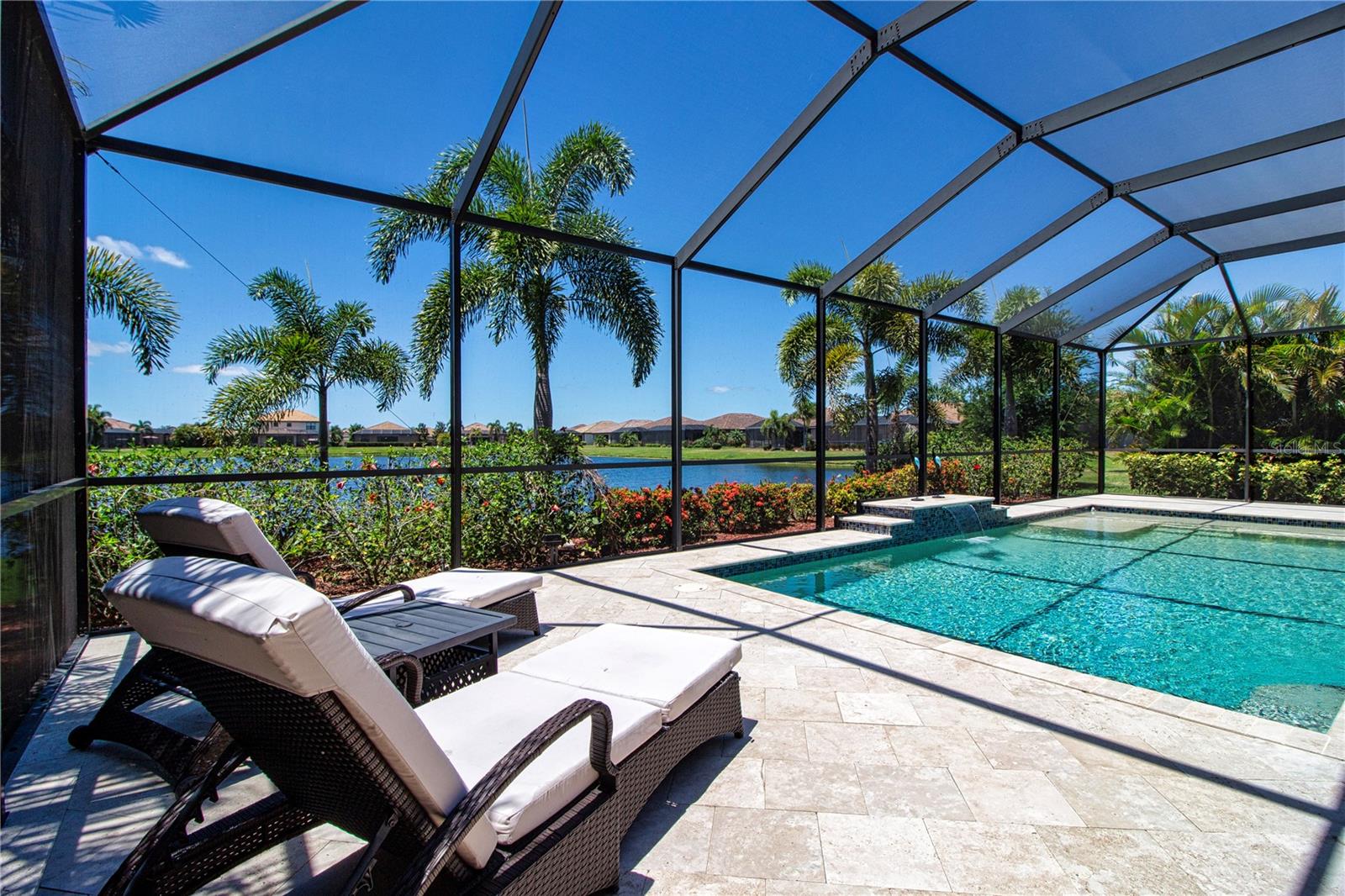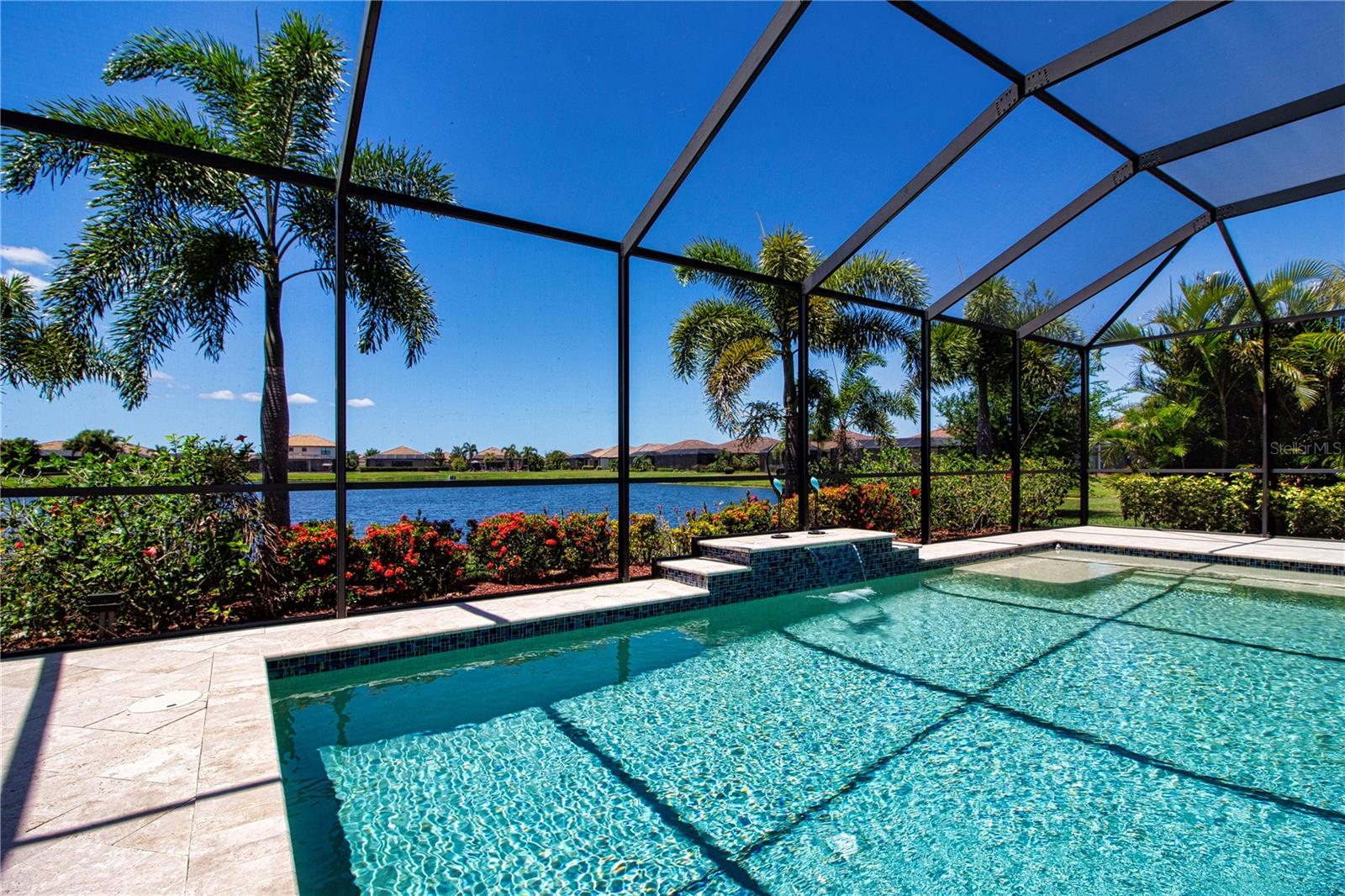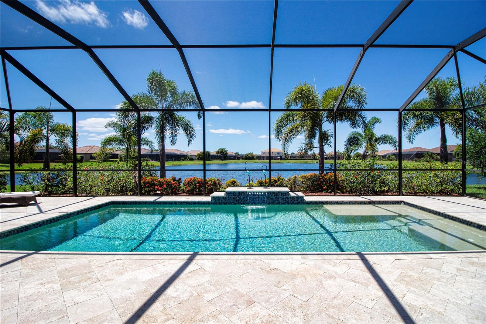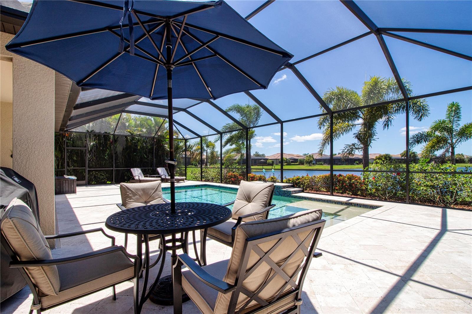 Sought after Summerville II in River Strand Golf and Country Club! You will fall in love with this Stunning 3 BR plus Den home with 3 Car Garage! Incredible full lake view! River Strand Sanctuary has a Social Membership! Crown molding and plantation shutters are throughout the whole house along with many designer features! The open concept floor plan offers plenty of room for entertaining along with a gourmet kitchen, spacious flat counter breakfast bar. Kitchen also boasts a new SS vented hood over stove, 42" wood cabinets, granite counters, tiled backsplash, pendant lights and more! Expansive Great Rm. has a beautiful tray ceiling with crown molding and triple slider overlooking pool and lake. Spacious dining area also has the lake view! Retire to your generous owner's suite with tray ceiling with crown, large walkin closet, luxurious bath with tiled shower and access to lanai! Den has double glass drs and could be used as a 4th BR! 2nd bedroom has ensuite bath for extra comfort and privacy for guests. 3 rd BR has a double dr closet. Relax by your luxurious heated pool overlooking peaceful and serene lake. Plenty of room for entertaining on gorgeous travertine tiled lanai! There are many upgraded features such as barrel tile roof, driveway with pavers and hurricane shutters. Live like you're on vacation all year round with extraordinary clubhouse, fine and casual dining restaurant, poolside tiki bar, heated resort pools and resistance pool as well as spas and many other satellite pools, 9 Har Tru tennis courts and pro shop, pickleball courts, 2 state of the art fitness centers, active clubhouse and activities, billiards and card rooms, dog parks and more! Access to golf usually from April to Sept and Heritage Harbour Golf and Eatery just minutes away also in Heritage Harbour. Close to Anna Maria Island's famous beaches, Siesta Key, downtown Sarasota and Lakewood Ranch, lots of shopping and restaurants, I 75, airports and more! Amazing location! Welcome to Paradise! Note: CDD fees are already shown in taxes.