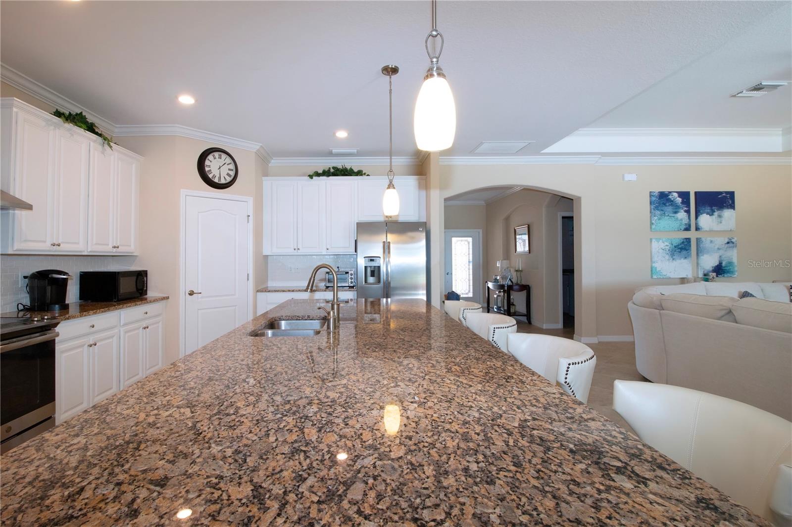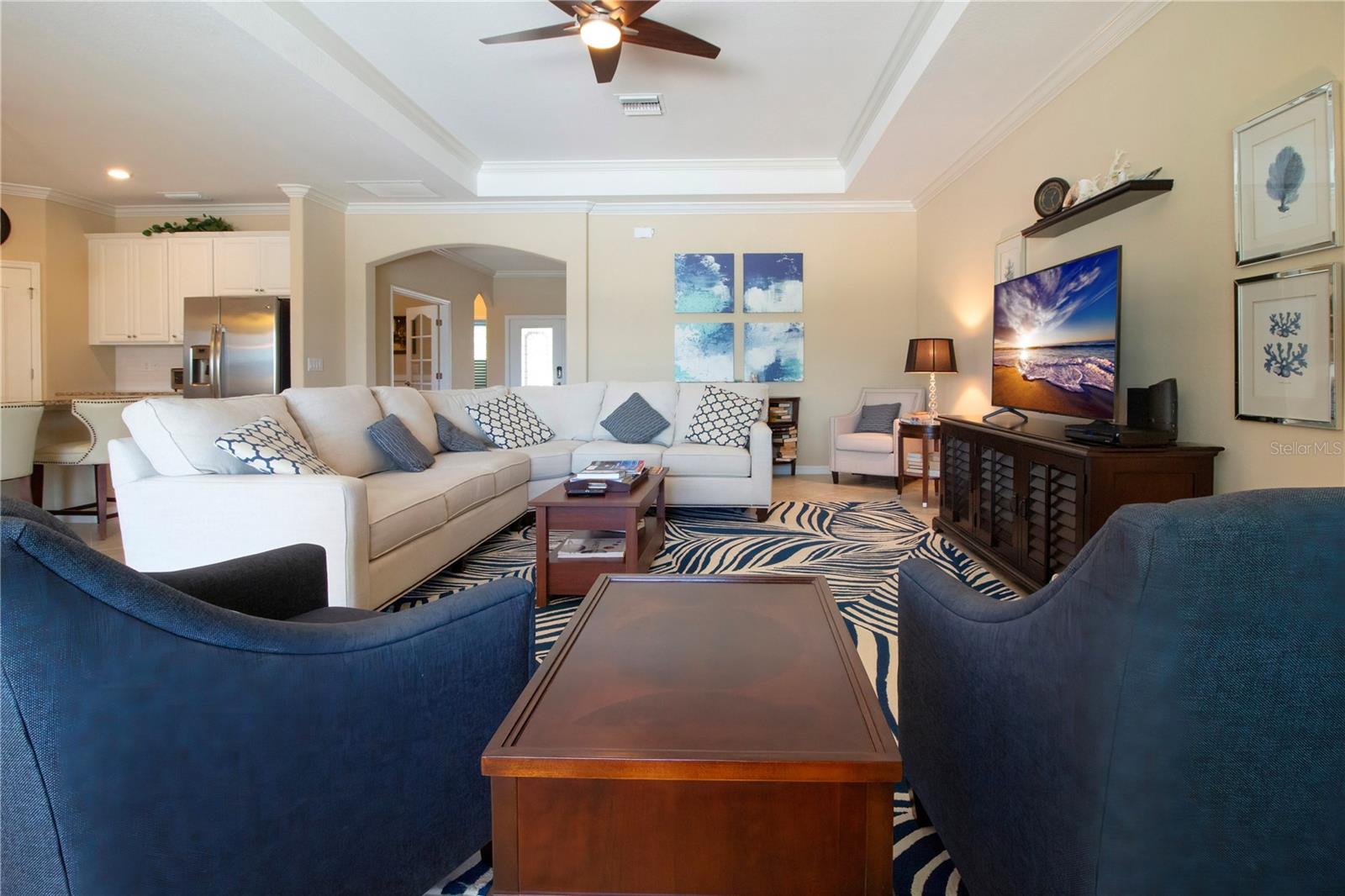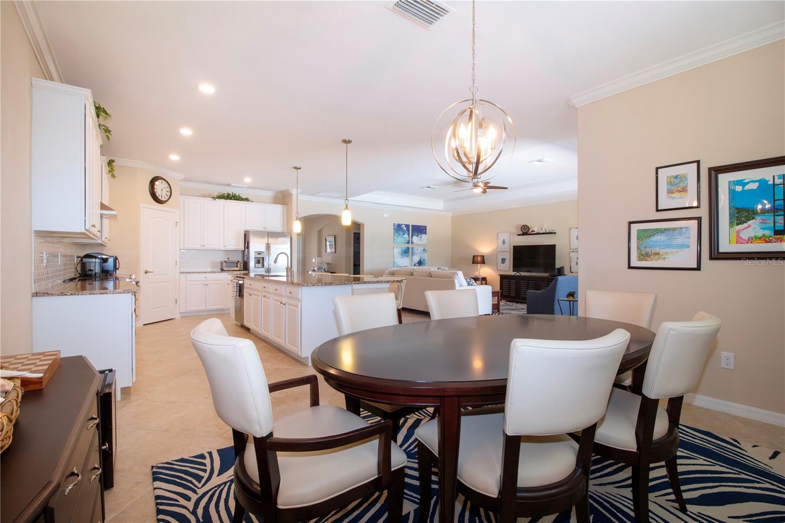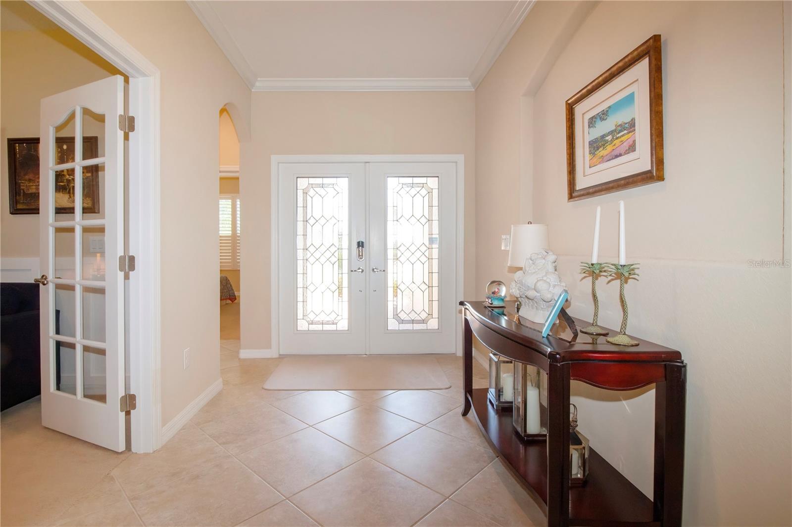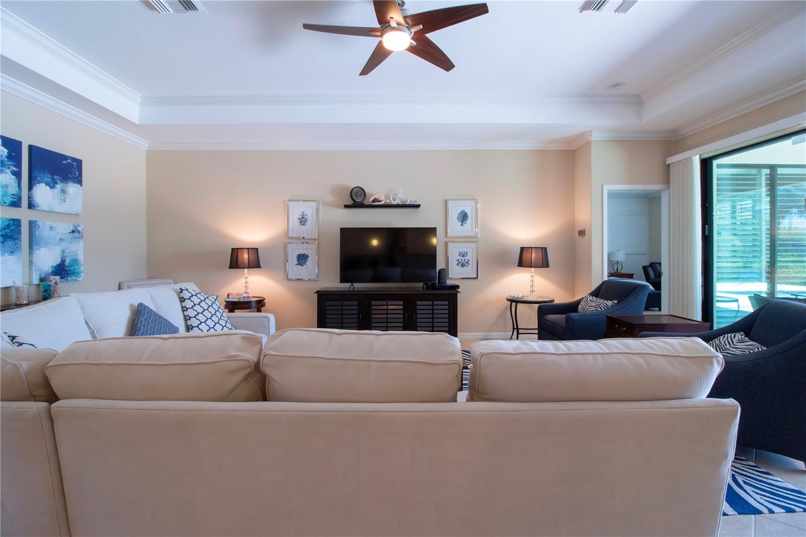 Sought after Summerville II in River Strand Golf and Country Club! You will fall in love with this Stunning 3 BR plus Den home with 3 Car Garage! Incredible full lake view! River Strand Sanctuary has a Social Membership! Crown molding and plantation shutters are throughout the whole house along with many designer features! The open concept floor plan offers plenty of room for entertaining along with a gourmet kitchen, spacious flat counter breakfast bar. Kitchen also boasts a new SS vented hood over stove, 42" wood cabinets, granite counters, tiled backsplash, pendant lights and more! Expansive Great Rm. has a beautiful tray ceiling with crown molding and triple slider overlooking pool and lake. Spacious dining area also has the lake view! Retire to your generous owner's suite with tray ceiling with crown, large walkin closet, luxurious bath with tiled shower and access to lanai! Den has double glass drs and could be used as a 4th BR! 2nd bedroom has ensuite bath for extra comfort and privacy for guests. 3 rd BR has a double dr closet. Relax by your luxurious heated pool overlooking peaceful and serene lake. Plenty of room for entertaining on gorgeous travertine tiled lanai! There are many upgraded features such as barrel tile roof, driveway with pavers and hurricane shutters. Live like you're on vacation all year round with extraordinary clubhouse, fine and casual dining restaurant, poolside tiki bar, heated resort pools and resistance pool as well as spas and many other satellite pools, 9 Har Tru tennis courts and pro shop, pickleball courts, 2 state of the art fitness centers, active clubhouse and activities, billiards and card rooms, dog parks and more! Access to golf usually from April to Sept and Heritage Harbour Golf and Eatery just minutes away also in Heritage Harbour. Close to Anna Maria Island's famous beaches, Siesta Key, downtown Sarasota and Lakewood Ranch, lots of shopping and restaurants, I 75, airports and more! Amazing location! Welcome to Paradise! Note: CDD fees are already shown in taxes.