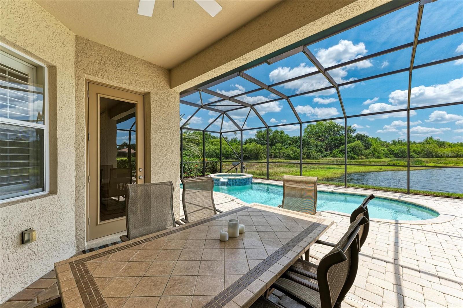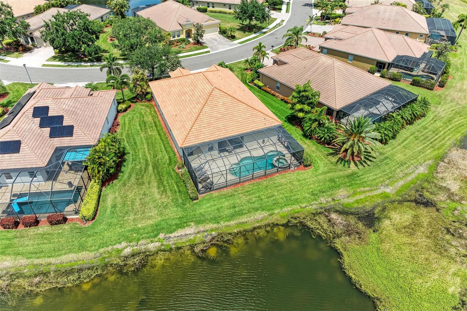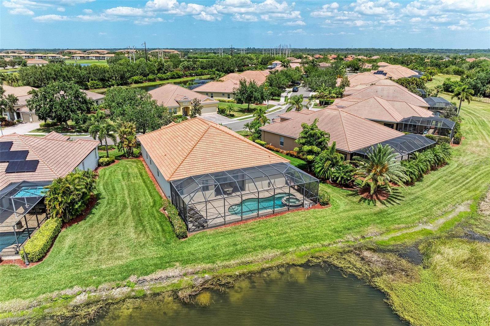Massive price drop. Add this to your viewing shortlist before it's gone! Located on a small cul-de-sac, this home sits on a pie shaped lot affording rear privacy as well as offering wonderful southeastern views of the lake and preserve. This property comes with full golf and country club membership. The home has four good sized bedrooms plus a den/office/possible 5th, three full bathrooms, three car garage and heated pool/spa. Upon entering, the sensation of spaciousness is obvious. To the right of the entrance sits the den. Immediately in front, the living area features a pool table that is included in the sale of the home. Adjacent, and conveniently located is the formal dining area. The family room beyond feels more like a great room with its good size and openness to the kitchen. The master bedroom has sliding doors to the pool area and accesses the master bathroom suite which includes dual vanities, walk in shower, bathtub and private WC. The master closet has an additional lockable closet within, ideal for an owner wanting a secure place to use as an 'owners' closet' if interested in renting. The pool area has a paver deck, and the pool/spa can be heated via a heat pump. The rear view is wonderful, a mixture of lake, preserve and a littoral pond shelf that attracts lots of interesting wildlife. River Strand golf & Country Club offers 27 Arthur Hills designed golf (the course was recently renovated), 9 Har-Tru tennis courts, 8 pickleball courts, Gym, restaurant, community pools with tiki bar and much, much more. Resort living at its finest. Located close to I-75 means easy access to great shopping/dining at the UTC and a straight shot on SR-64 to the world-famous beaches of Anna Maria Island.