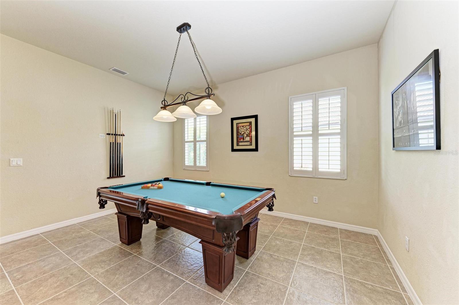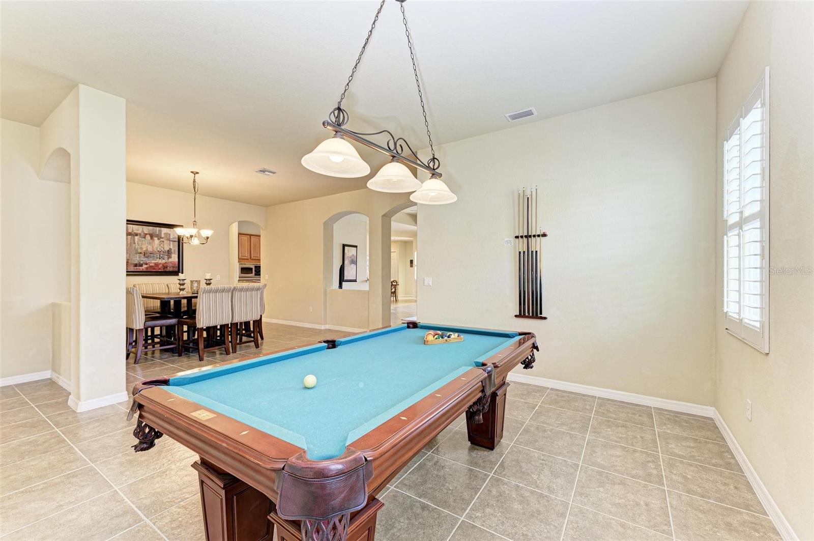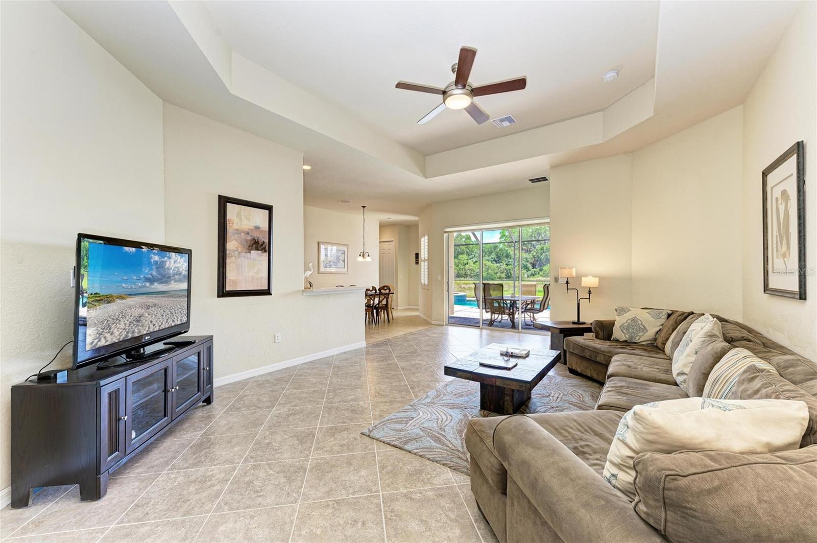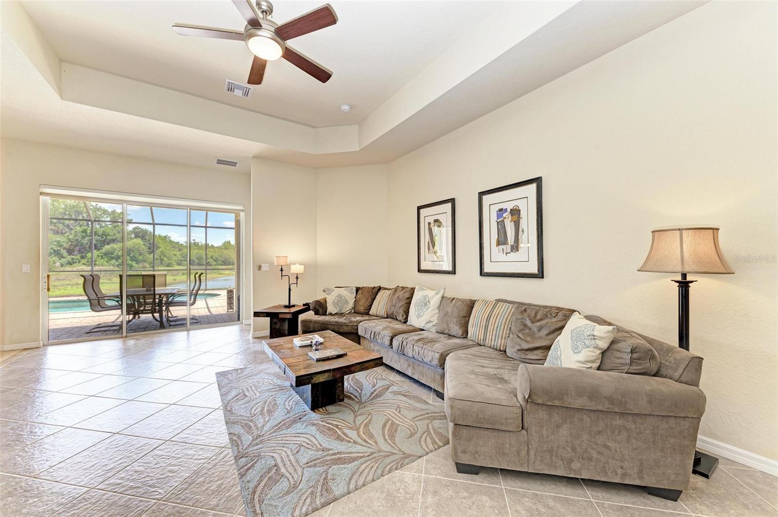Massive price drop. Add this to your viewing shortlist before it's gone! Located on a small cul-de-sac, this home sits on a pie shaped lot affording rear privacy as well as offering wonderful southeastern views of the lake and preserve. This property comes with full golf and country club membership. The home has four good sized bedrooms plus a den/office/possible 5th, three full bathrooms, three car garage and heated pool/spa. Upon entering, the sensation of spaciousness is obvious. To the right of the entrance sits the den. Immediately in front, the living area features a pool table that is included in the sale of the home. Adjacent, and conveniently located is the formal dining area. The family room beyond feels more like a great room with its good size and openness to the kitchen. The master bedroom has sliding doors to the pool area and accesses the master bathroom suite which includes dual vanities, walk in shower, bathtub and private WC. The master closet has an additional lockable closet within, ideal for an owner wanting a secure place to use as an 'owners' closet' if interested in renting. The pool area has a paver deck, and the pool/spa can be heated via a heat pump. The rear view is wonderful, a mixture of lake, preserve and a littoral pond shelf that attracts lots of interesting wildlife. River Strand golf & Country Club offers 27 Arthur Hills designed golf (the course was recently renovated), 9 Har-Tru tennis courts, 8 pickleball courts, Gym, restaurant, community pools with tiki bar and much, much more. Resort living at its finest. Located close to I-75 means easy access to great shopping/dining at the UTC and a straight shot on SR-64 to the world-famous beaches of Anna Maria Island.