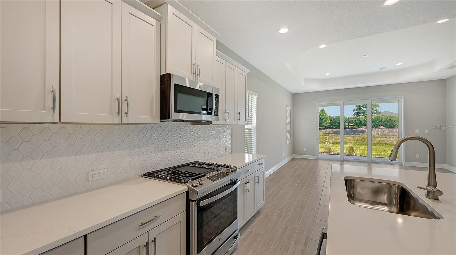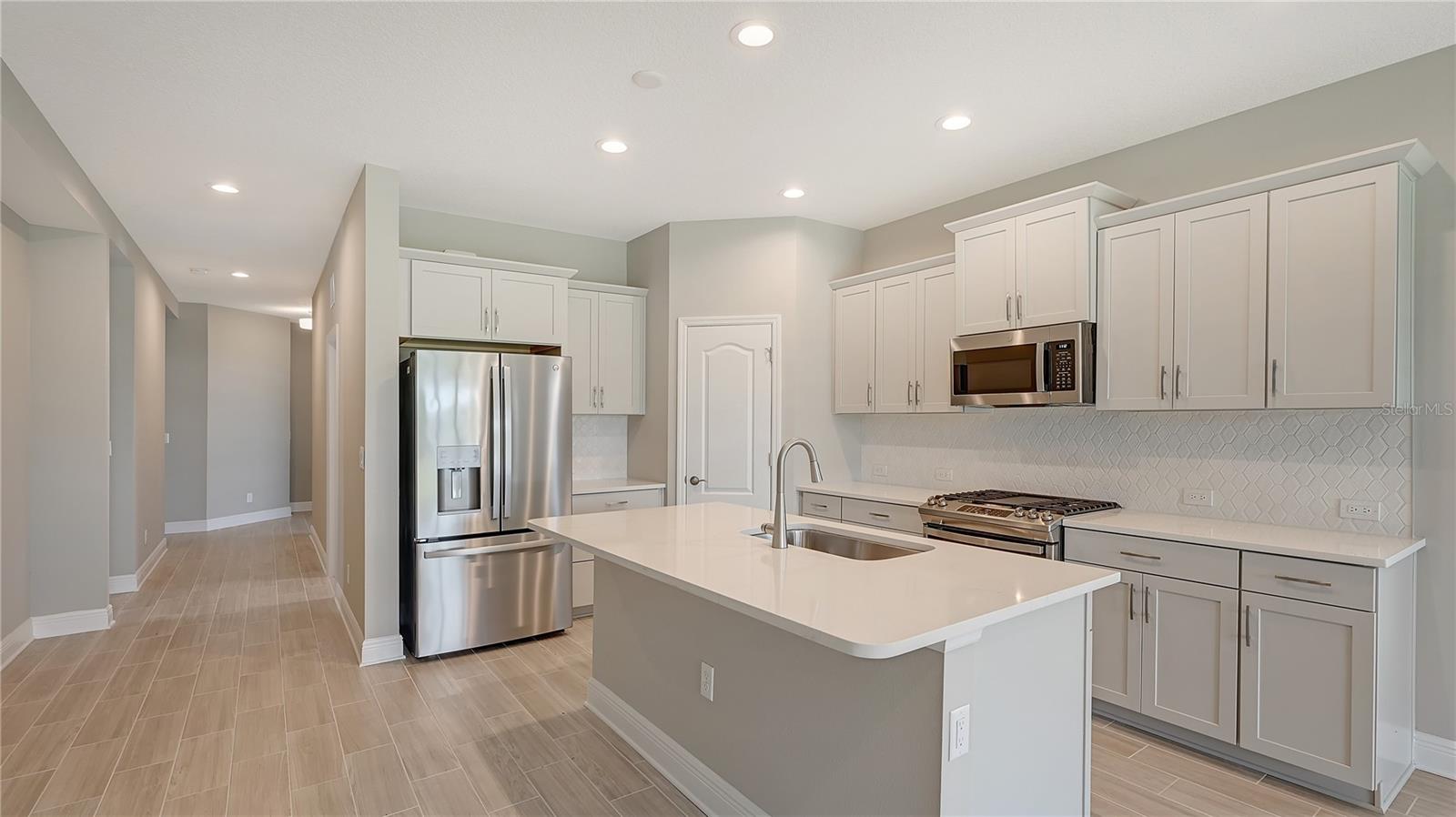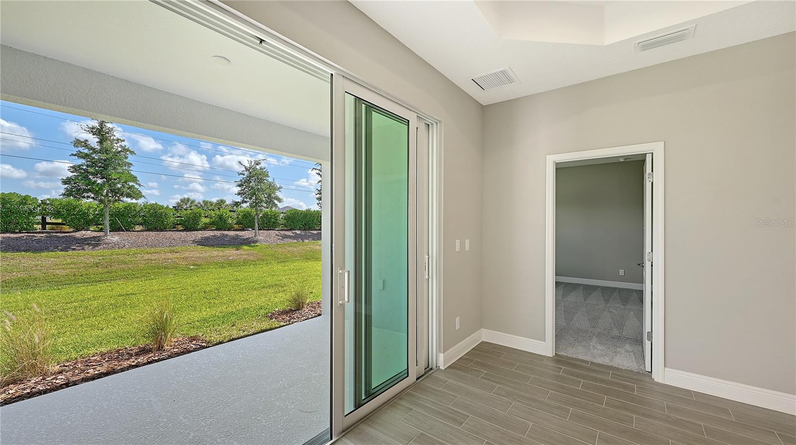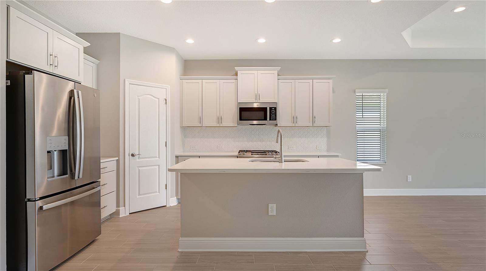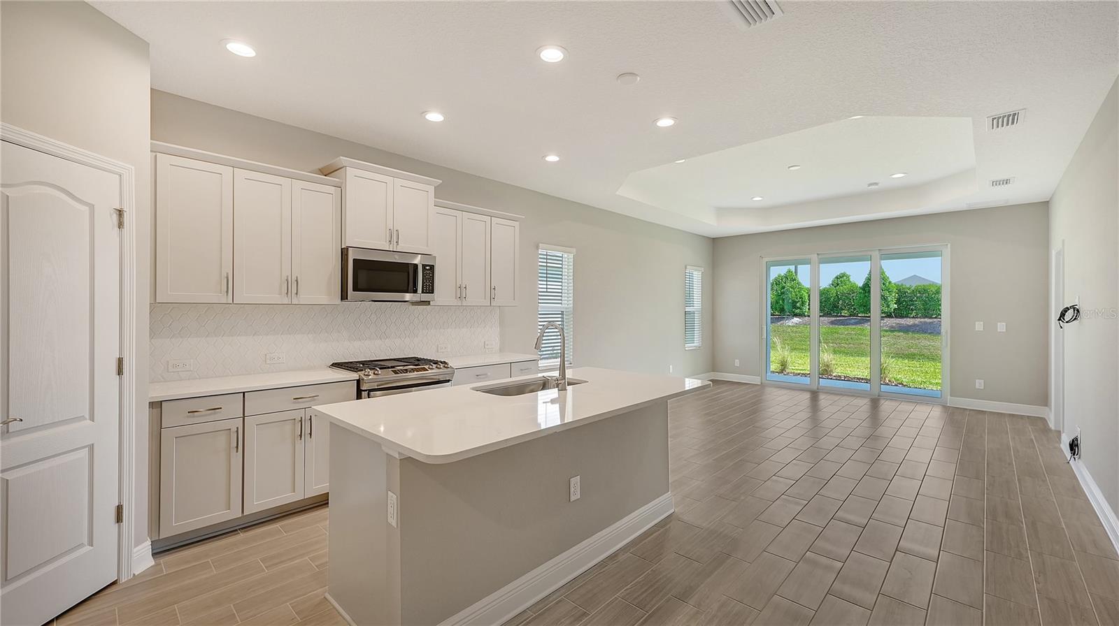 3 bedroom, 2 bath single family home with a 2-car garage and spacious den/office. The floor plan includes a beautiful open kitchen with corner pantry, quartz countertops and a center island with plenty of counter space for all of your culinary creations! The home offers high impact glass throughout, including the pocket sliding doors that lead out onto the lanai. The outdoor space has been equipped for an outdoor-kitchen, and offers a spacious backyard that can be fenced! The master bedroom includes 2 closets, dual vanity sinks and a walk-in shower. A separate den, utility room and 2 additional bedrooms and second bath complete the home.