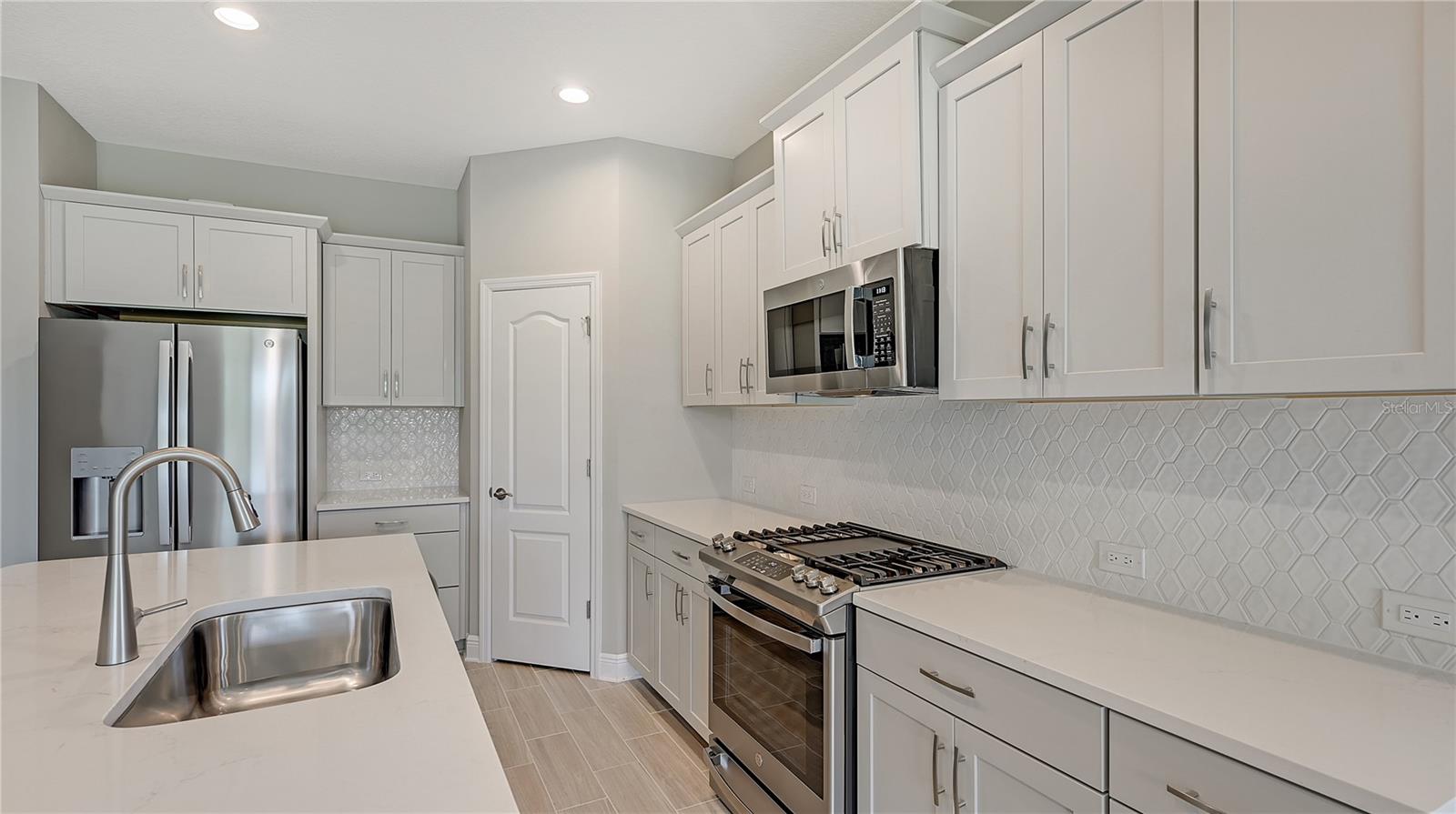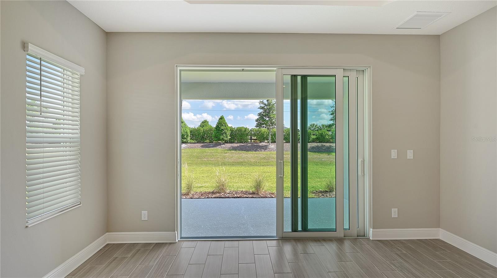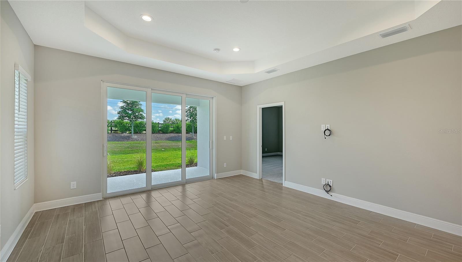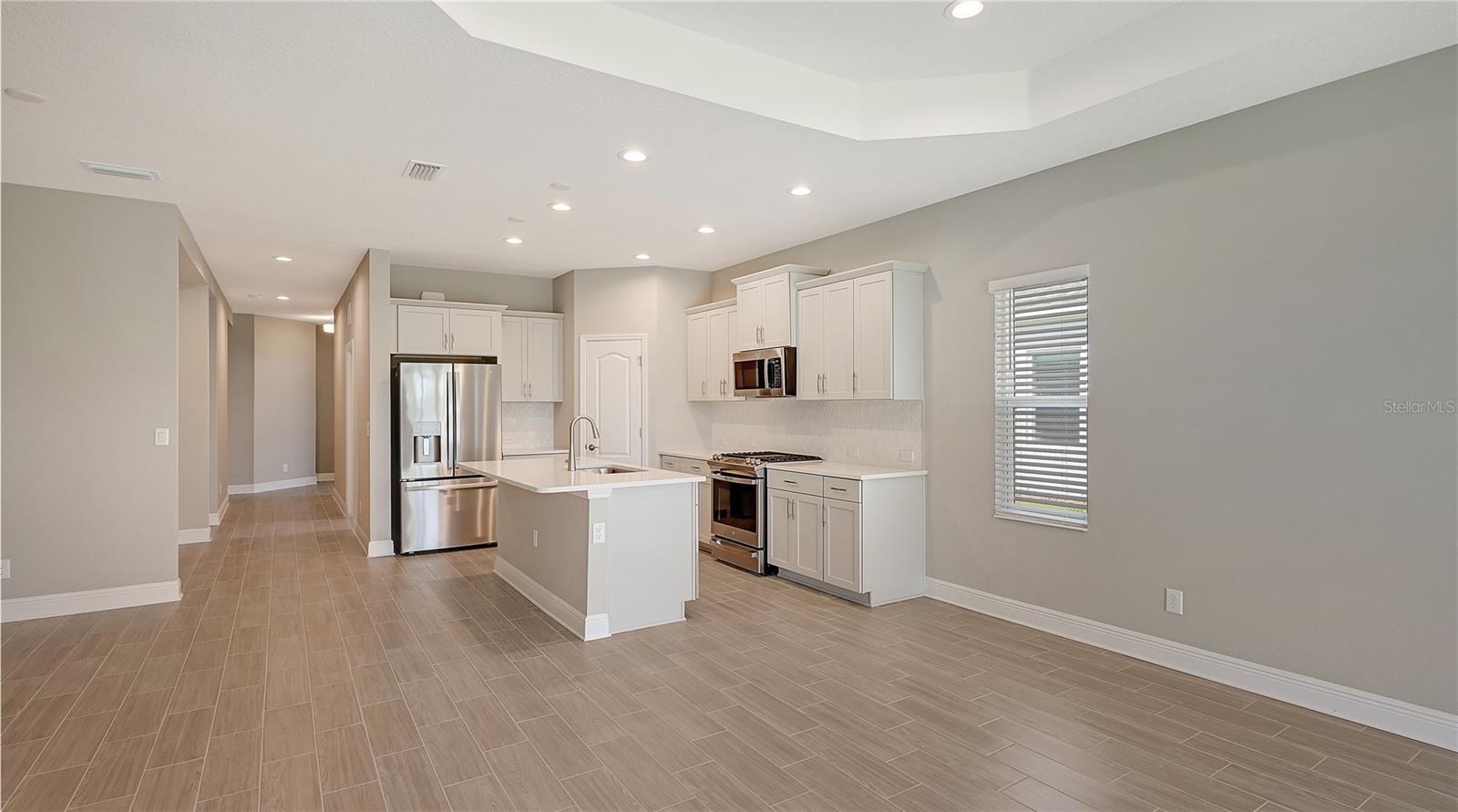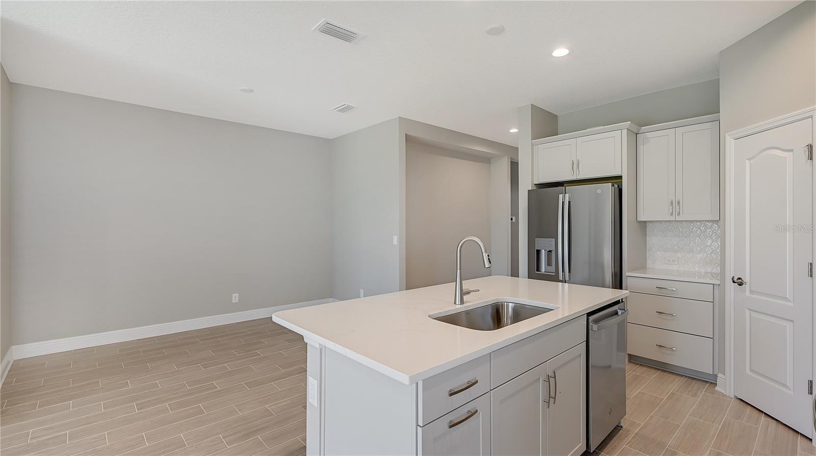 3 bedroom, 2 bath single family home with a 2-car garage and spacious den/office. The floor plan includes a beautiful open kitchen with corner pantry, quartz countertops and a center island with plenty of counter space for all of your culinary creations! The home offers high impact glass throughout, including the pocket sliding doors that lead out onto the lanai. The outdoor space has been equipped for an outdoor-kitchen, and offers a spacious backyard that can be fenced! The master bedroom includes 2 closets, dual vanity sinks and a walk-in shower. A separate den, utility room and 2 additional bedrooms and second bath complete the home.
