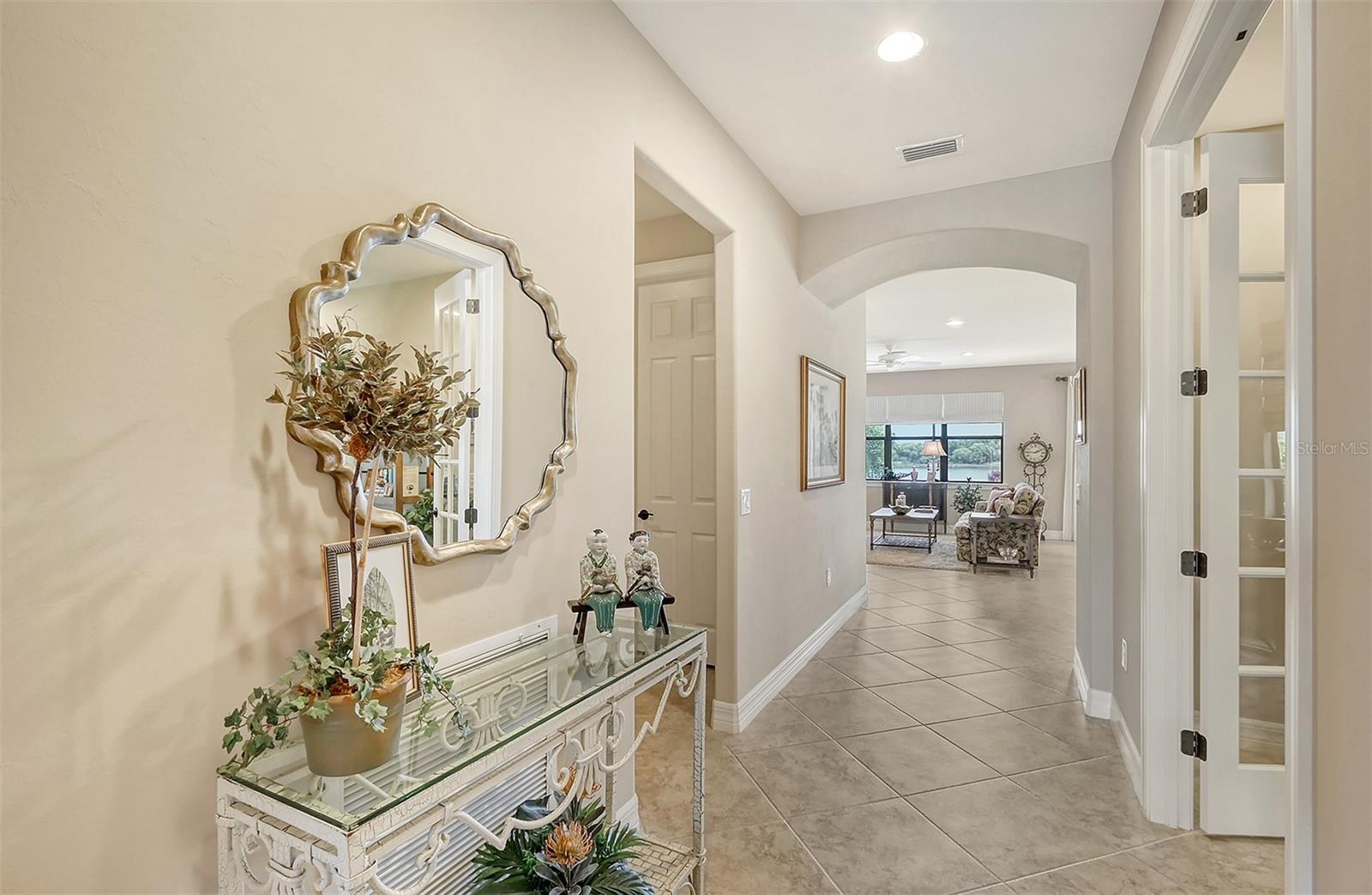 Model perfect maintenance free home with expansive water views in Sandhill Preserve. This popular Abbeyville floor plan features 2 generous bedrooms, den & 2 baths. Large neutral tiles on the diagonal throughout the entire home (no carpets). Open kitchen concept with upgraded appliances, large center island & soft close drawers. Stadium shower in master bedroom bath. 2 car garage with epoxy floors. Hurricane shutters for all openings. Sandhill Preserve is one of Palmer Ranch's newer communities with only 308 homes* The community features a community pool, jacuzzi, fitness center, pickle ball, club house, fire pit, barefoot bar area tennis & more. Located in the heart of Palmer Ranch just minutes from world famous Siesta Key beach, shopping, restaurants & Legacy bike trail*
