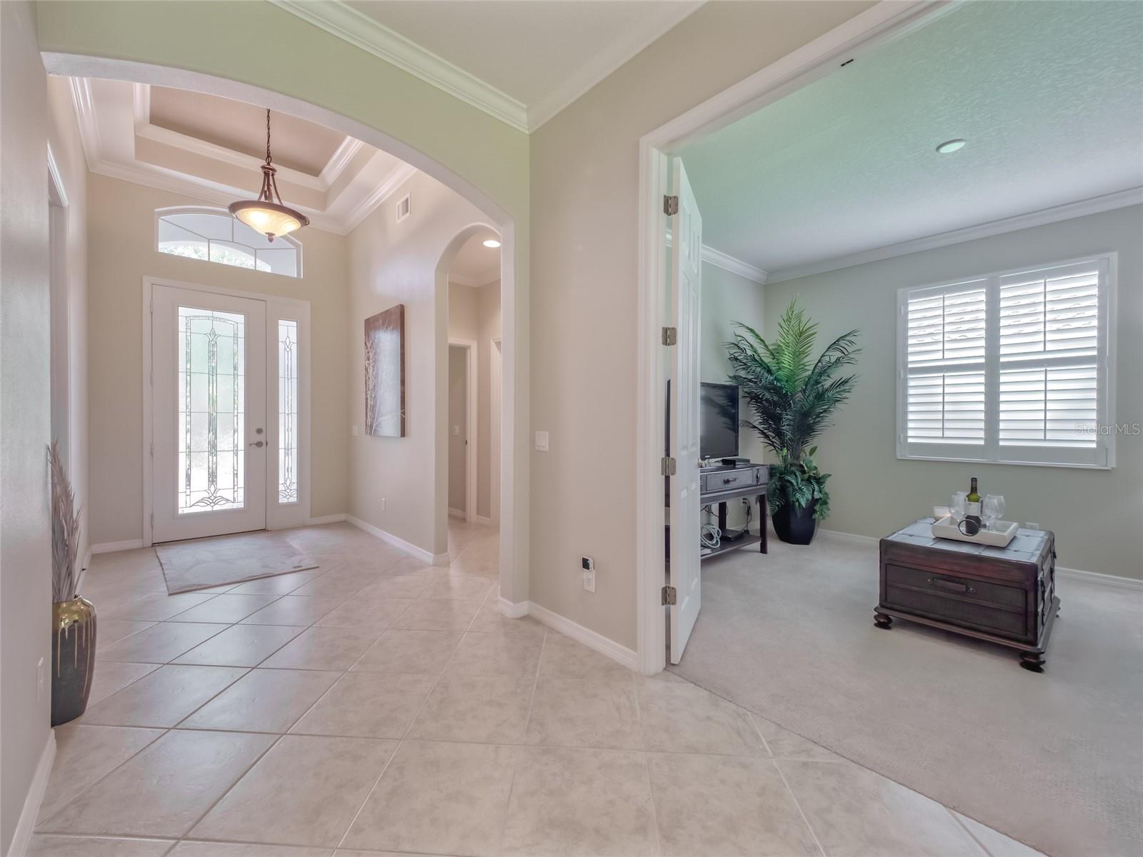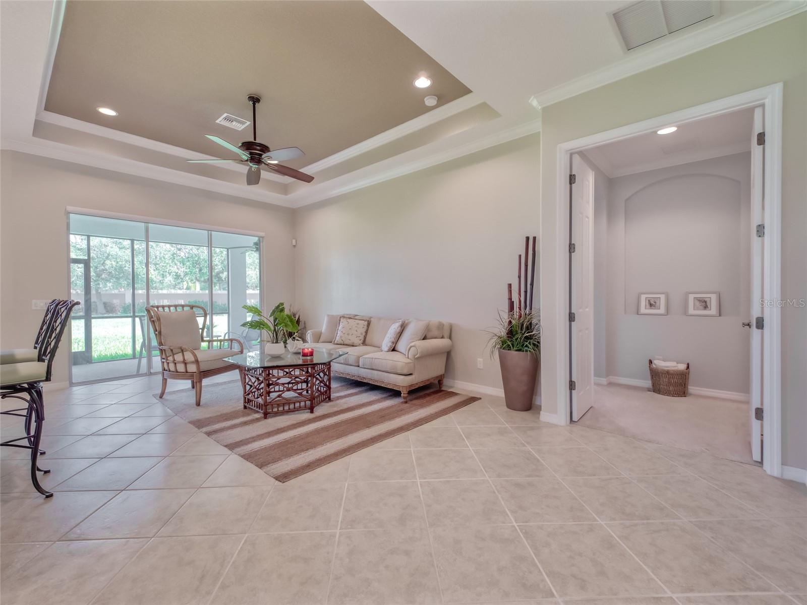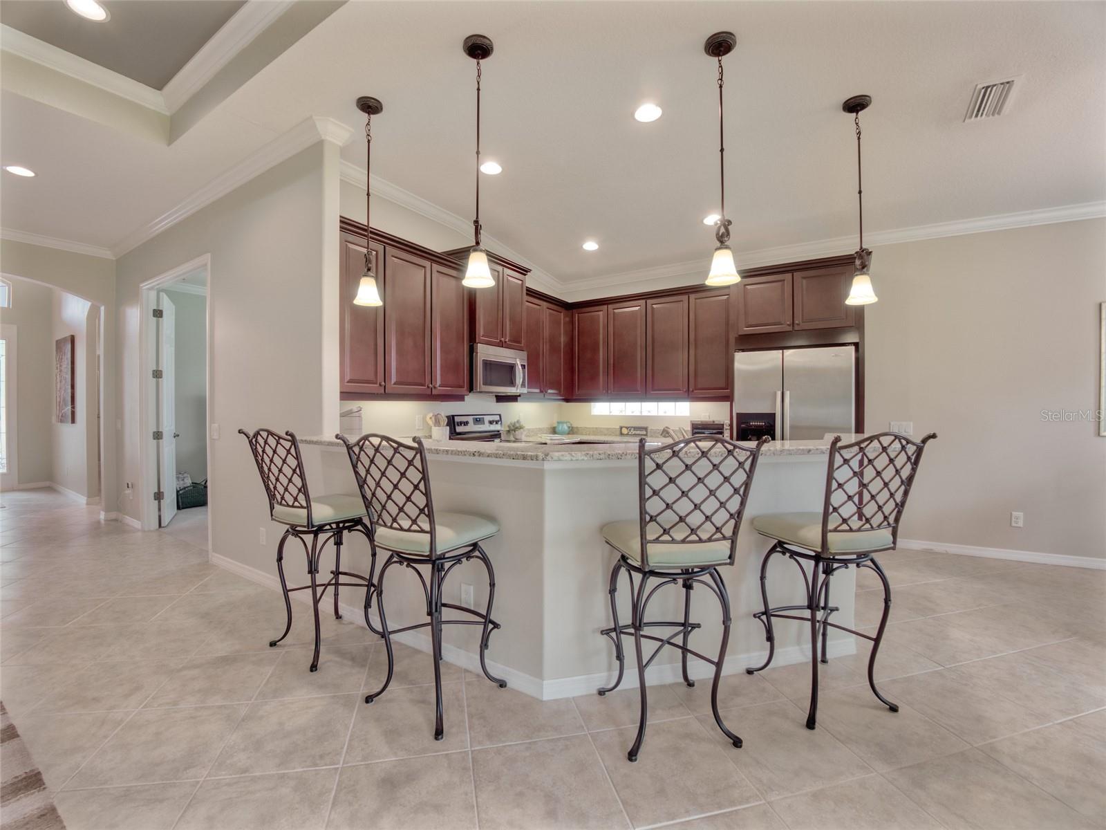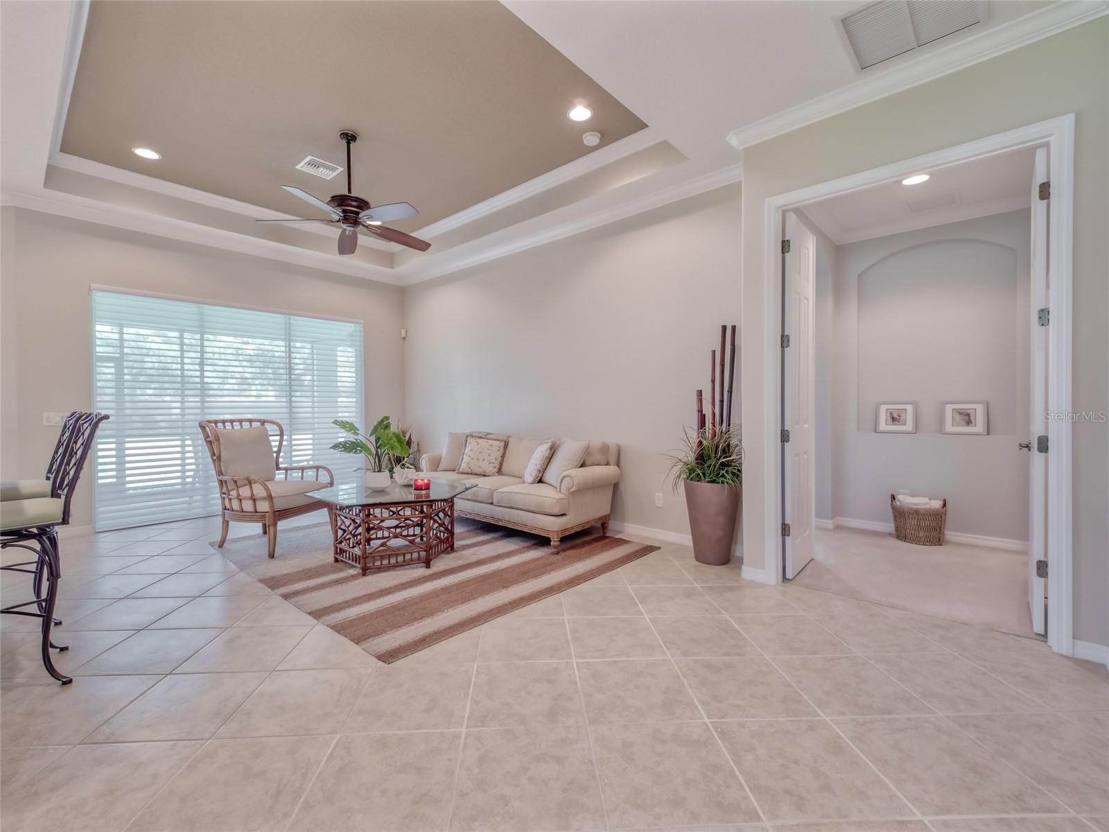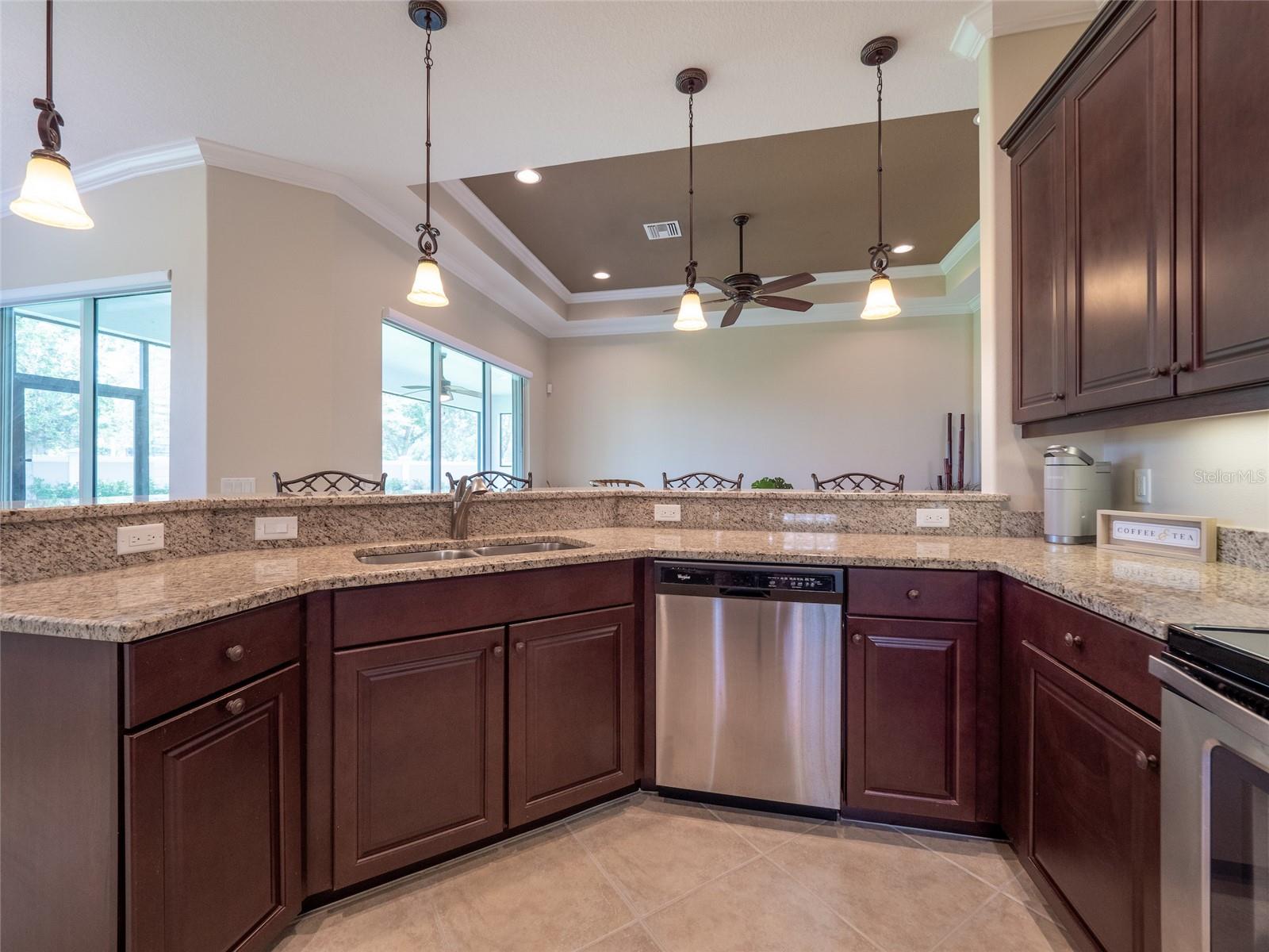 Paradise Found! Enjoy a DYNAMIC FLORIDA LIFESTYLE in your Classic & Charming Home, within an Active Community, in a Prime Location! This pristine home has been lightly lived-in & fastidiously maintained by original owners. New A/C system 2023, Newly painted Home Exterior & new Backflow System in 2022. Enjoy the light-filled living space w/ 11' HIGH CEILINGS, 8' DOORS, CROWN MOLDING, MOTORIZED LANAI SHADES & tasteful PLANTATION SHUTTERS. Open Concept Floor Plan - the large, CHEF's KITCHEN is open to the FAMILY ROOM & DINING ROOM. Upgraded Kitchen features Granite Counters, Stainless Steel Appliances, Wood Cabinets, Under-Cabinet Lights - offering abundant Counter space for cooking & Cabinet space for storage. Enter the impressive & private Master Suite through Double Doors. On the left, the spacious MASTER BEDROOM offers a TRANQUIL RETREAT. On the right, the EN_SUITE MASTER BATHROOM features a walk-in Shower, Double Sinks w/ Granite Countertops & a large Walk-In Closet. A 2nd BEDROOM on the opposite side of the home provides a separate space for family or guests. The adjacent 2nd BATHROOM offers a Tub/Shower as well as Granite countertops. A central DEN w/ Double Door privacy can be used as an Office, Guest Space or TV area. The SCREENED LANAI w/ a Ceiling Fan is accessed via Sliding Doors in the Dining Room or Family Room. The Lanai presents a perfect area for outdoor dining, morning coffee or simply relaxing. Enjoy convenience in the LAUNDRY ROOM, with a Laundry Sink & Storage Cabinets. The Stylish Home Furniture can be available via a separate agreement. Hurricane Shutters. Curb appeal! The attractive PAVER DRIVEWAY leads to a 2-Car GARAGE. Cascades offers 55+, resort-style living in a gated, maintenance free & lushly landscaped environment. This vibrant community features a luxurious 25,000sf CLUBHOUSE w/ rooms for every activity - Events Room (with stage), Billiards Room, Library, Art Room, Conference Room, Game Room & Card Room. Behind the Clubhouse is a separate Fitness Center w/ equipment, instructor & exercise classes. Enjoy a unique Indoor/Outdoor heated resort-style Pool & Spa, as well as 6 lighted Har-Tru Tennis Courts, a Tennis Pro Shop w/ a Tennis Pro on Staff, 2 Pickle Ball Courts & 3 Bocce Courts. Stay active with a monthly calendar filled with clubs, groups & social gatherings. Low HOA Fees cover Lawn Maintenance, Irrigation, Cable TV & Internet, Security Gates & all Amenities. No CDD Fees. Cascades is centrally located just 3 miles from SRQ Airport, a short drive to the UTC Mall, Downtown Sarasota, St. Armand's Circle & Award-winning Beaches. Minutes to Lakewood Ranch Main Street, Waterside Place & Sarasota Polo Club. This perfect home in Paradise is MOVE-IN READY. Visit today!