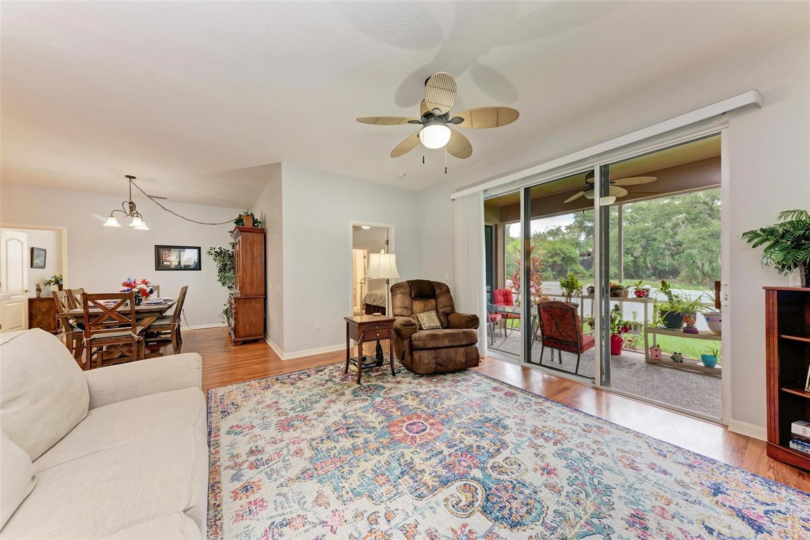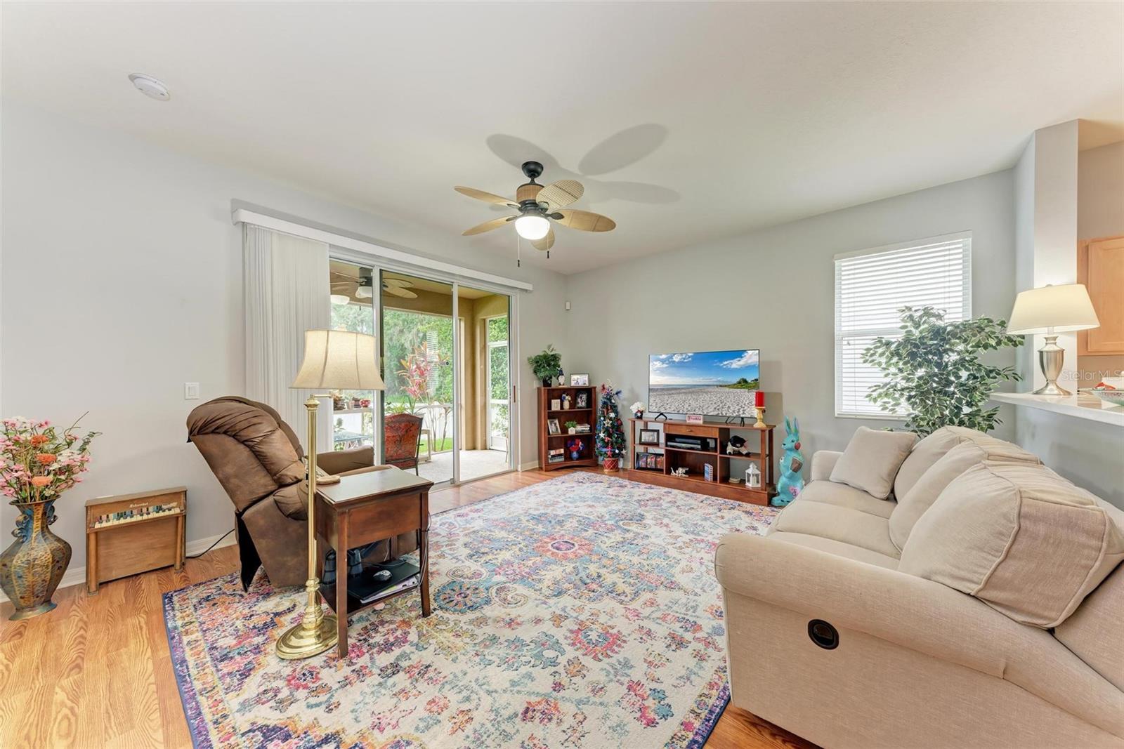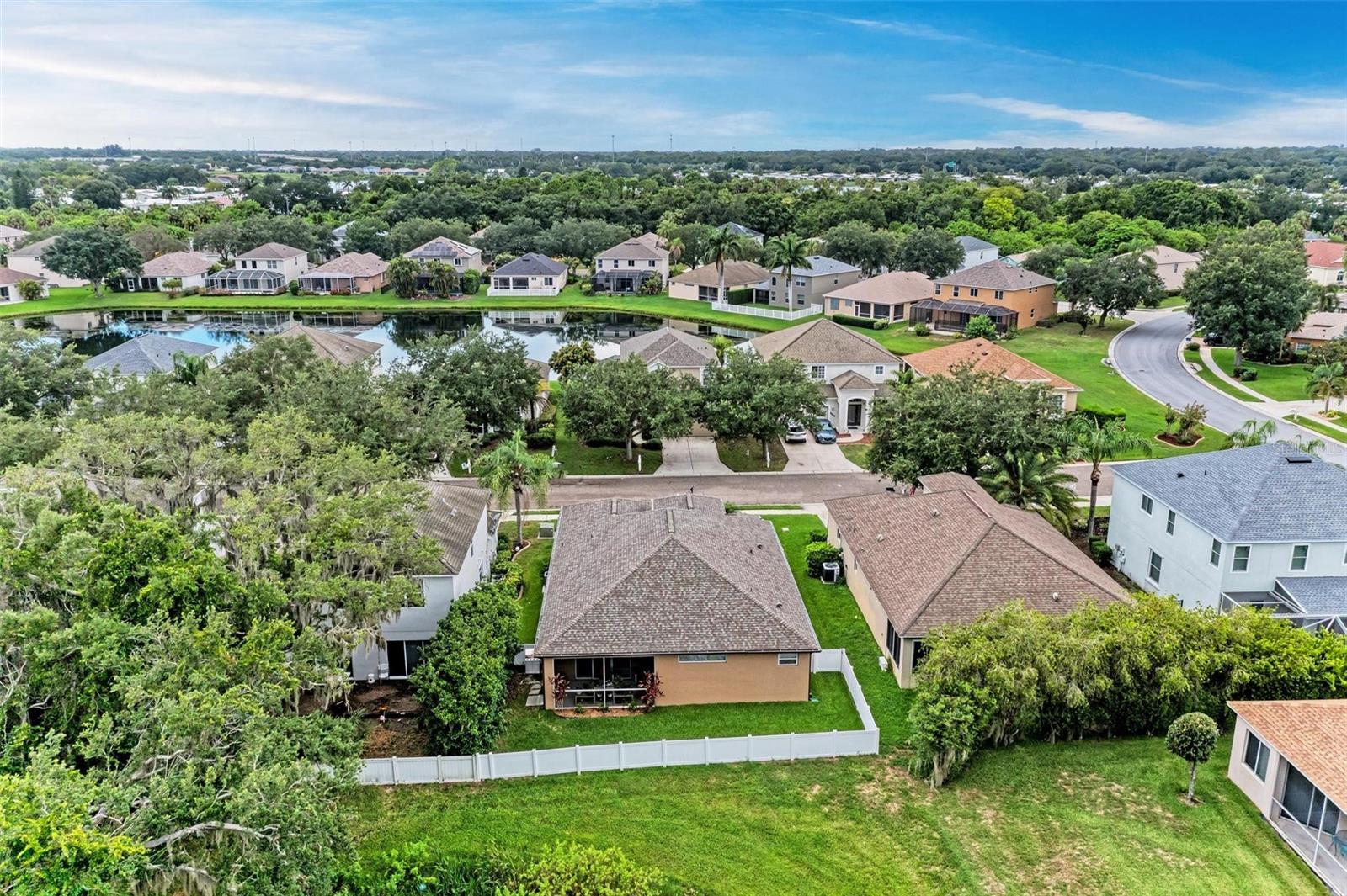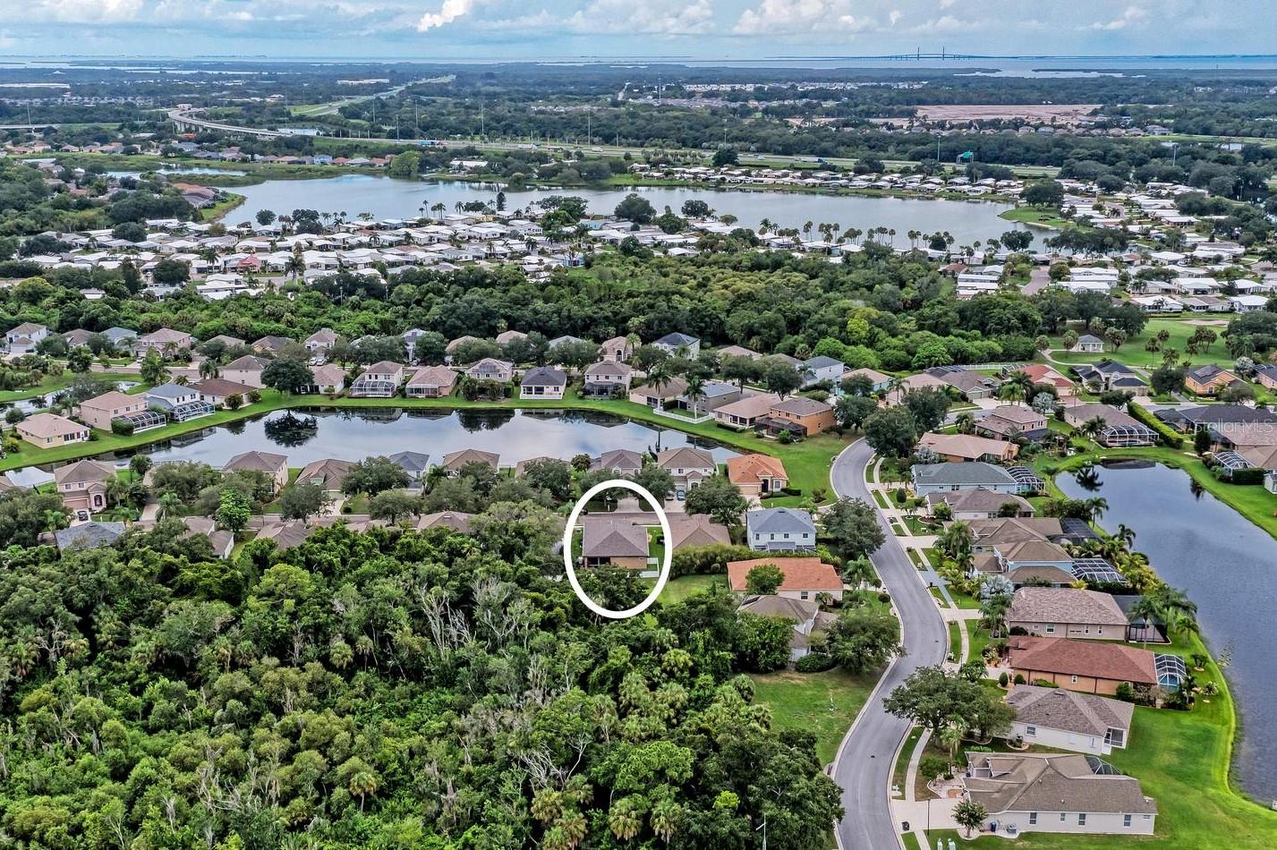 Nestled in the serene neighborhood of Fairways at Imperial Lakewoods, this charming 2 bed / 2 bath + den home offers a blend of modern comforts and thoughtful design. As you step through the front door, the warmth of laminate floors welcomes you into the spacious main living area. A well-appointed kitchen connects to the family room, perfect for gatherings and everyday living. Sliding doors lead from the family room and master bedroom to a tranquil lanai, offering peaceful views of the fenced backyard, lush wooded preserve, and serene pond. The master suite boasts a large walk-in closet and a spacious ensuite bathroom with dual sinks and a walk-in shower. The 2-car garage is extended on one side to 25+ feet and is perfect for those with larger vehicles, small boats or possibly a small woodshop or storage area. This home comes with hurricane shutters, and an irrigation system. Recent updates such as a NEW ROOF and AC in 2022, along with interior and exterior painting in 2021, ensure a modern aesthetic and worry-free living. Enjoy convenient access to I-75 and I-275 making Tampa, St. Pete, Sarasota and award winning beaches all within 45 minutes or less. There's a brand new Publix grocery store just outside the neighborhood and the surrounding area will continue to add new shops and restaurants. There is also a lagoon pool community being built just down the road. This home offers a perfect combination of comfort, functionality, and peaceful surroundings, presenting an ideal opportunity to embrace a relaxed lifestyle in a sought-after location.