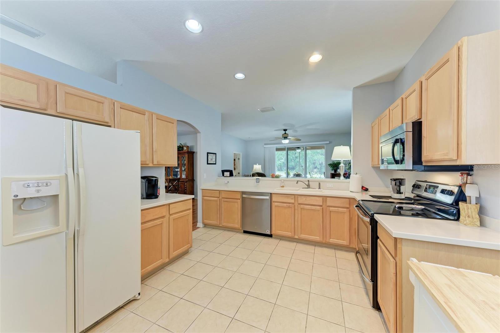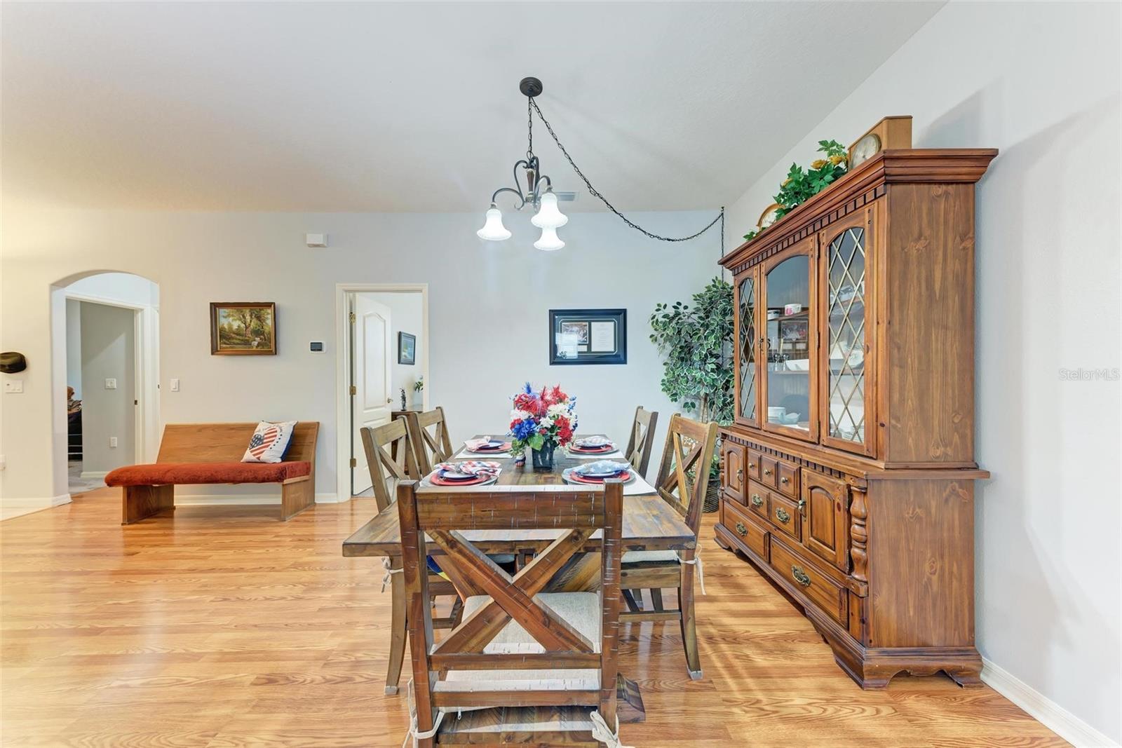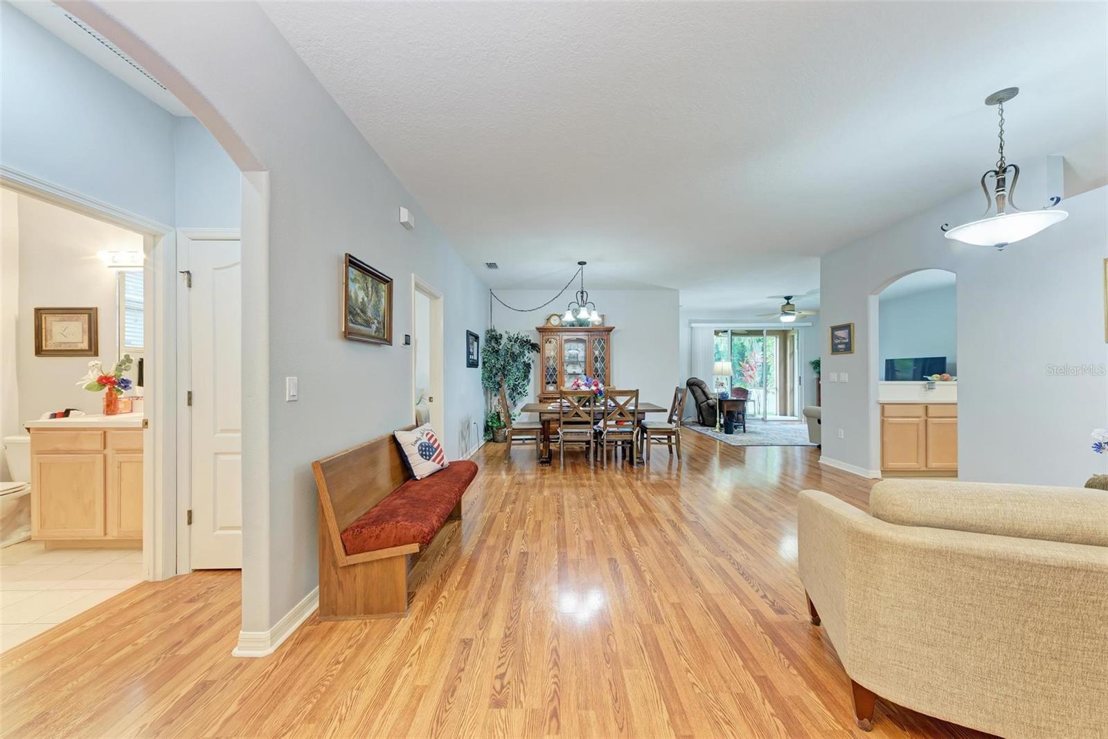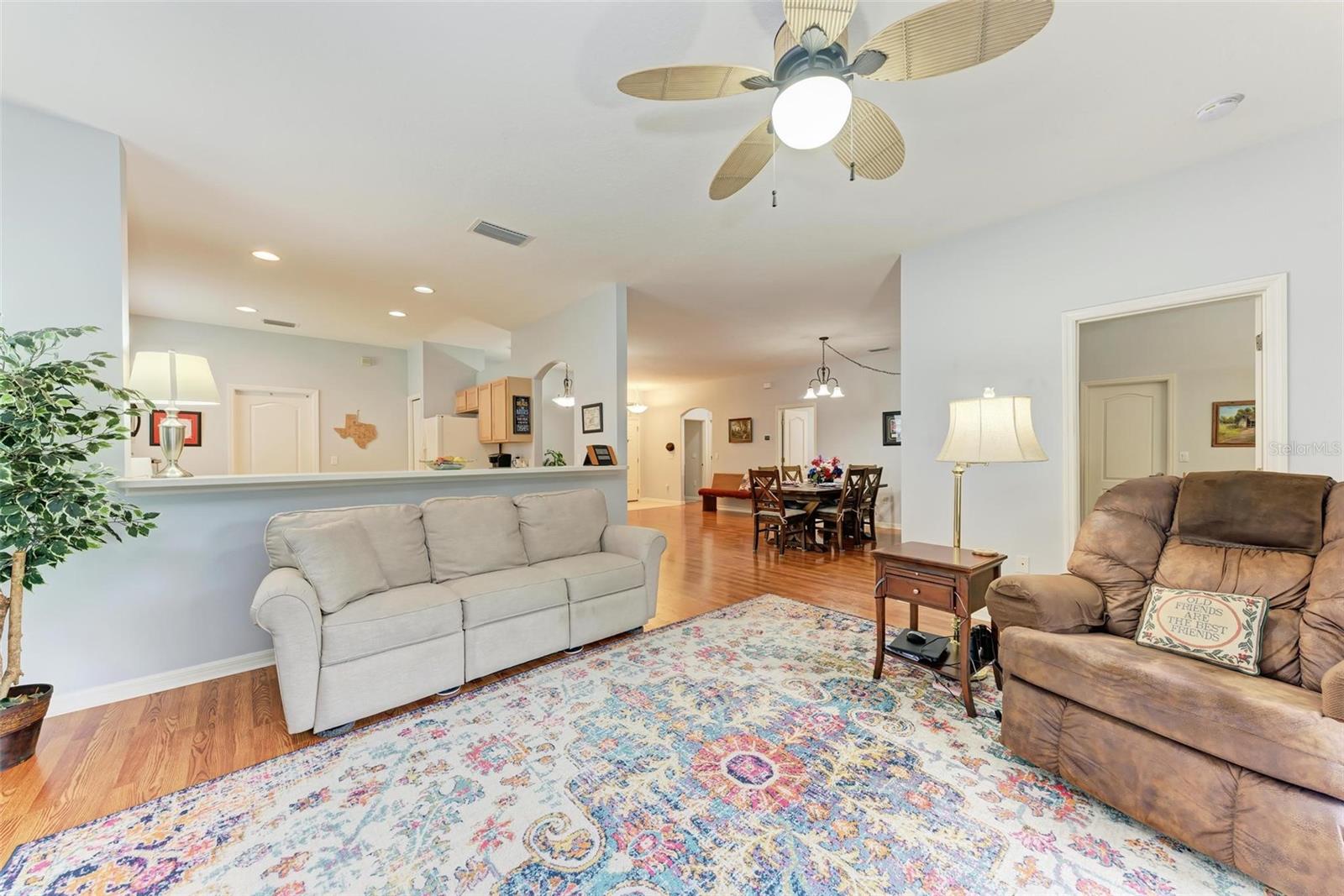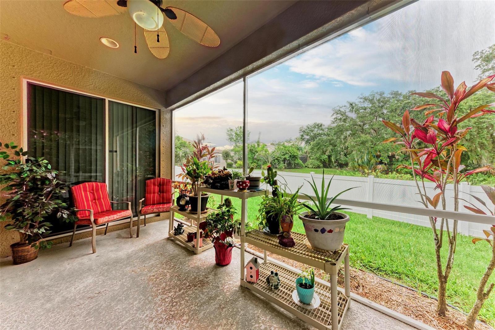 Nestled in the serene neighborhood of Fairways at Imperial Lakewoods, this charming 2 bed / 2 bath + den home offers a blend of modern comforts and thoughtful design. As you step through the front door, the warmth of laminate floors welcomes you into the spacious main living area. A well-appointed kitchen connects to the family room, perfect for gatherings and everyday living. Sliding doors lead from the family room and master bedroom to a tranquil lanai, offering peaceful views of the fenced backyard, lush wooded preserve, and serene pond. The master suite boasts a large walk-in closet and a spacious ensuite bathroom with dual sinks and a walk-in shower. The 2-car garage is extended on one side to 25+ feet and is perfect for those with larger vehicles, small boats or possibly a small woodshop or storage area. This home comes with hurricane shutters, and an irrigation system. Recent updates such as a NEW ROOF and AC in 2022, along with interior and exterior painting in 2021, ensure a modern aesthetic and worry-free living. Enjoy convenient access to I-75 and I-275 making Tampa, St. Pete, Sarasota and award winning beaches all within 45 minutes or less. There's a brand new Publix grocery store just outside the neighborhood and the surrounding area will continue to add new shops and restaurants. There is also a lagoon pool community being built just down the road. This home offers a perfect combination of comfort, functionality, and peaceful surroundings, presenting an ideal opportunity to embrace a relaxed lifestyle in a sought-after location.