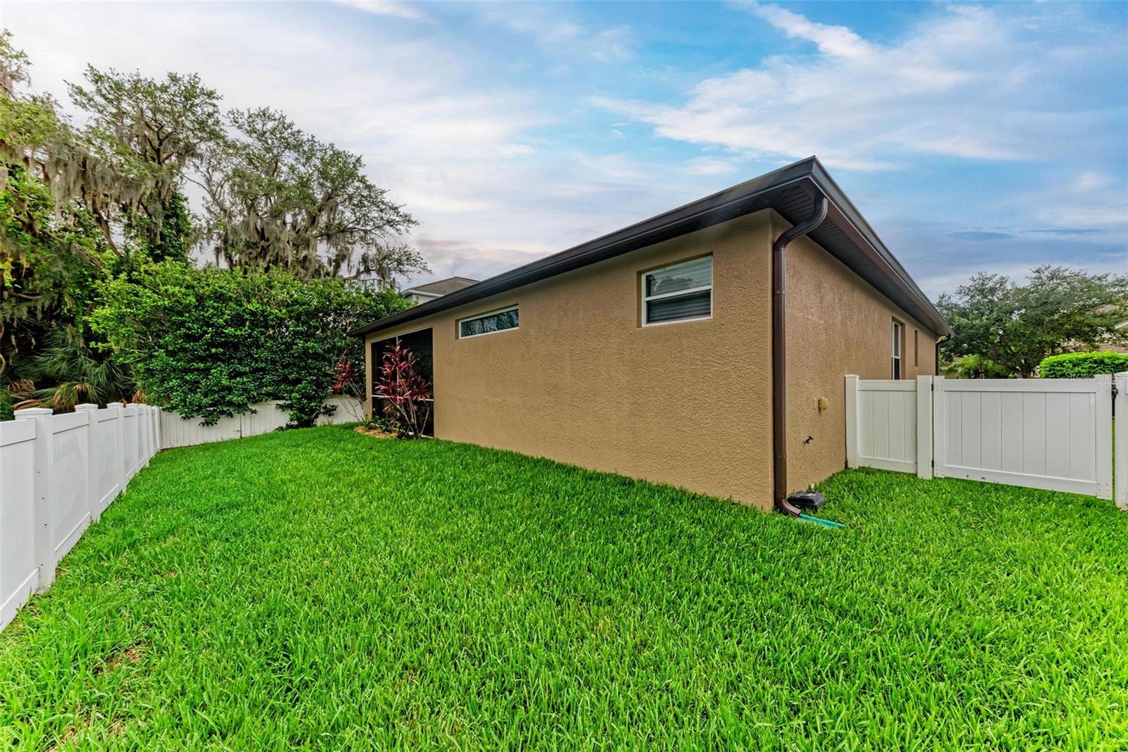 Exterior: Irrigation System, Lighting, Rain Gutters, Sidewalk, Sliding Doors