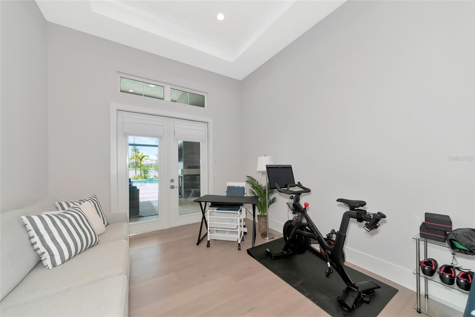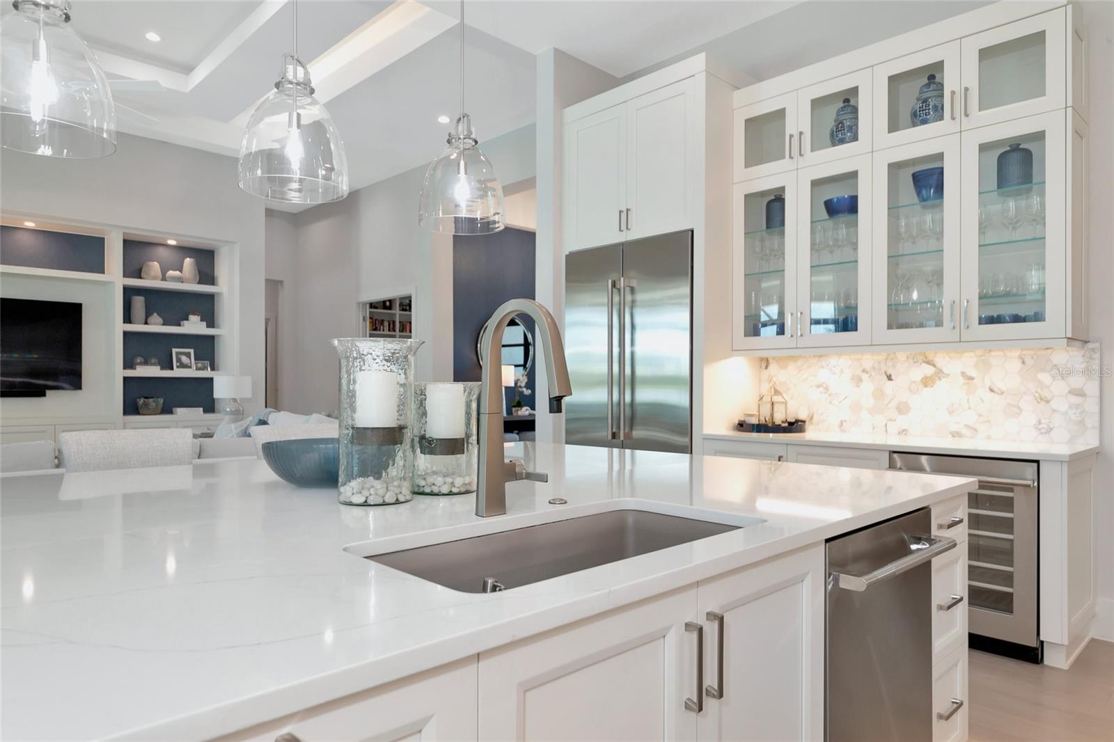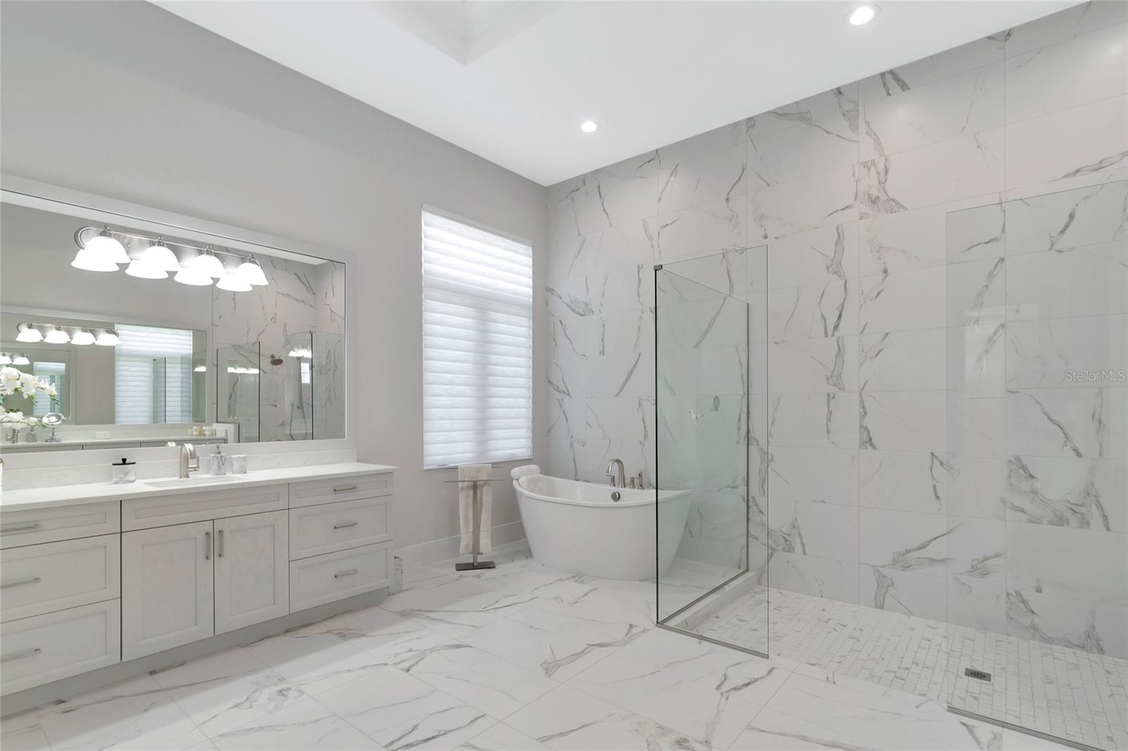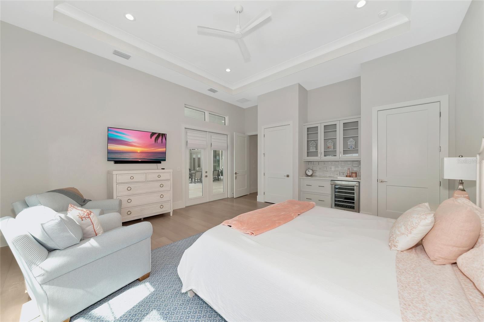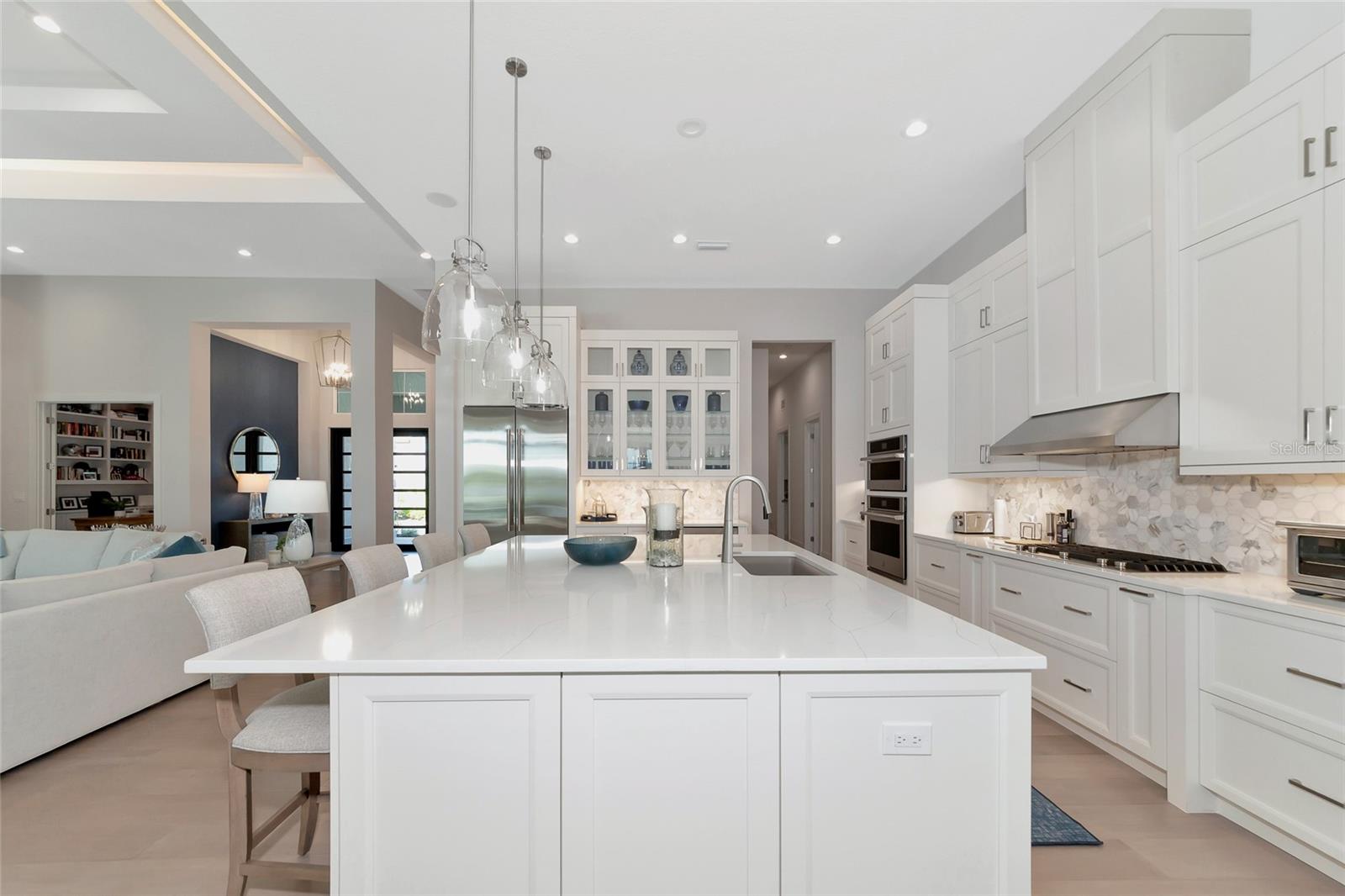 4 Bed, 4.5 Bath, Bonus Room, Office, 4,369 Sq Ft, Water Views, Heated Saltwater Pool & Spa, Expansive Lanai, Outdoor Kitchen, Engineered Hardwood, Tray Ceilings, Custom Lighting, Whole-Home Generator, Impact Doors and Windows, Resort Style Amenities. Make your home the vision of sophistication in Lakewood Ranch's most exclusive village, The Lake Club. This recently crafted Clairborne II custom model by Stock Development is a luxurious 4-bedroom, 4 1/2-bath estate spanning 4,369 square feet. The stunning home features a private study, exercise room, expansive great room, dining room, and a grand outdoor living area, complete with a four-car garage.The heart of this residence is an expansive great room, which is beautifully illuminated with natural light and features a custom LED backlit, drop-down tray ceiling. This space seamlessly flows into the kitchen and dining areas, creating a cohesive living environment. The open kitchen has a large central island, which becomes a natural gathering spot for guests, and includes a gourmet setup with a dry bar, additional storage, and a wine refrigerator. The room's grand openness harmonizes with the cozy intimacy of its functional spaces, offering both a spacious and inviting atmosphere.Engineered hardwood floors add elegance and durability by flowing seamlessly throughout the home. The wall of sliding glass doors in the great room not only lets in abundant natural light, but also seamlessly transitions into an exquisite outdoor space, featuring an expansive east-facing lanai. Here, you can enjoy a cozy fireplace, gourmet outdoor kitchen, and a sparkling salt-water pool and spa, all set against a breathtaking waterfront vista. The panoramic screen enclosure frames impressive water views from every corner.The master suite includes separate his and her closets, a cozy seating area, and a lavish bath featuring a freestanding soaking tub, spacious walk-in shower with frameless glass enclosure, dual-sink vanity, and porcelain tile flooring.Guests and family alike will appreciate the inviting accommodations in this home, featuring two comfortable bedrooms with ensuite bathrooms, a bonus room (currently used as the third bedroom), and an exercise room. Throughout the home, impact-resistant windows and sliding doors enhance security and durability, showcasing recent construction for lasting quality. For ultimate peace of mind, a whole-home generator ensures that you'll never be without power. The Lake Club offers premier amenities and recreational facilities within the community, convenient access to world-class beaches, and A-rated schools. Enjoy a Grande Clubhouse with a restaurant, pool, basketball, tennis and pickleball courts, playground, fitness center, dog park, kayaking, and fishing. This home truly offers the perfect blend of luxury, comfort, and convenience.