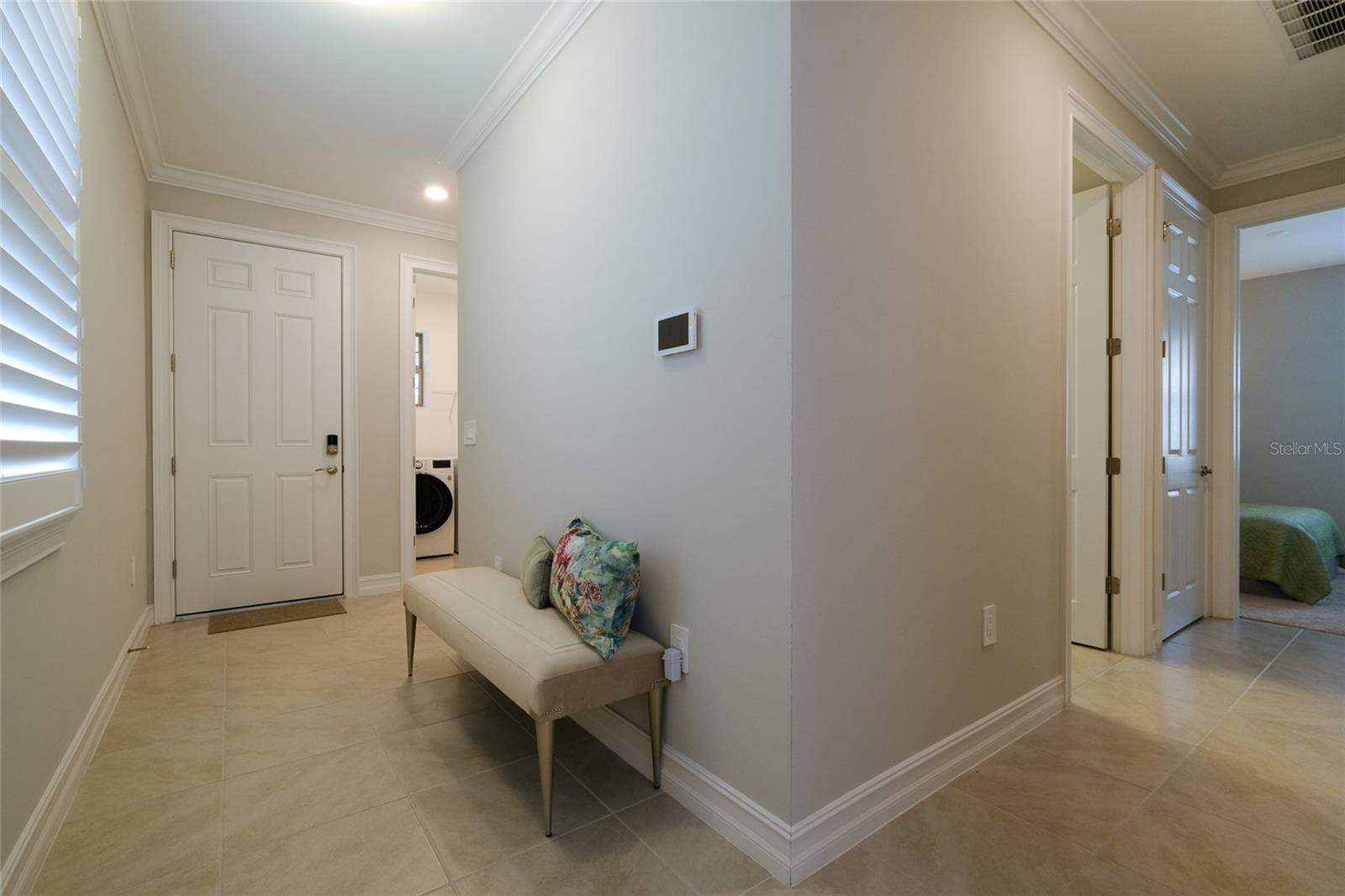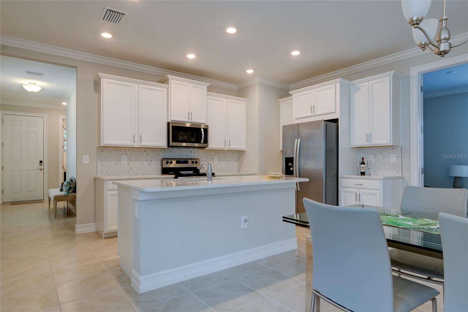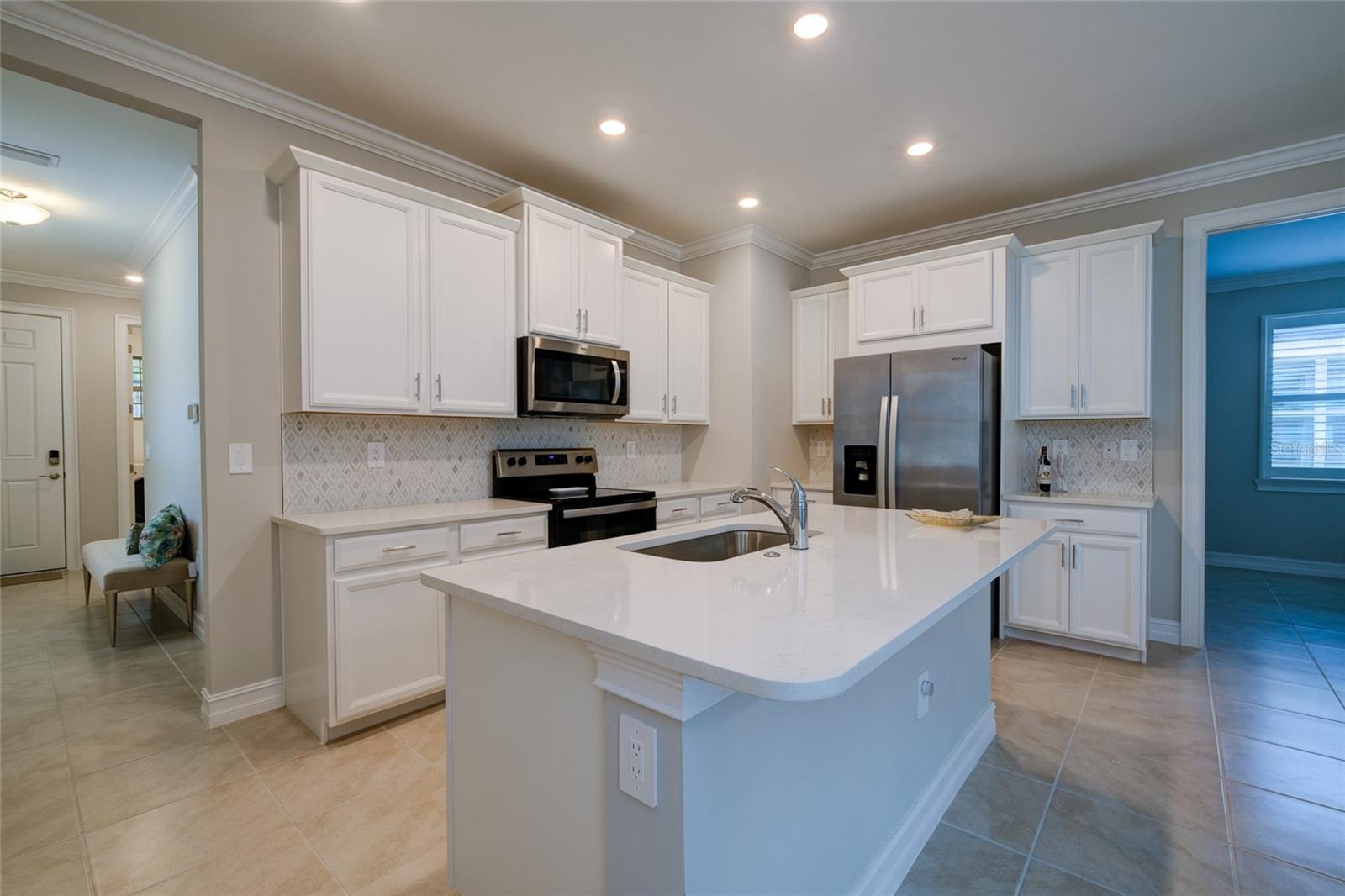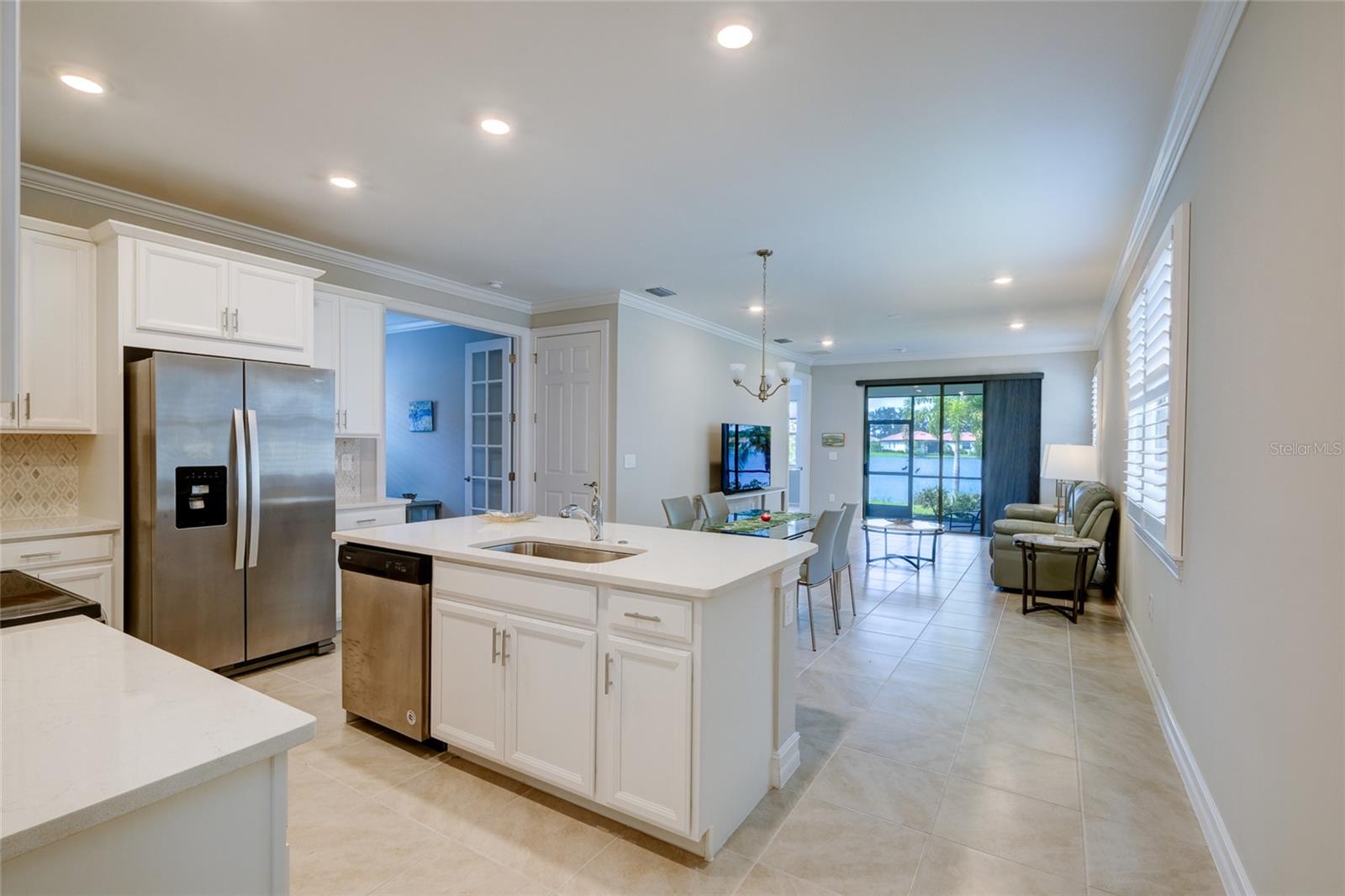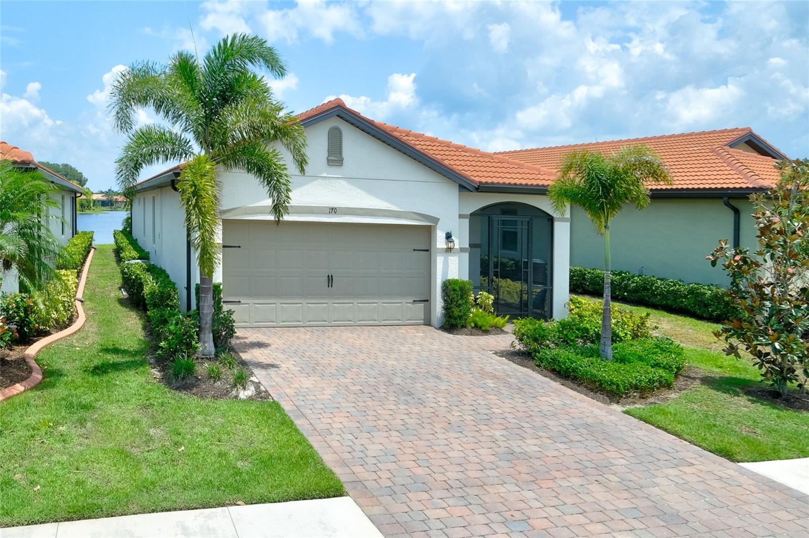 Discover this gorgeous, Turnkey Furnished home and experience the perfect blend of luxury and convenience in the stunning Toscana Isles Community. Enjoy serene water views, and modern updated fixtures throughout the house, and a spacious layout features 3 bedrooms, and 2 bathrooms providing ample space for comfortable living.The home boasts a two-car garage with epoxy-finished floors. The exterior is adorned with a paver driveway, a screened front porch, and a pre-plumbed lanai for an outdoor kitchen. Relax and enjoy the picturesque surroundings.Inside, you'll find a stylish kitchen with quartz countertops, stainless steel appliances, an elegant backsplash, and a large walking-in pantry with plenty of storage. The kitchen offers ample cabinet space in tasteful colors that blend seamlessly with any decor or design. Crown molding and plantation shutters add a classic touch to this exceptional home. This property is conveniently located for a quick drive to the beach, water sports, schools, restaurants, Sarasota Memorial Hospital, and easy access to I-75. Low HOA fees include landscape and irrigation. Explore the neighborhood walking, use a golf cart, and enjoy the incredible amenities, Kayak, canoe, and fishing on over 200 acres of interconnected lakes. The elegant Tuscan-style clubhouse includes a fitness center, ballroom, billiards, a heated, resort-style infinity-edge pool, tennis, pickle ball, bocce courts, and a large fire pit. There is also a playground and a dog park. Several activities are planned regularly throughout the year ensuring there's always something to do in this vibrant community. Welcome home!
