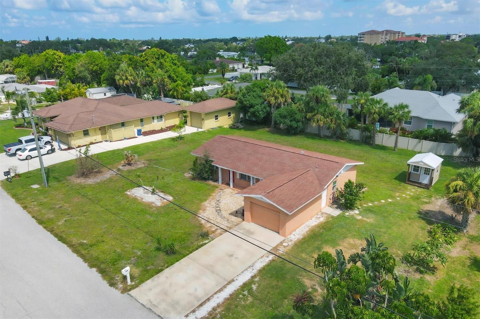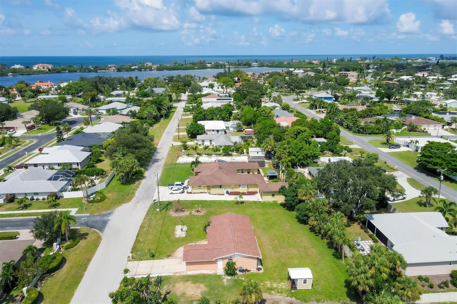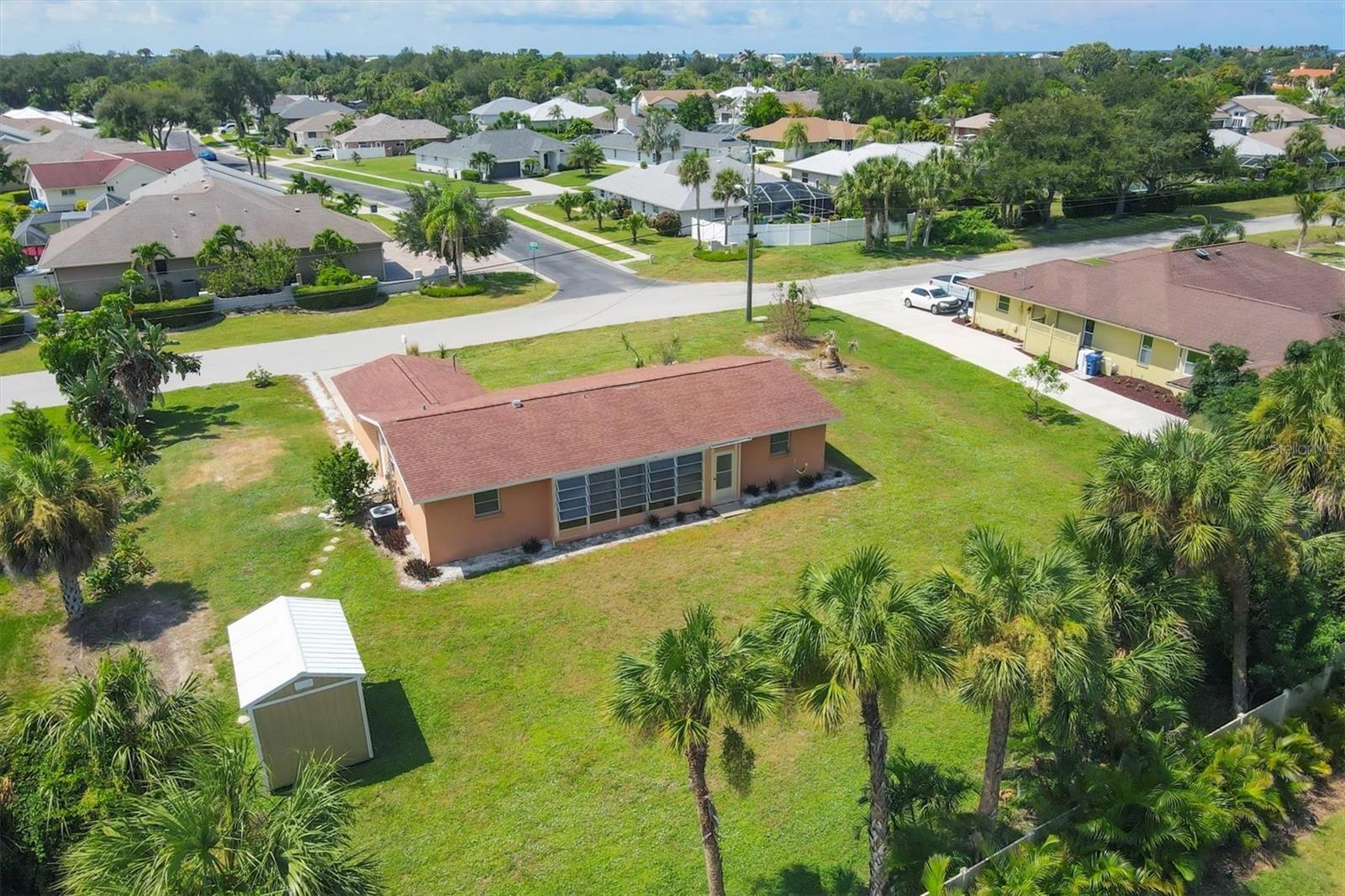 Welcome to this charming 2 bedroom, 2 bath home nestled on a quiet street west of the Trail. Solid built home on a large lot is ready for a new owner to bring out its full potential. Whether you're a first time home buyer, an investor, or looking for that perfect lot to rebuild, this is your property. This lot is large enough to park your big toys. Updates in 2024 include a new septic tank, drain field, and shower tile. Newer updates include water heater, AC, re-piped, attic AC ducts, kitchen cabinets, counters, range and microwave, toilet, bathroom vanity, ceiling fans, shed and driveway. Roof replaced in 2007 with cedar boards not plywood. The Sorrento Shores neighborhood is a stone's throw from the Gulf and is vibrant with character boasting a marina with 11 slips available for rent annually. (The marina is currently full with a waitlist.) Blackburn Point Park has a public boat ramp and is only 2 miles north on the Trail. The park also has a canoe/kayak launch, fishing pier, rowing facility, unpaved trail and is dog friendly. Also close to Oscar Scherer State Park and The Legacy Trail. Beaches, grocery, restaurants and downtown Venice only a short drive. This is the ideal location to live your Florida dream. Sorrento Shores has an optional HOA fee of $80 annually.