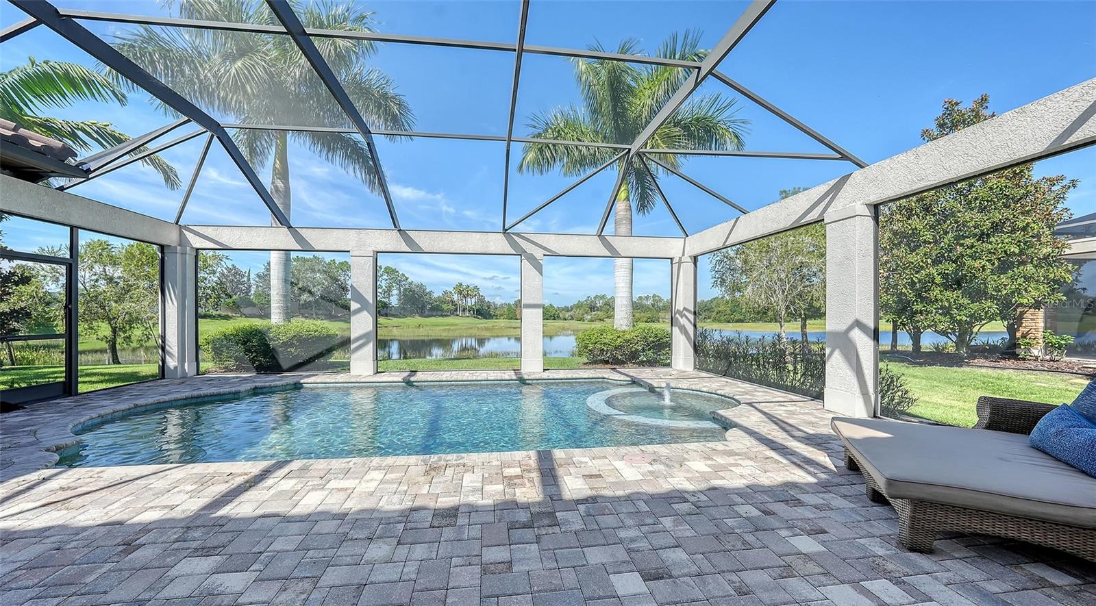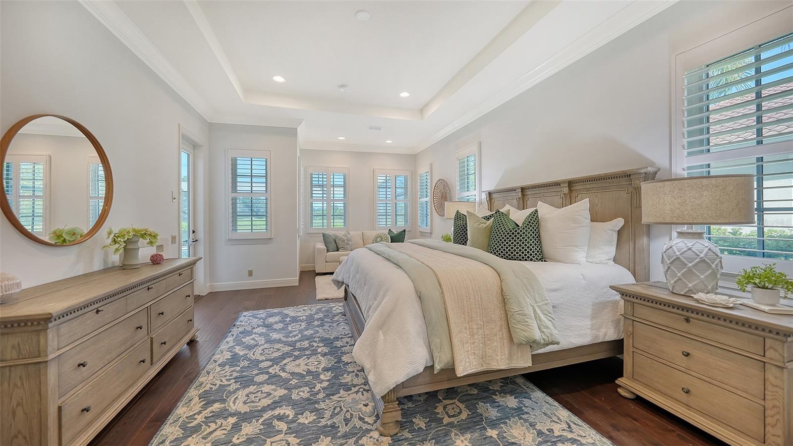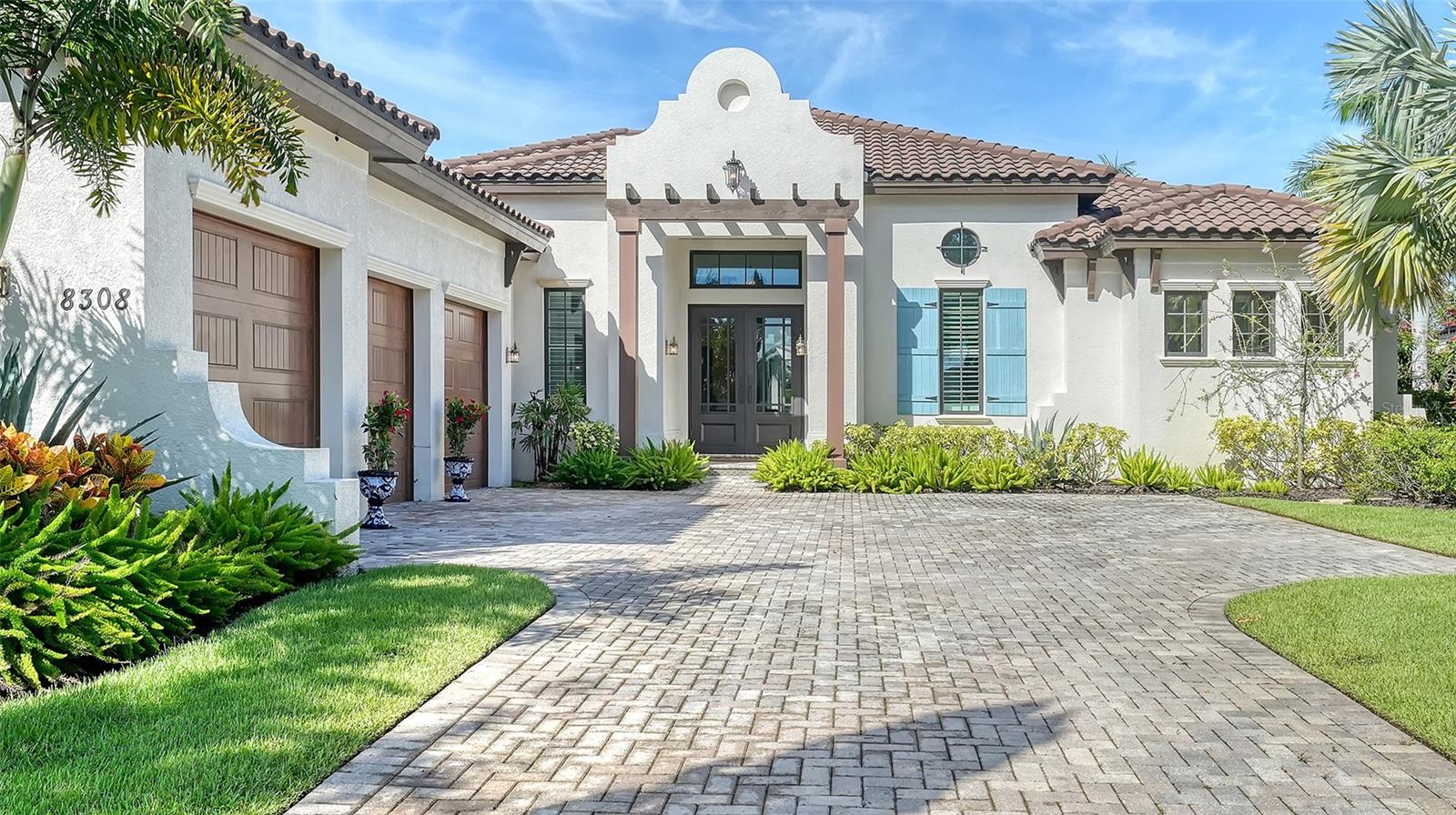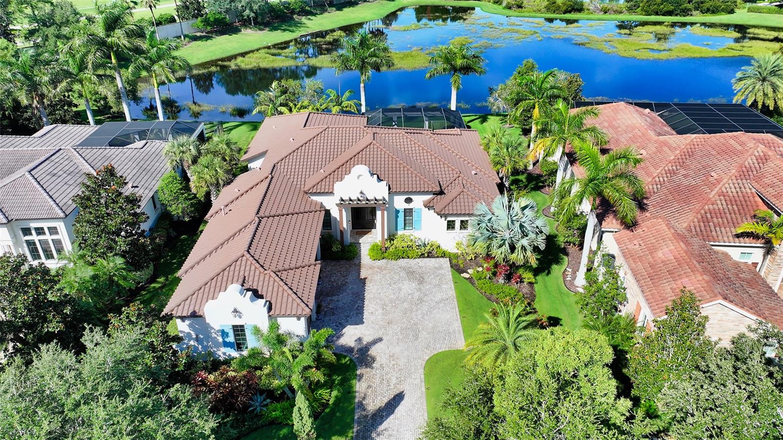 Privately set within the exclusive Lake Club and masterfully built by John Cannon Homes, this meticulously crafted Spanish Revival style home seamlessly blends timeless elegance with modern comfort. Boasting three bedrooms and three bathrooms, the residence exudes a warm ambiance accentuated by the rich allure of wood floors that flow through the main living areas. The heart of the home lies in the country-style kitchen with Wolf and Subzero appliances, farm sink and large center island. Primary bedroom is a serene retreat featuring tray ceiling, sitting area, plantation shutters, glass door access to lanai, two spacious walk-in closets, en suite bathroom with oversized frameless glass double entry walk-in shower, double vanities, private water closet, and linen closet. Two guest rooms are each en suite, offer walk-in closets, and have slider access to a shared private courtyard. Beyond the interiors, an inviting outdoor oasis awaits, featuring a brand new outdoor kitchen (2024) for alfresco dining, a refreshing saltwater pool and spa, all set against the backdrop of a serene lake and picturesque preserve. The home's location on a tranquil cul-de-sac ensures privacy, complemented by a charming exterior that captures the essence of Spanish Mission architecture. Highlights of this magnificent residence include impact glass, saltwater pool and spa, volume ceilings, impressive office space with 13 ft. ceiling, bonus room, solid core doors, crown moldings, and much more. Within the Lake Club's gated community, residents are treated to a wealth of amenities including a grand clubhouse, resort-style pools, fitness center, tennis courts, walking trails, and a calendar full of social activities, creating a lifestyle that is as luxurious as it is vibrant. In this exquisite residence, you'll discover the epitome of Florida living, where elegance and comfort merge seamlessly with the allure of The Lake Club's resort-style amenities. Lakewood Ranch is the best-selling multi-generational community in the USA near world-class dining, shopping, beaches, and A+ schools.