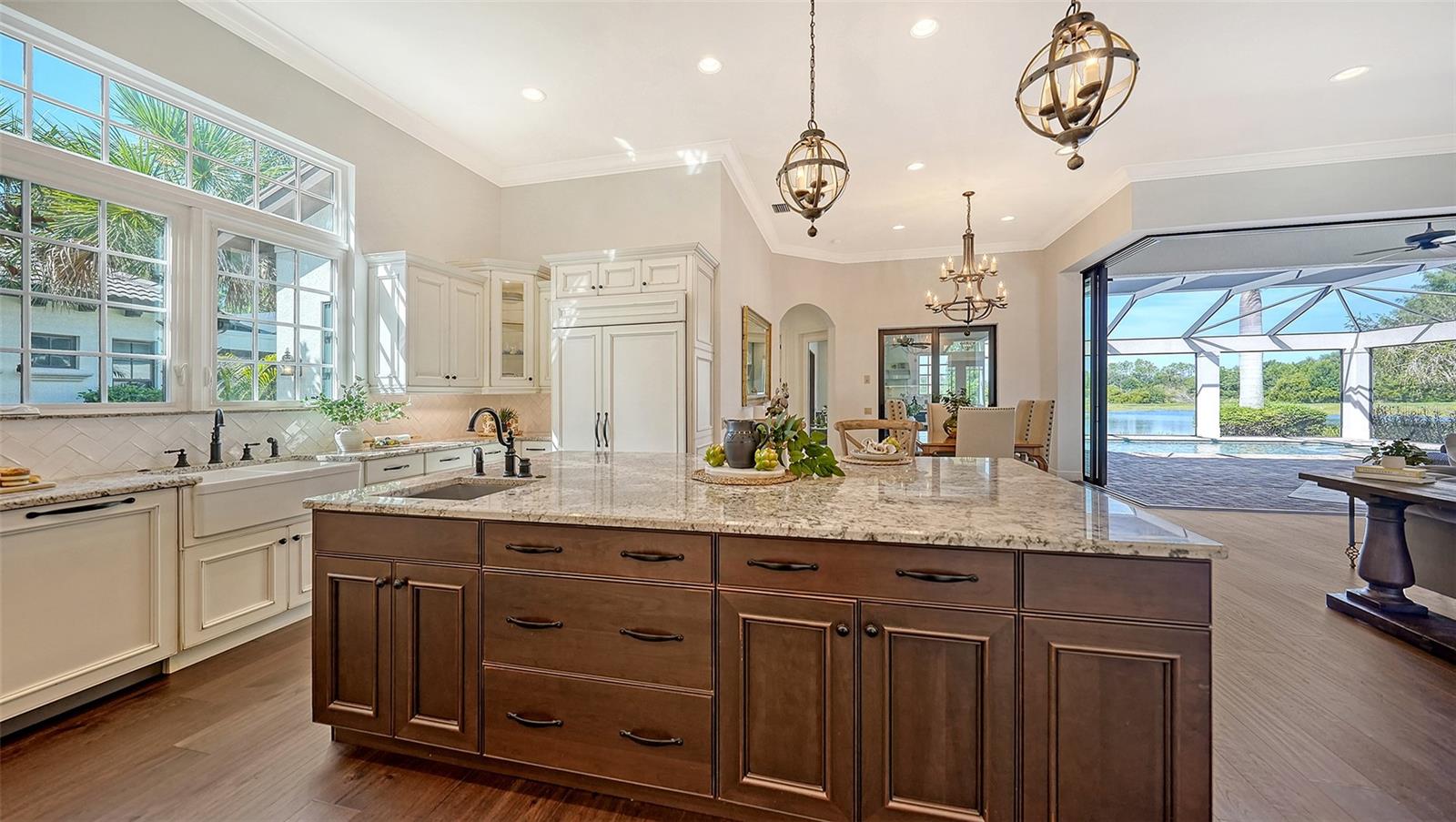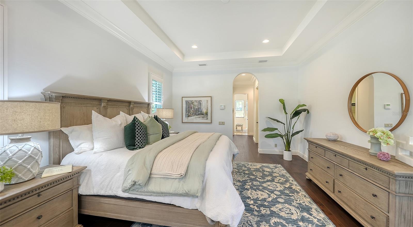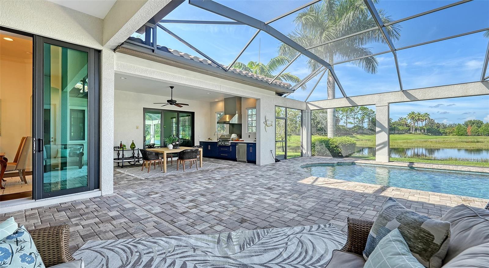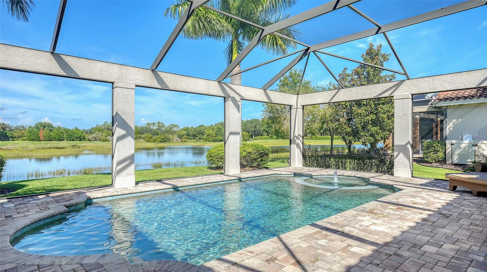 Privately set within the exclusive Lake Club and masterfully built by John Cannon Homes, this meticulously crafted Spanish Revival style home seamlessly blends timeless elegance with modern comfort. Boasting three bedrooms and three bathrooms, the residence exudes a warm ambiance accentuated by the rich allure of wood floors that flow through the main living areas. The heart of the home lies in the country-style kitchen with Wolf and Subzero appliances, farm sink and large center island. Primary bedroom is a serene retreat featuring tray ceiling, sitting area, plantation shutters, glass door access to lanai, two spacious walk-in closets, en suite bathroom with oversized frameless glass double entry walk-in shower, double vanities, private water closet, and linen closet. Two guest rooms are each en suite, offer walk-in closets, and have slider access to a shared private courtyard. Beyond the interiors, an inviting outdoor oasis awaits, featuring a brand new outdoor kitchen (2024) for alfresco dining, a refreshing saltwater pool and spa, all set against the backdrop of a serene lake and picturesque preserve. The home's location on a tranquil cul-de-sac ensures privacy, complemented by a charming exterior that captures the essence of Spanish Mission architecture. Highlights of this magnificent residence include impact glass, saltwater pool and spa, volume ceilings, impressive office space with 13 ft. ceiling, bonus room, solid core doors, crown moldings, and much more. Within the Lake Club's gated community, residents are treated to a wealth of amenities including a grand clubhouse, resort-style pools, fitness center, tennis courts, walking trails, and a calendar full of social activities, creating a lifestyle that is as luxurious as it is vibrant. In this exquisite residence, you'll discover the epitome of Florida living, where elegance and comfort merge seamlessly with the allure of The Lake Club's resort-style amenities. Lakewood Ranch is the best-selling multi-generational community in the USA near world-class dining, shopping, beaches, and A+ schools.