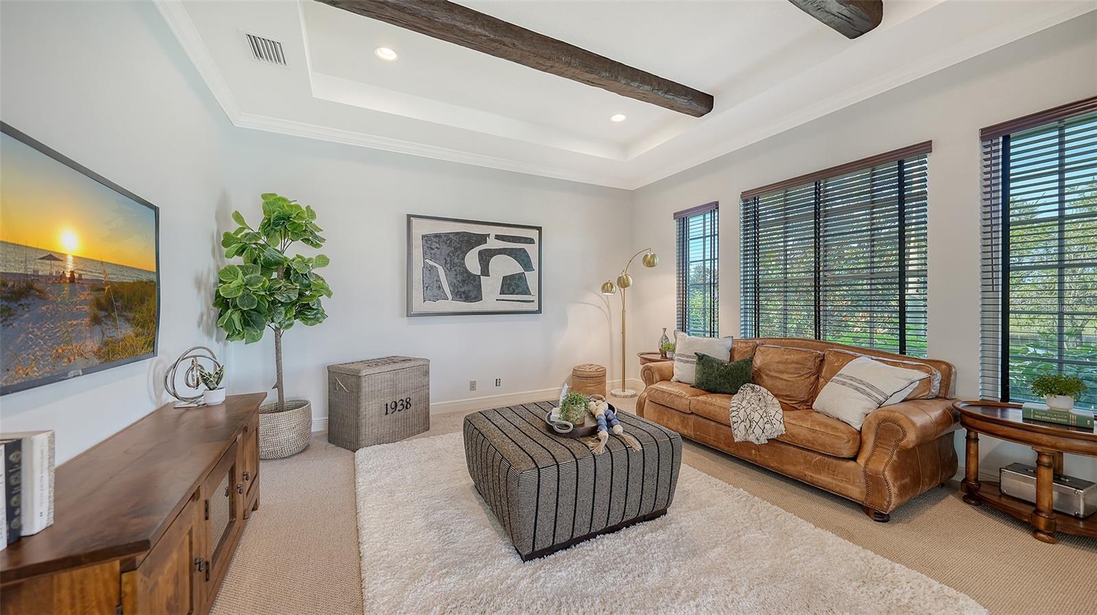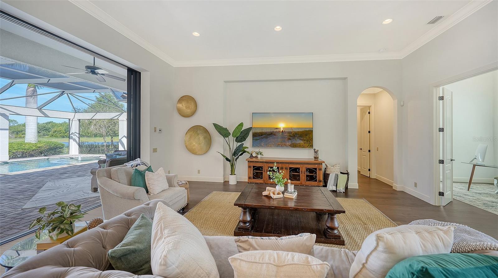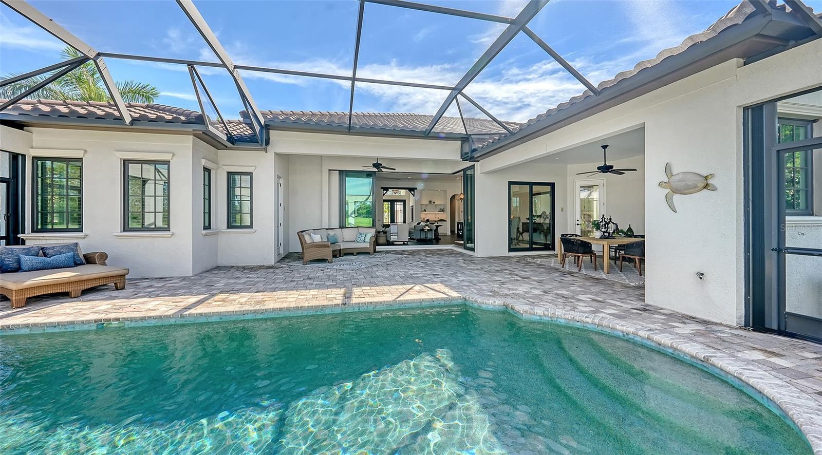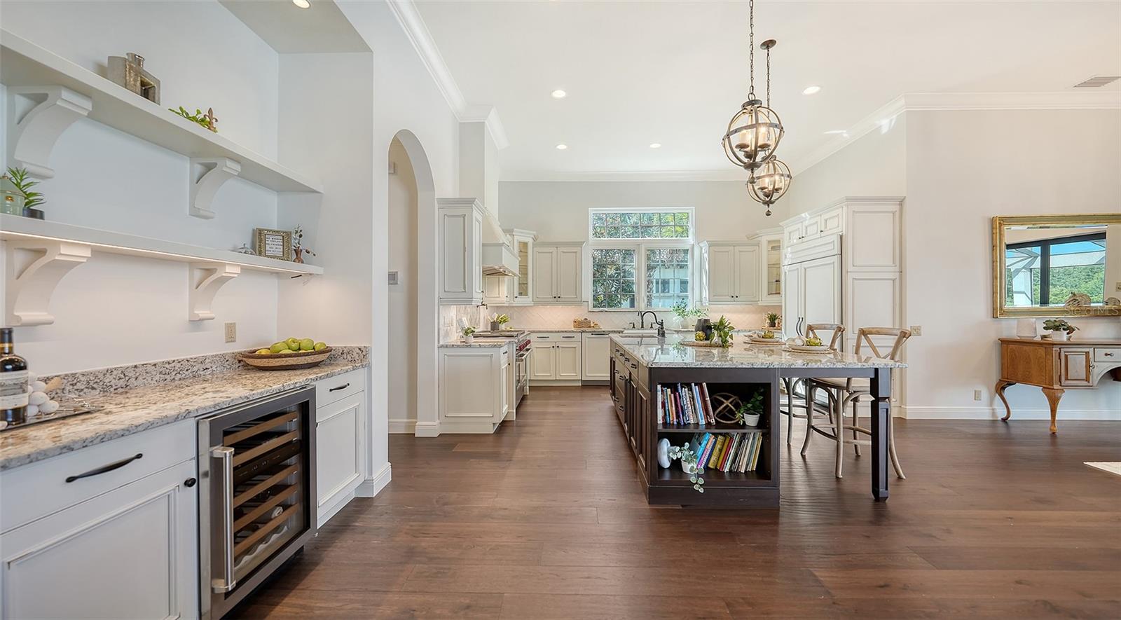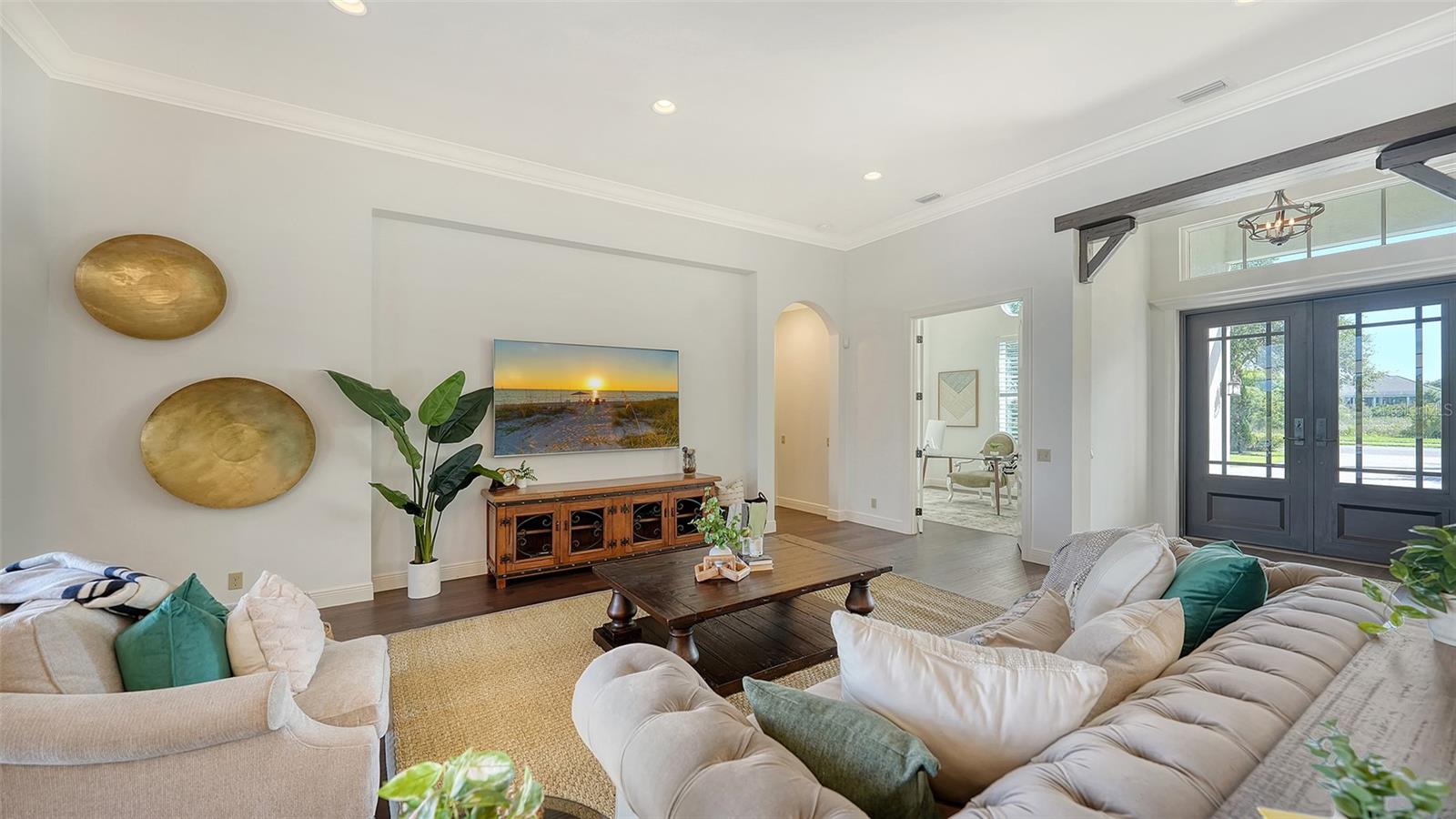 Privately set within the exclusive Lake Club and masterfully built by John Cannon Homes, this meticulously crafted Spanish Revival style home seamlessly blends timeless elegance with modern comfort. Boasting three bedrooms and three bathrooms, the residence exudes a warm ambiance accentuated by the rich allure of wood floors that flow through the main living areas. The heart of the home lies in the country-style kitchen with Wolf and Subzero appliances, farm sink and large center island. Primary bedroom is a serene retreat featuring tray ceiling, sitting area, plantation shutters, glass door access to lanai, two spacious walk-in closets, en suite bathroom with oversized frameless glass double entry walk-in shower, double vanities, private water closet, and linen closet. Two guest rooms are each en suite, offer walk-in closets, and have slider access to a shared private courtyard. Beyond the interiors, an inviting outdoor oasis awaits, featuring a brand new outdoor kitchen (2024) for alfresco dining, a refreshing saltwater pool and spa, all set against the backdrop of a serene lake and picturesque preserve. The home's location on a tranquil cul-de-sac ensures privacy, complemented by a charming exterior that captures the essence of Spanish Mission architecture. Highlights of this magnificent residence include impact glass, saltwater pool and spa, volume ceilings, impressive office space with 13 ft. ceiling, bonus room, solid core doors, crown moldings, and much more. Within the Lake Club's gated community, residents are treated to a wealth of amenities including a grand clubhouse, resort-style pools, fitness center, tennis courts, walking trails, and a calendar full of social activities, creating a lifestyle that is as luxurious as it is vibrant. In this exquisite residence, you'll discover the epitome of Florida living, where elegance and comfort merge seamlessly with the allure of The Lake Club's resort-style amenities. Lakewood Ranch is the best-selling multi-generational community in the USA near world-class dining, shopping, beaches, and A+ schools.