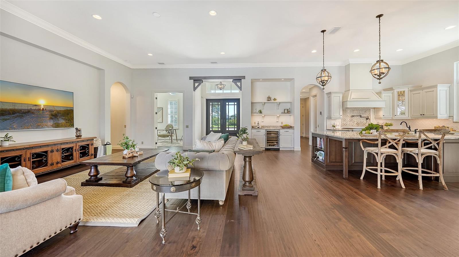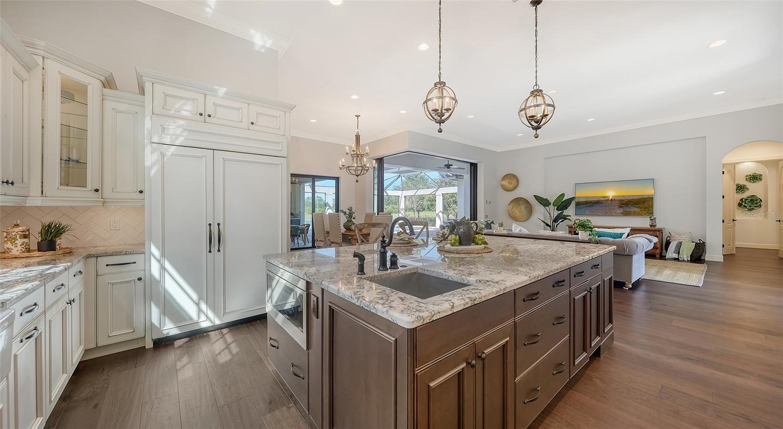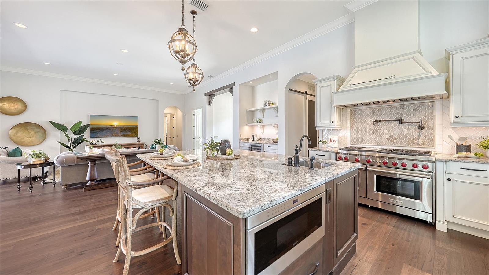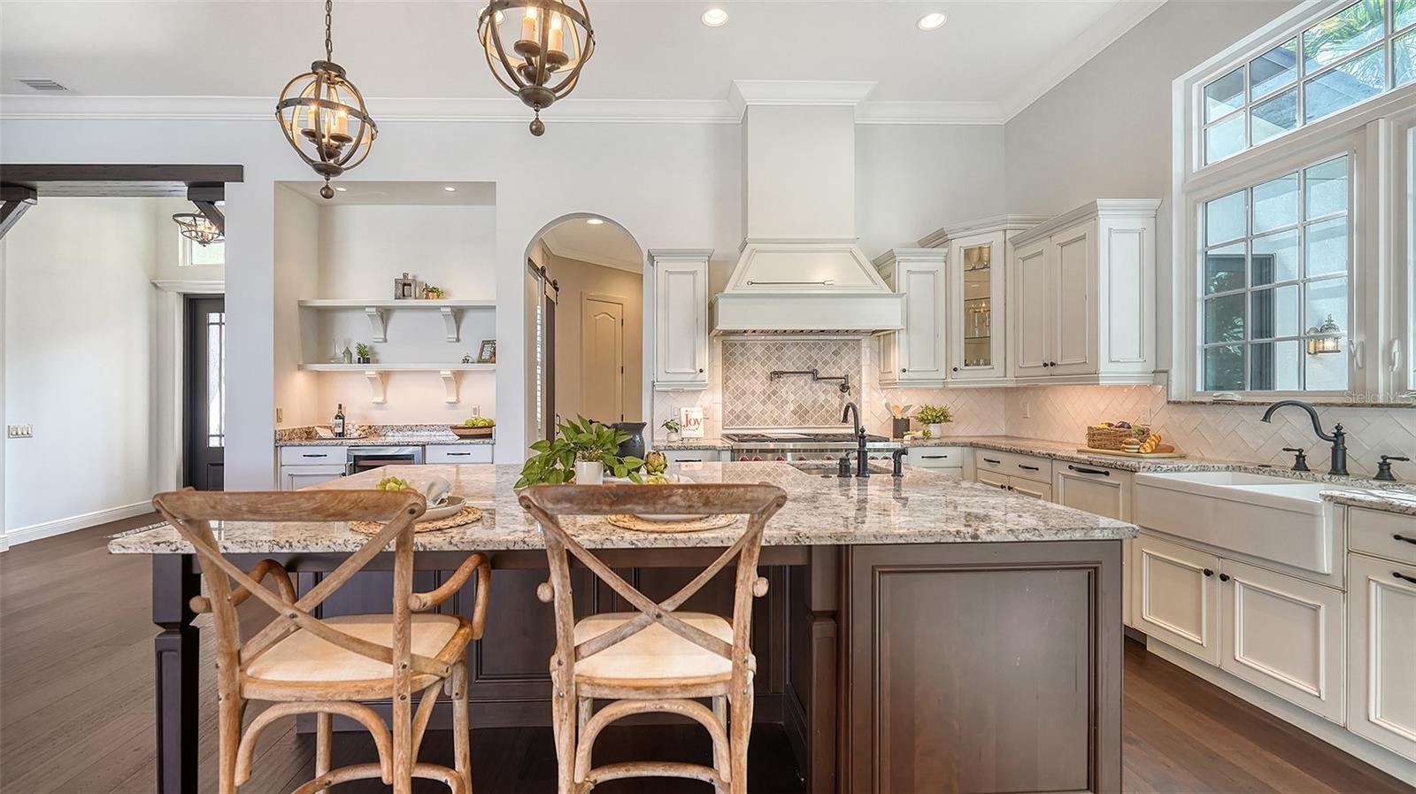 Privately set within the exclusive Lake Club and masterfully built by John Cannon Homes, this meticulously crafted Spanish Revival style home seamlessly blends timeless elegance with modern comfort. Boasting three bedrooms and three bathrooms, the residence exudes a warm ambiance accentuated by the rich allure of wood floors that flow through the main living areas. The heart of the home lies in the country-style kitchen with Wolf and Subzero appliances, farm sink and large center island. Primary bedroom is a serene retreat featuring tray ceiling, sitting area, plantation shutters, glass door access to lanai, two spacious walk-in closets, en suite bathroom with oversized frameless glass double entry walk-in shower, double vanities, private water closet, and linen closet. Two guest rooms are each en suite, offer walk-in closets, and have slider access to a shared private courtyard. Beyond the interiors, an inviting outdoor oasis awaits, featuring a brand new outdoor kitchen (2024) for alfresco dining, a refreshing saltwater pool and spa, all set against the backdrop of a serene lake and picturesque preserve. The home's location on a tranquil cul-de-sac ensures privacy, complemented by a charming exterior that captures the essence of Spanish Mission architecture. Highlights of this magnificent residence include impact glass, saltwater pool and spa, volume ceilings, impressive office space with 13 ft. ceiling, bonus room, solid core doors, crown moldings, and much more. Within the Lake Club's gated community, residents are treated to a wealth of amenities including a grand clubhouse, resort-style pools, fitness center, tennis courts, walking trails, and a calendar full of social activities, creating a lifestyle that is as luxurious as it is vibrant. In this exquisite residence, you'll discover the epitome of Florida living, where elegance and comfort merge seamlessly with the allure of The Lake Club's resort-style amenities. Lakewood Ranch is the best-selling multi-generational community in the USA near world-class dining, shopping, beaches, and A+ schools.