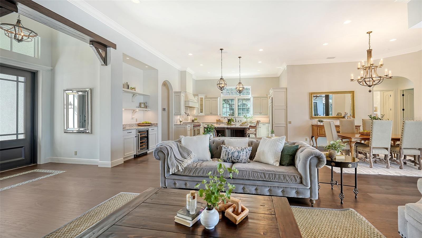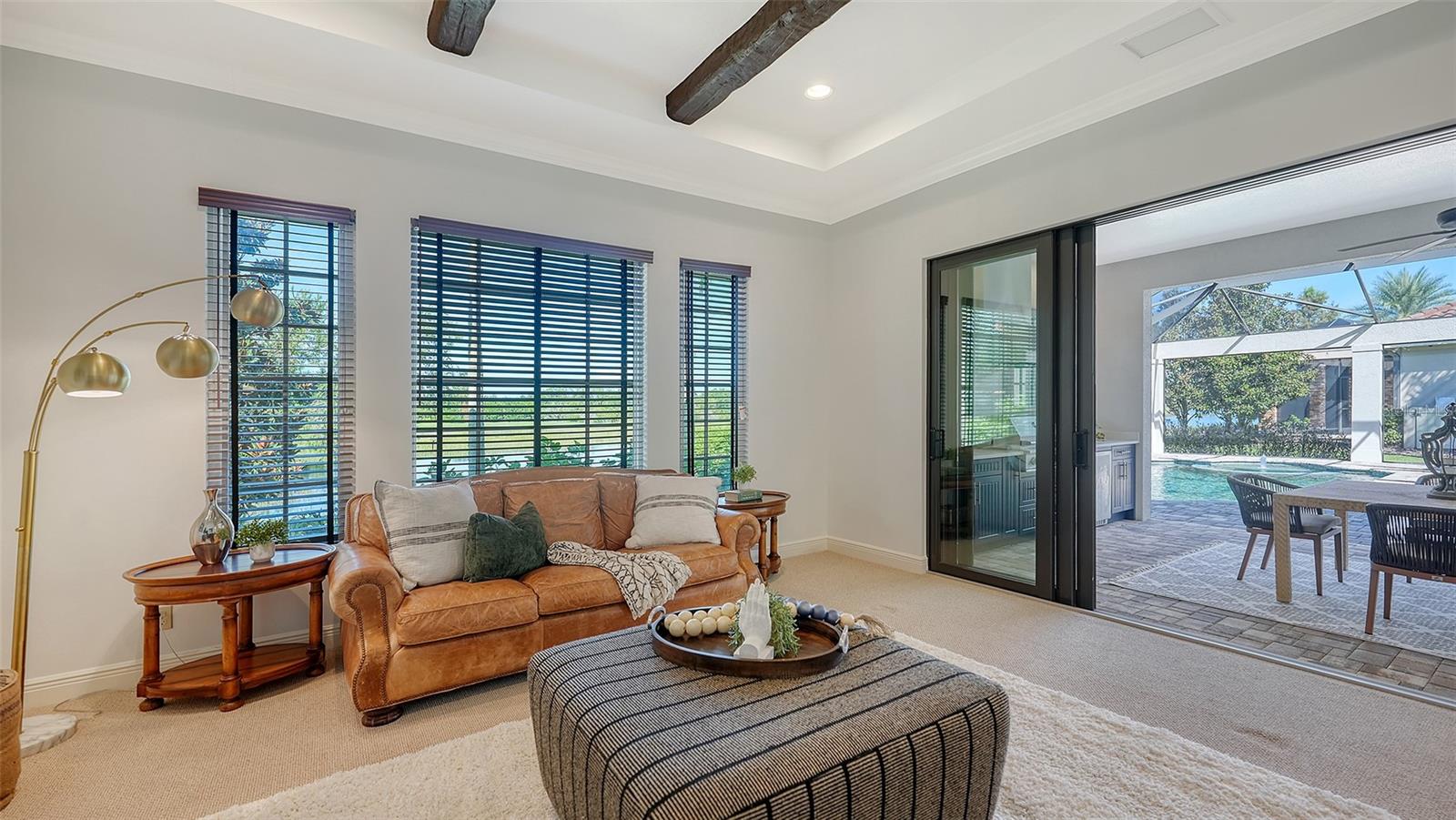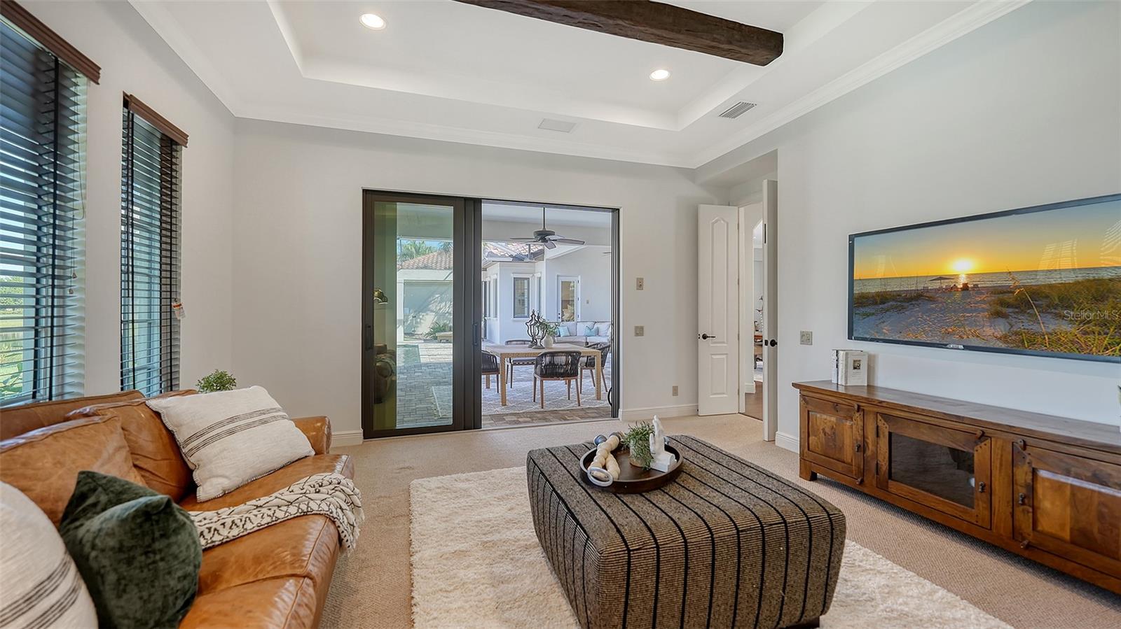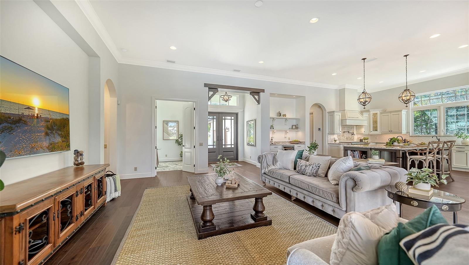 Privately set within the exclusive Lake Club and masterfully built by John Cannon Homes, this meticulously crafted Spanish Revival style home seamlessly blends timeless elegance with modern comfort. Boasting three bedrooms and three bathrooms, the residence exudes a warm ambiance accentuated by the rich allure of wood floors that flow through the main living areas. The heart of the home lies in the country-style kitchen with Wolf and Subzero appliances, farm sink and large center island. Primary bedroom is a serene retreat featuring tray ceiling, sitting area, plantation shutters, glass door access to lanai, two spacious walk-in closets, en suite bathroom with oversized frameless glass double entry walk-in shower, double vanities, private water closet, and linen closet. Two guest rooms are each en suite, offer walk-in closets, and have slider access to a shared private courtyard. Beyond the interiors, an inviting outdoor oasis awaits, featuring a brand new outdoor kitchen (2024) for alfresco dining, a refreshing saltwater pool and spa, all set against the backdrop of a serene lake and picturesque preserve. The home's location on a tranquil cul-de-sac ensures privacy, complemented by a charming exterior that captures the essence of Spanish Mission architecture. Highlights of this magnificent residence include impact glass, saltwater pool and spa, volume ceilings, impressive office space with 13 ft. ceiling, bonus room, solid core doors, crown moldings, and much more. Within the Lake Club's gated community, residents are treated to a wealth of amenities including a grand clubhouse, resort-style pools, fitness center, tennis courts, walking trails, and a calendar full of social activities, creating a lifestyle that is as luxurious as it is vibrant. In this exquisite residence, you'll discover the epitome of Florida living, where elegance and comfort merge seamlessly with the allure of The Lake Club's resort-style amenities. Lakewood Ranch is the best-selling multi-generational community in the USA near world-class dining, shopping, beaches, and A+ schools.