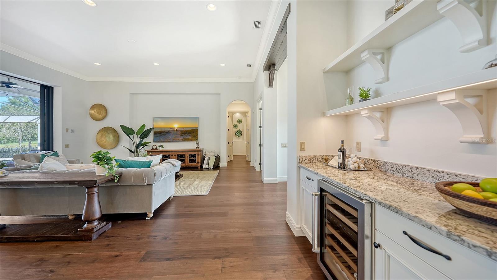Appliances: Dishwasher, Disposal, Dryer, Gas Water Heater, Microwave, Range Hood, Refrigerator, Washer, Wine Refrigerator