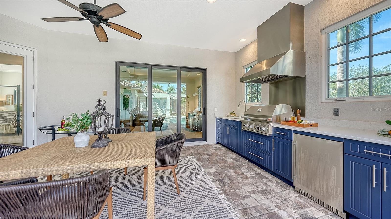 Exterior: Irrigation System, Lighting, Outdoor Kitchen, Private Mailbox, Sliding Doors