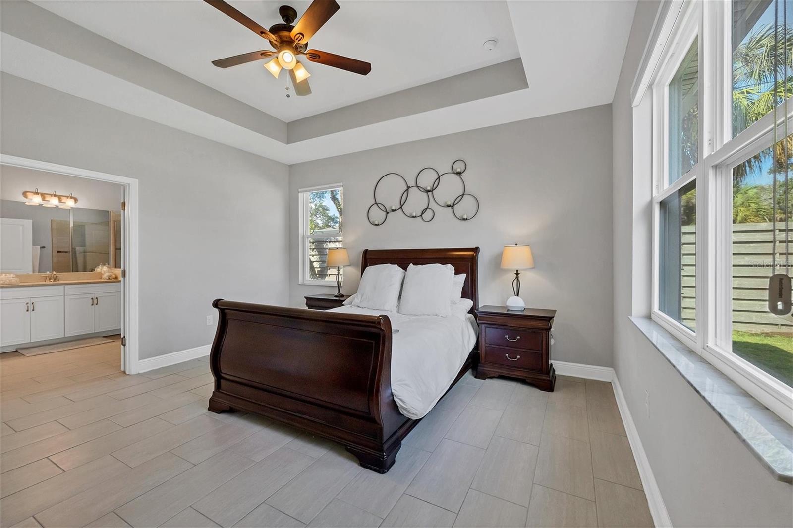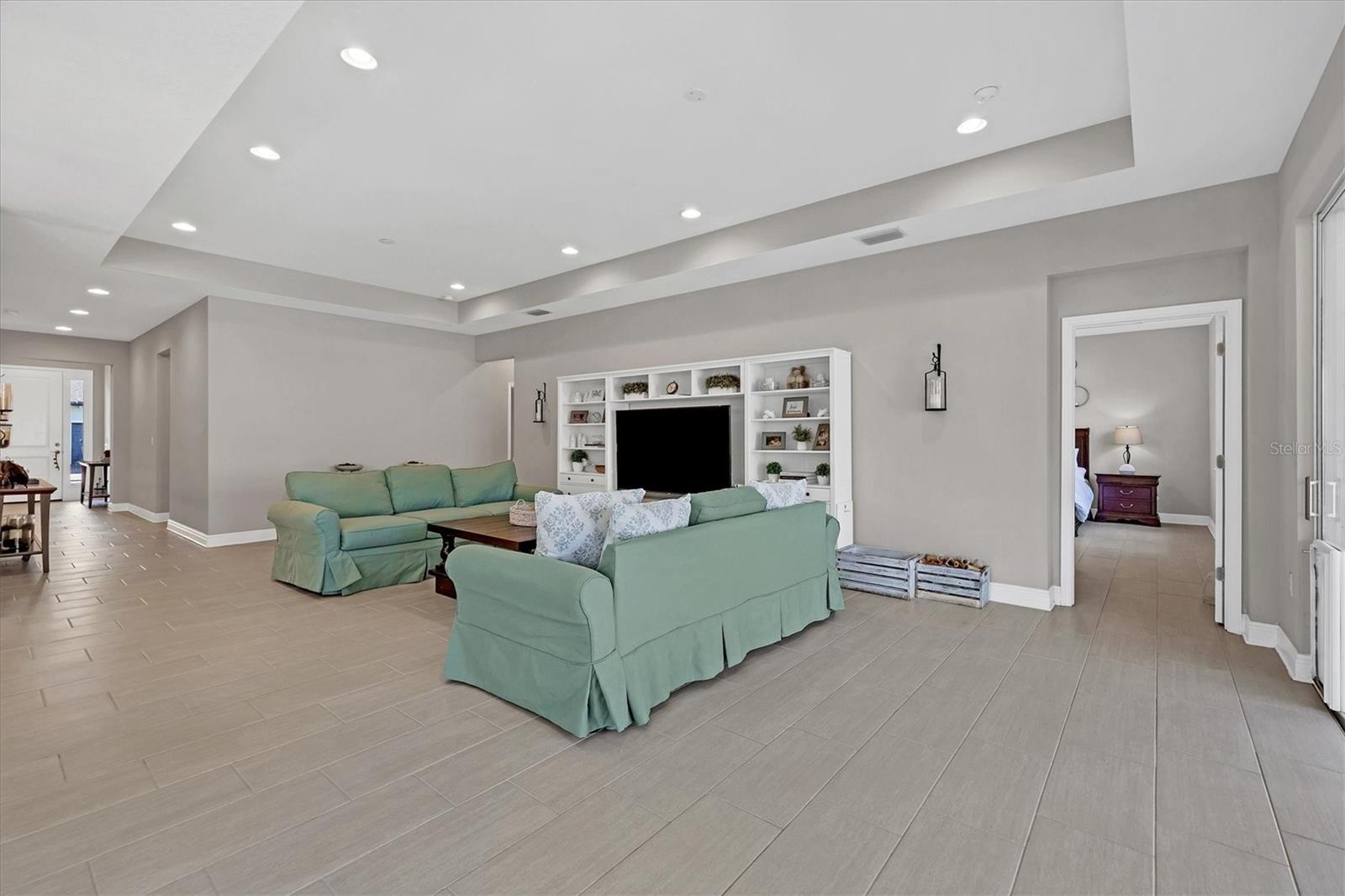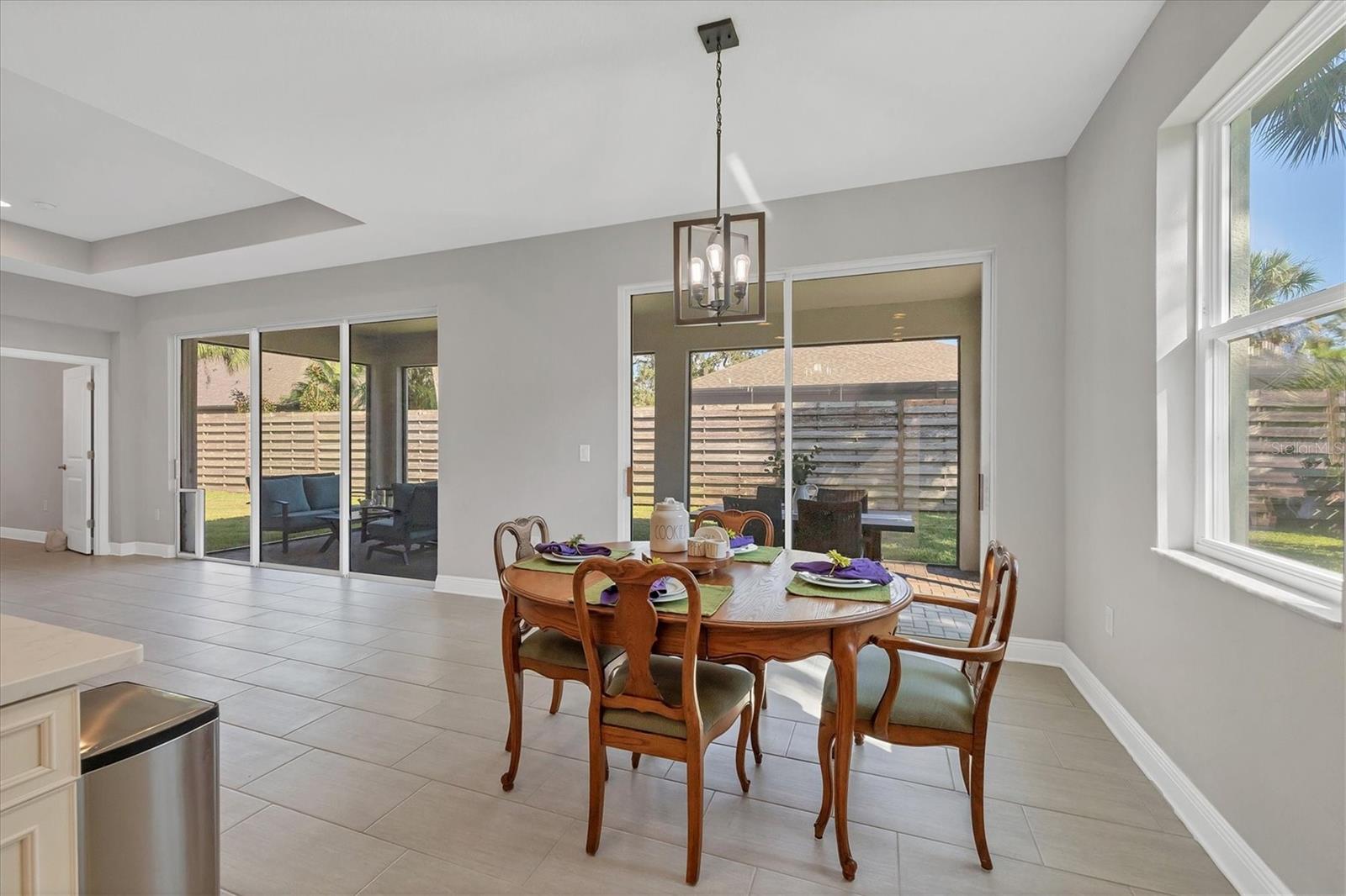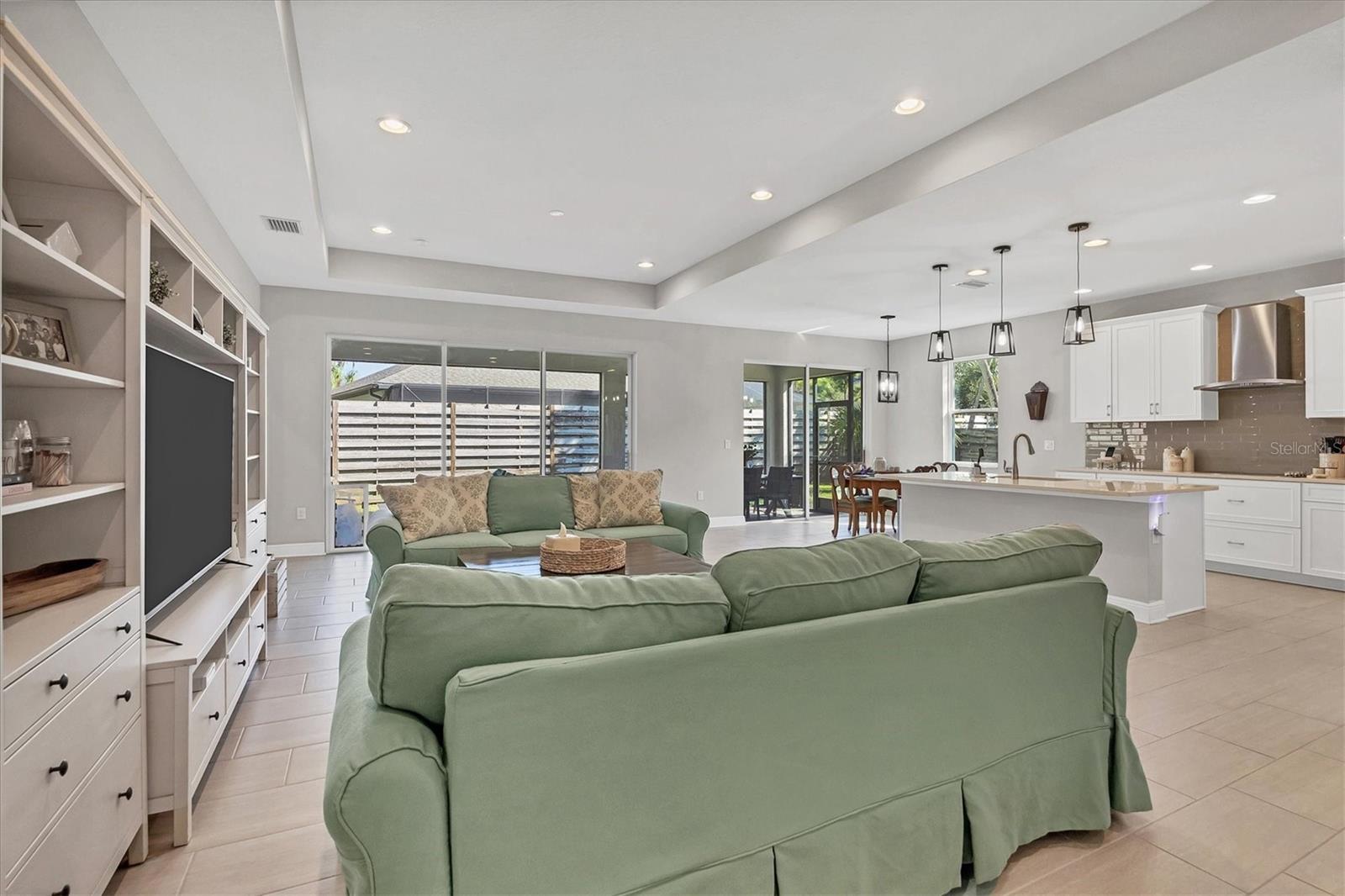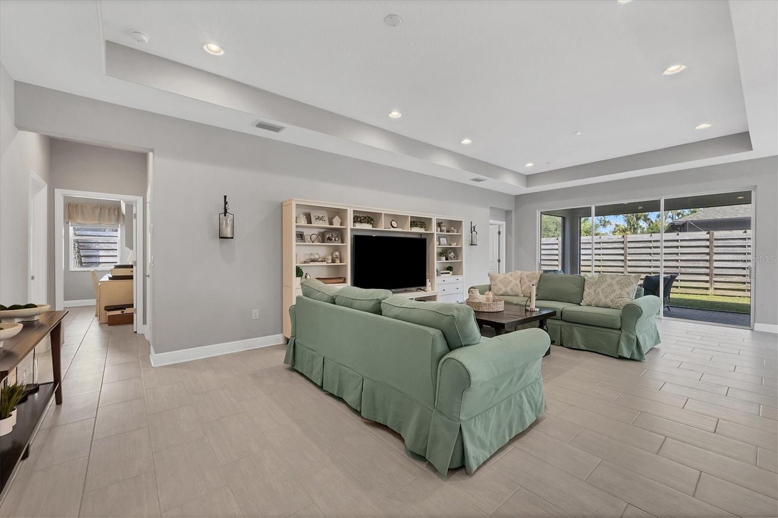 Discover your own private sanctuary in this highly sought-after community in Sarasota, Sylvan Lea. Nestled amongst mature vegetation and beautiful oak trees the neighborhood creates a serene and peaceful atmosphere for homeowners and visitors alike. Built in 2018, this exceptional 4-bedroom home features an open-concept layout, ideal for both everyday living and entertaining. Upon entering the residence, you will find two bedrooms and a full bath, providing an ideal area for guests to have their own personal space for relaxation. The beautiful tile flooring flows throughout the home leading to the spacious Great Room featuring a tray ceiling design creating a light-filled and inviting atmosphere. This spacious layout is expansive and seamlessly connects the living, kitchen, and dining areas. Equipped with quartz countertops, exquisite cabinetry, and high-quality stainless-steel appliances, the kitchen is ready to handle your culinary adventures. Located on the opposite corner of the home, the private owner's suite is a true retreat featuring a spacious walk-in closet, luxurious bathroom boasting a walk-in shower area, and a dual vanity with quartz countertop. The outdoor living space features a fully fenced yard and an extended screened lanai allowing you to bask in the peaceful ambiance of the outdoors, truly defining the epitome of the Florida lifestyle. The 3-car garage is spacious providing plenty of room for your vehicles, gym equipment and outdoor toys. You will never have to worry about storage space again with built-in shelving in the garage and closet space throughout. The remaining 15-Year Limited Warranty from the builder is transferrable to the new owner, ensuring confidence for years to come. Sylvan Lea offers the perfect blend of seclusion and convenience, with easy access to world-class beaches, top-rated schools, and University Town Center. Endless opportunities for outdoor activities and entertainment await. Schedule a private showing today and discover the perfect place to call home.