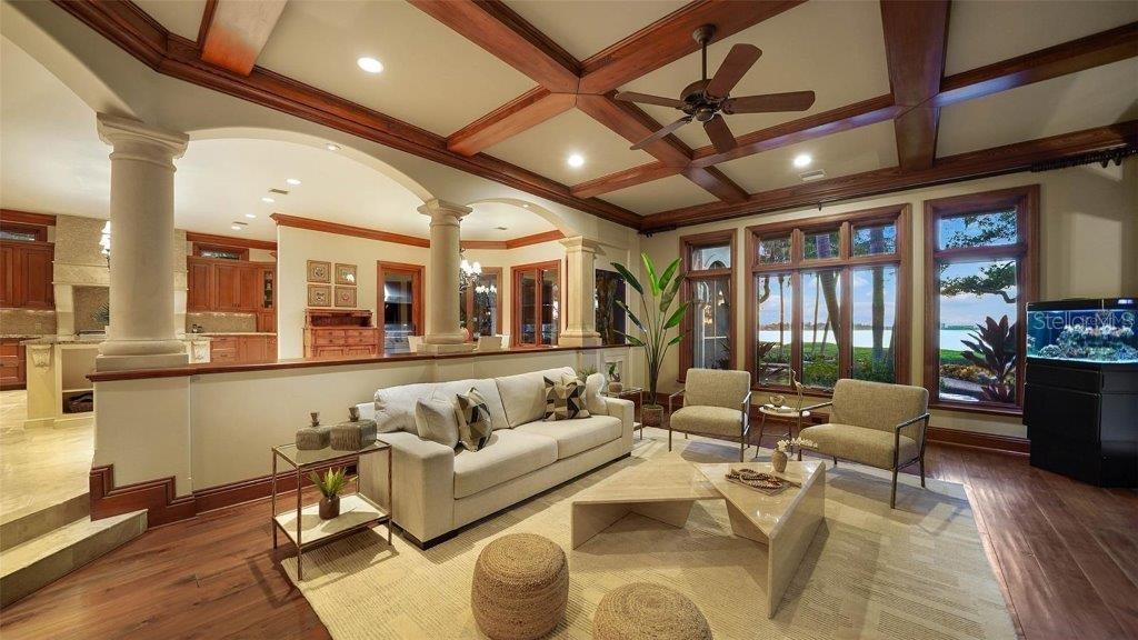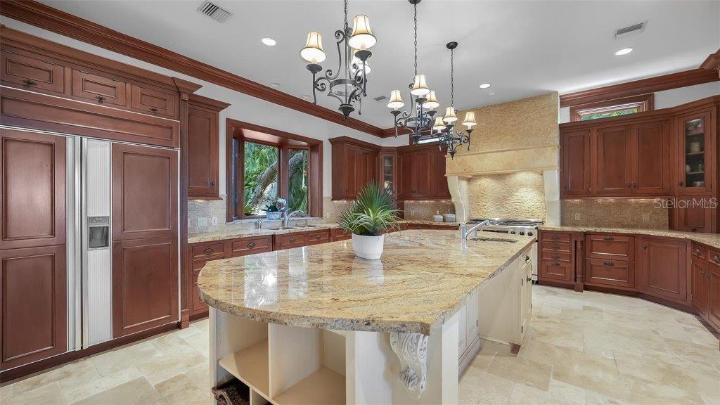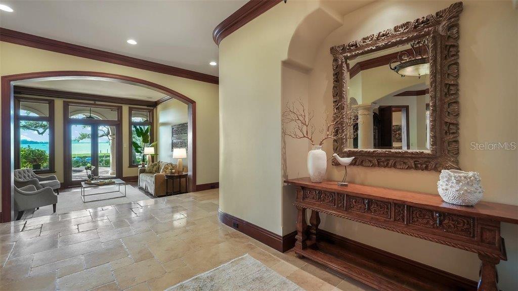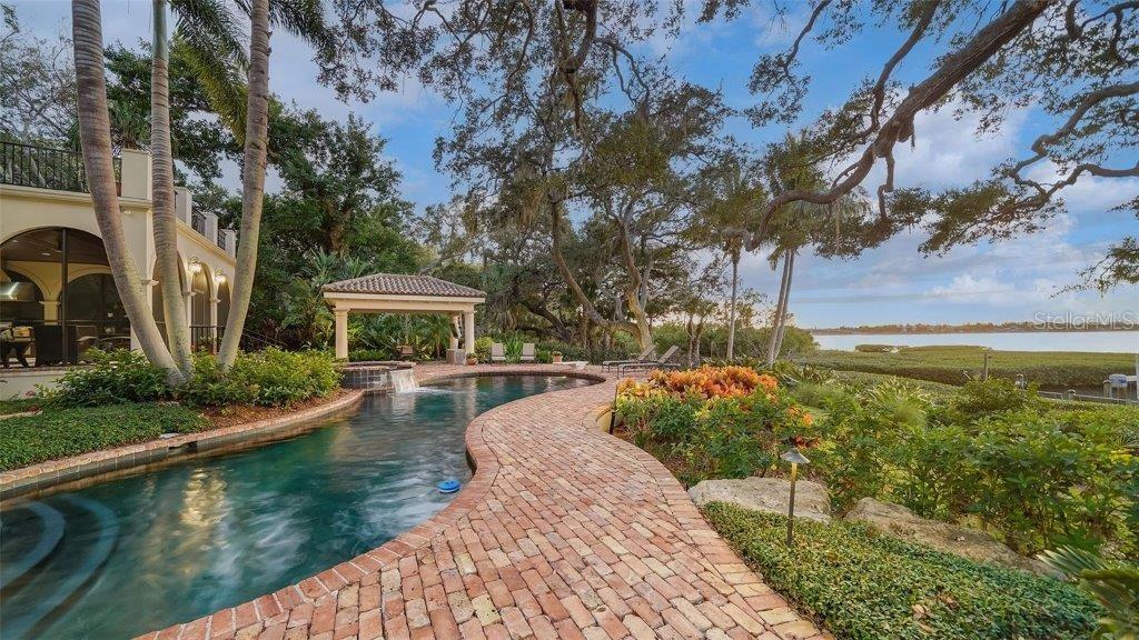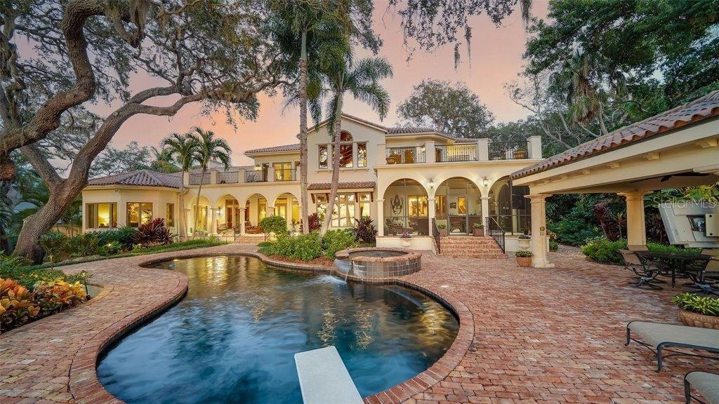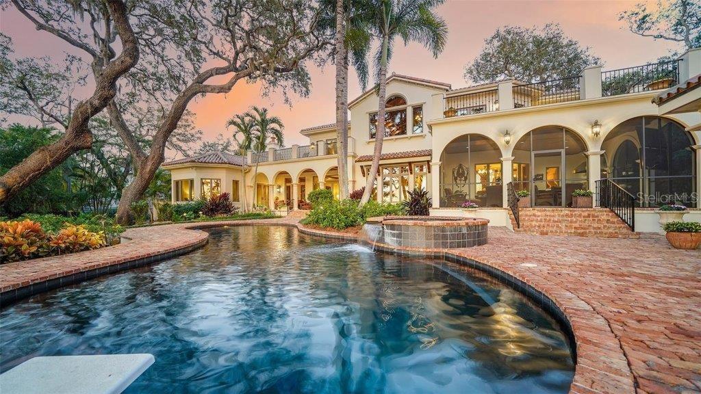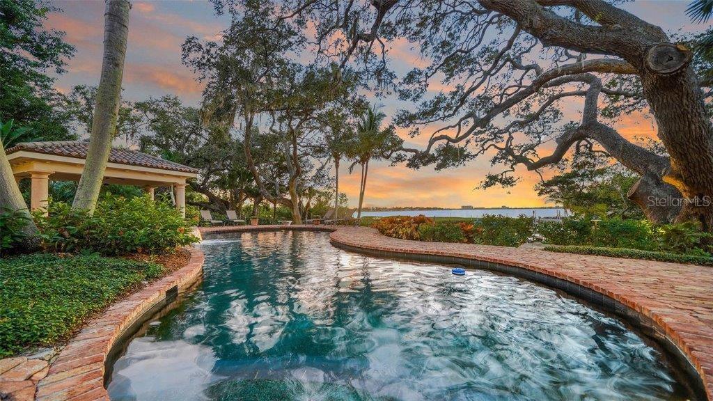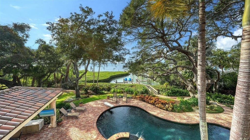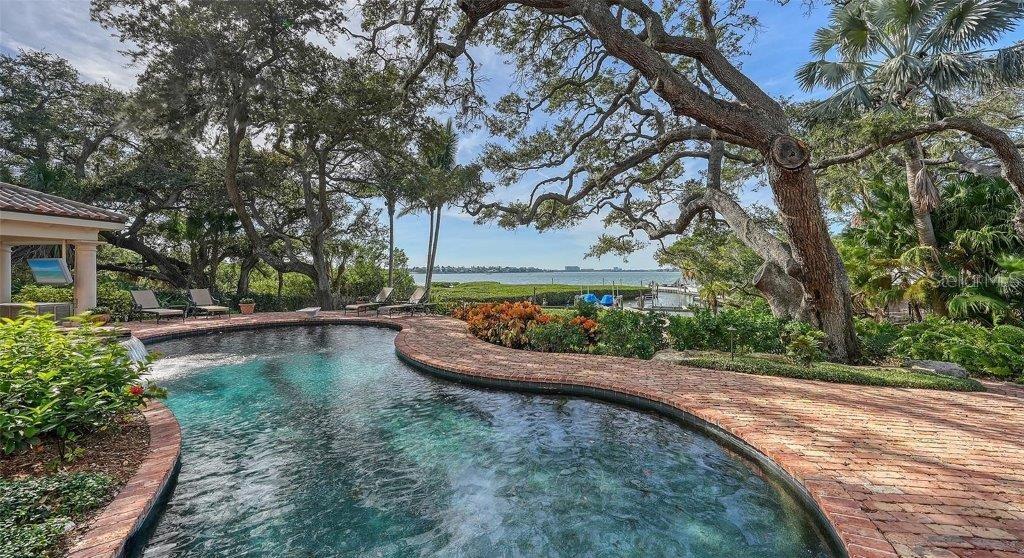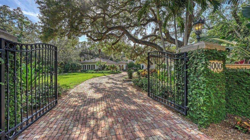 Owner has reduced price to a point creating an exciting opportunity to own one of Sarasota's great estates. Discover the perfect blend of elegance and privacy on this 1.6-acre estate nestled within Cherokee Park, one of the most sought-after mainland neighborhoods in Sarasota. Tucked away on a small street at the end of Southwest Drive, this double lot estate is in a beautiful setting unlike any other property along the Bayfront. With its traditional architectural style and gated entry, this home offers a serene haven away from the world. An unprecedented secret lies at your rear doorstep--an extraordinary boat basin along the bay front, dredged to accommodate most any boat. For water enthusiasts, this is a dream come true with two boat lifts (10,000 lb. and 16,000 lb. capacities). Your sanctuary is set back from the shoreline, ensuring complete seclusion and uninterrupted peace as you revel in the tranquil surroundings. A masterpiece by design, this architectural gem was designed by the esteemed architect, Clifford Scholtz and brought to life by the renowned Rich Perrone of Perrone Construction. Every detail reflects their commitment to quality and craftsmanship. Step inside to a meticulously planned layout, featuring a great floor plan with an elaborate primary suite and exercise room located on the main level. For those who love to entertain, the party-scale media room is the ultimate experience complete with a bar and multiple TVs for the sports enthusiast. Five-bedroom suites await your personal touch. This home also includes a Mahogany wood paneled office, a formal dining room, and a captivating saltwater fish tank that serves as the focal point of the kitchen and breakfast room. Covered patios and loggias extend from the most major rooms, creating ideal space for relaxation and enjoyment. A detached oversized 3 car garage with a covered walkway to the main residence has excessive space for storage or workshop activity. Step into the expanded screened outdoor room, complete with double TVs and the largest Wolf outdoor gas grill available and a Subzero refrigerator. The Chicago brick flooring adds style and durability. The free form dream pool, paved in Chicago brick, is a haven for leisure and outdoor entertainment. Subdivide the lot for an additional building lot that has it's own private gated entry in place or use a portion of the expansive lotto build your guest house, tennis court, or pickleball court - the possibilities are endless. The home is equipped with a brand-new whole house generator. Specimen trees, lush landscaping, and ancient oaks frame the home, creating a stunning natural backdrop for your daily life. Your dream home awaits, a harmonious blend of luxury and practicality. Don't miss the opportunity to make it yours. Schedule your viewing today and step into a world of timeless elegance and exceptional living.