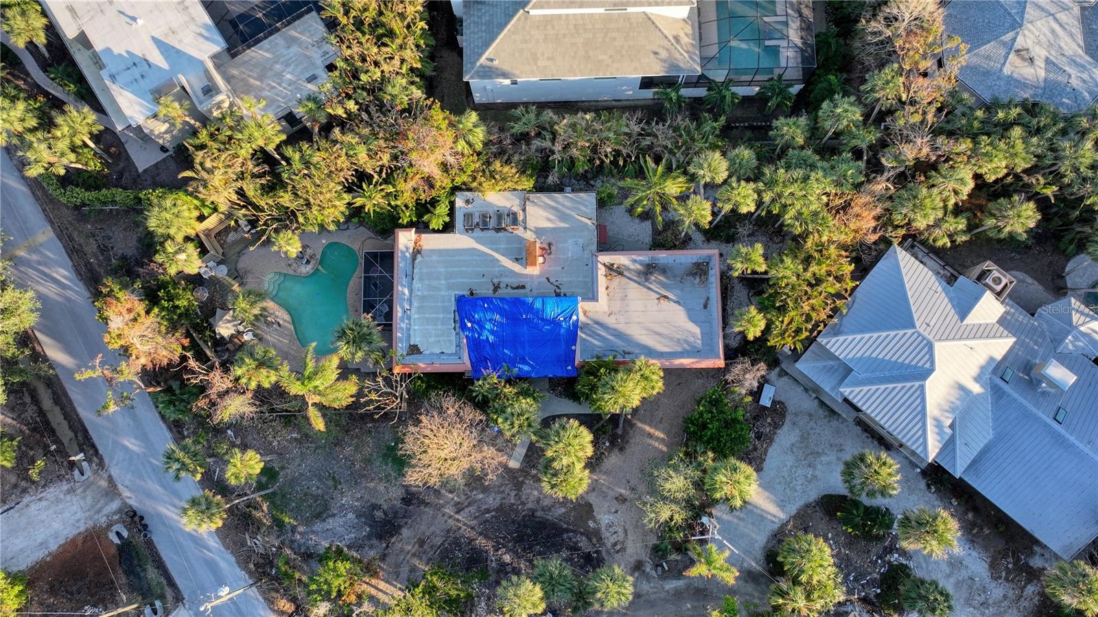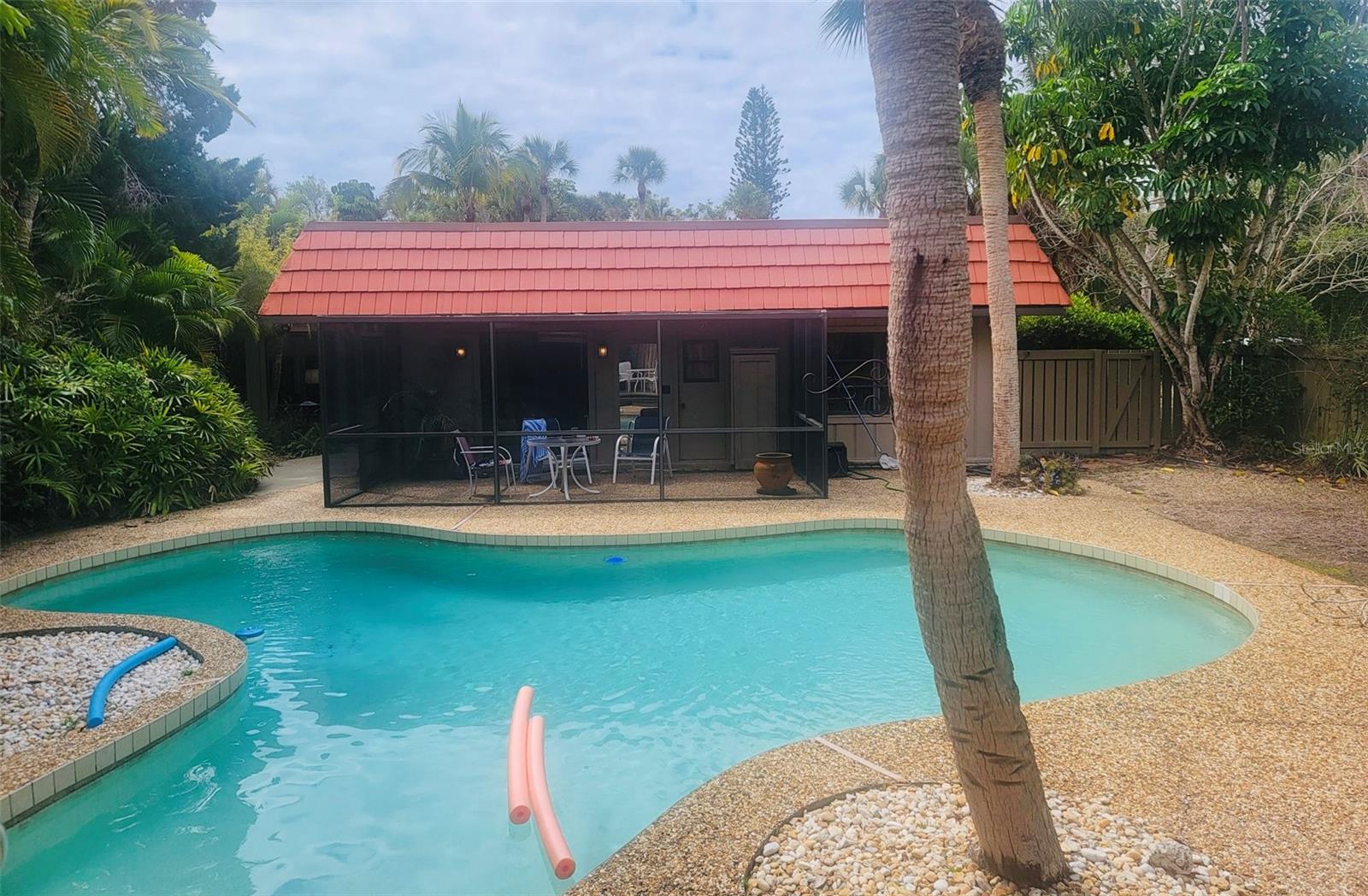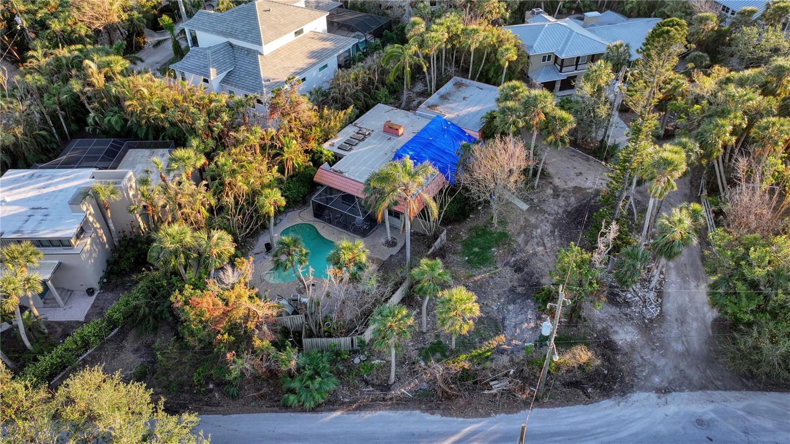 Welcome to PARADISE on Siesta Key! Build your majestic dream home on this expansive .42 acre corner lot amidst the multi-million dollar luxury homes in this coveted Sandy Hook 42 home beach community. A 3 minute walk to your own deeded private alluring beach on the Gulf of Mexico & also a very quick stroll through the canopied streets of Sandy Hook to Siesta Key Village. Home was flooded and fully Remediated after Helene. Tear down. Value is in the land. AS-IS. The spacious fenced in lovely fresh water pool and deck area aligned with mature beautiful palms was hardly effected by the storms. The private beach with tiki hut can be reserved for owners exclusive to hold weddings, receptions and entertain for private parties.Fishing, kayaking, paddle boarding, swimming, sunbathing and watching the dolphins and manatees play are just a few of the wonderful and memory filled activities one could partake in on this astoundingly beautiful powdery quartz Siesta Beach sand on the Gulf of Mexico. Come and check out this fantastic opportunity today to be able to reside in the prominent 34242.