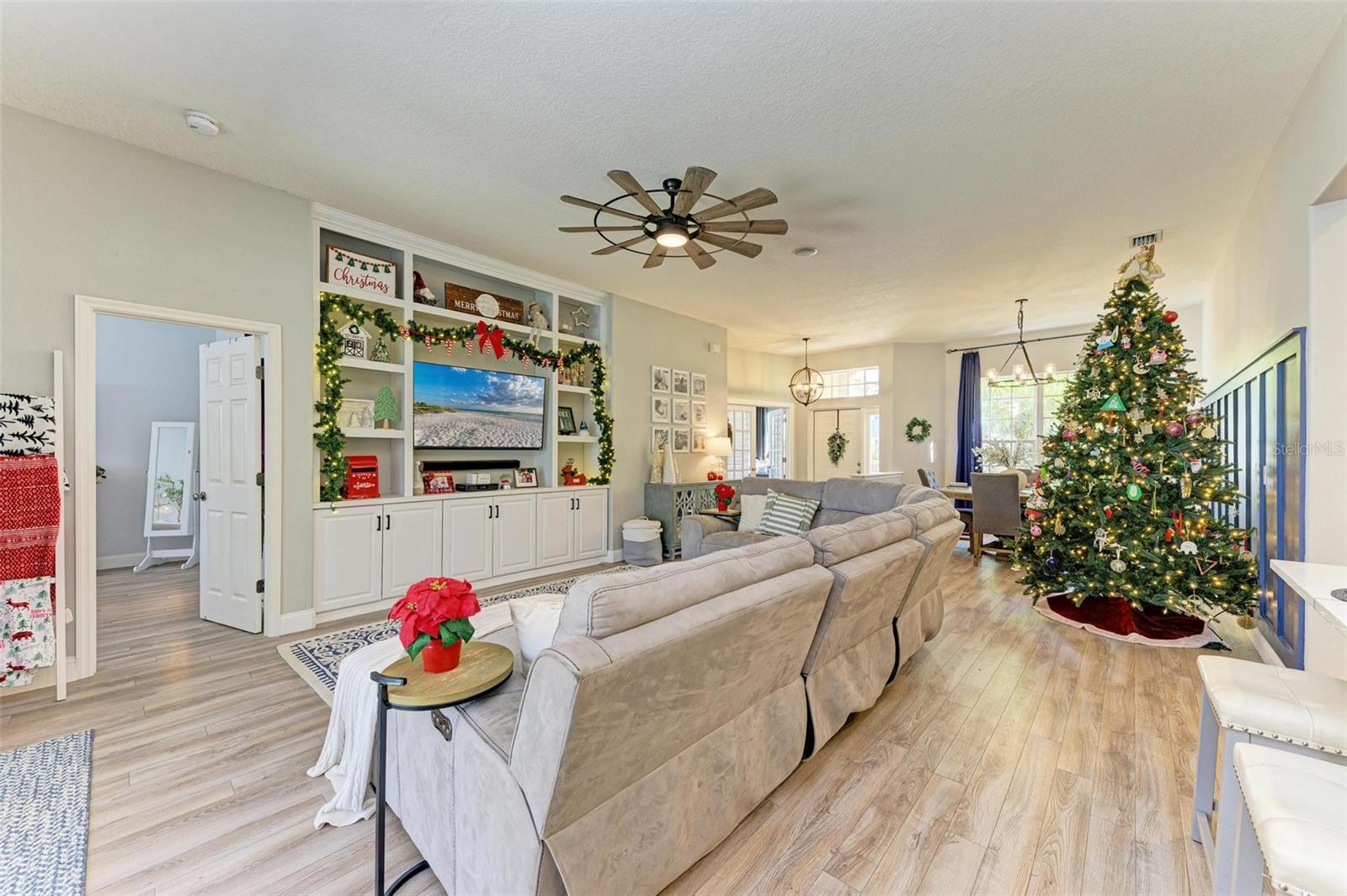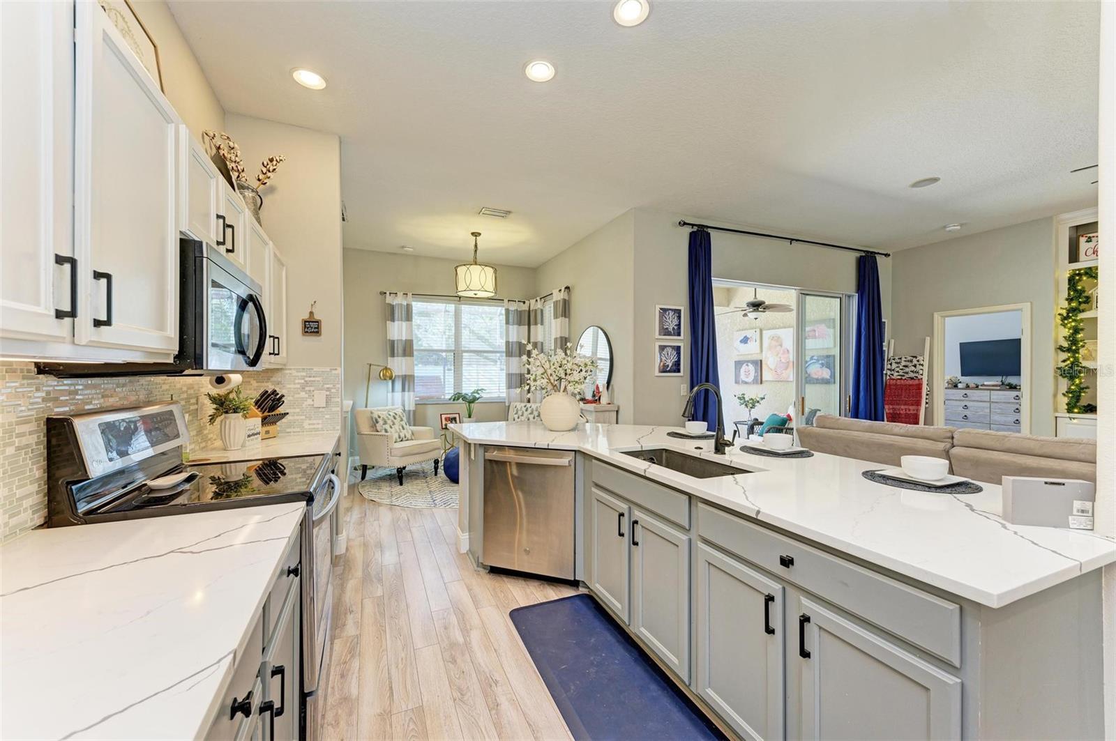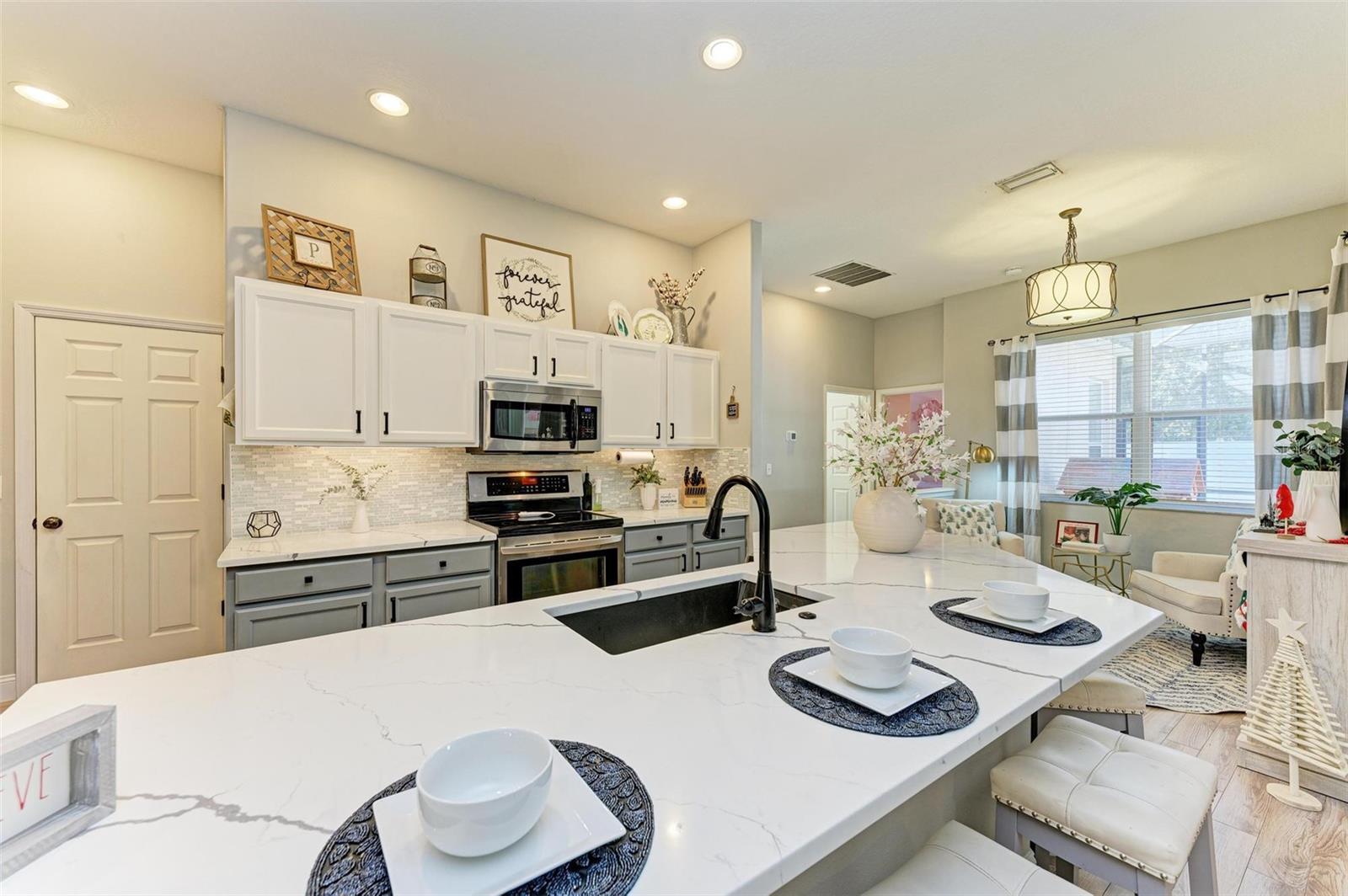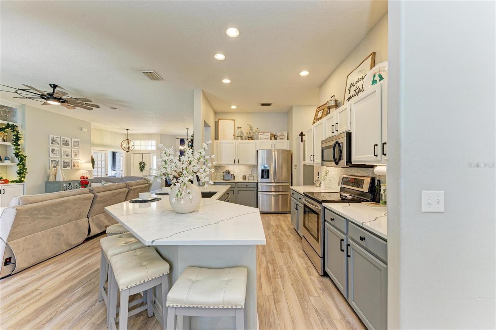 NEW ROOF 2025! Welcome to this stunning 4-bedroom, 2-bathroom home, conveniently located just 25 minutes from the beach, 15 minutes to University Town Center, and 20 minutes to downtown Sarasota, yet away from it all. This home combines charm, comfort, and functionality. You'll be captivated by the meticulously maintained landscaping and inviting curb appeal from the moment you arrive.Step inside to discover an open-concept living area adorned with abundant natural light, high ceilings, a custom entertainment center, and stylish finishes. The gourmet kitchen is a true showstopper, featuring quartz countertops, stainless steel appliances, a breakfast bar, and a cozy sitting area ideal for morning coffee. Adjacent to the kitchen and living room is the spacious dining room with massive windows and custom wall paneling, perfect for hosting gatherings.The spacious primary suite is a private retreat with a luxurious walk-in closet and an ensuite bathroom boasting dual vanities, a soaking tub, a walk-in shower, and elegant tile finishes.The extra bedrooms are spacious and can serve various purposes, such as guest accommodations, home offices, or playrooms.Outdoors, you'll find a screened lanai overlooking a fully fenced backyard, perfect for relaxing or entertaining under the Florida sun. The expansive yard provides ample space for activities, gardening, or even the addition of a pool. The community features a beautiful community pool and deluxe playground. Additional features include a NEW ROOF coming in 2025, a two-car garage, modern light fixtures, and premium flooring. Located just minutes from top-rated schools, shopping, dining, and recreation, this home truly has it all.SELLER MOTIVATED AND NEW ROOF COMING IN 2025! Don't miss this opportunity to own a beautifully upgraded home in an unbeatable location. Schedule your private showing today!