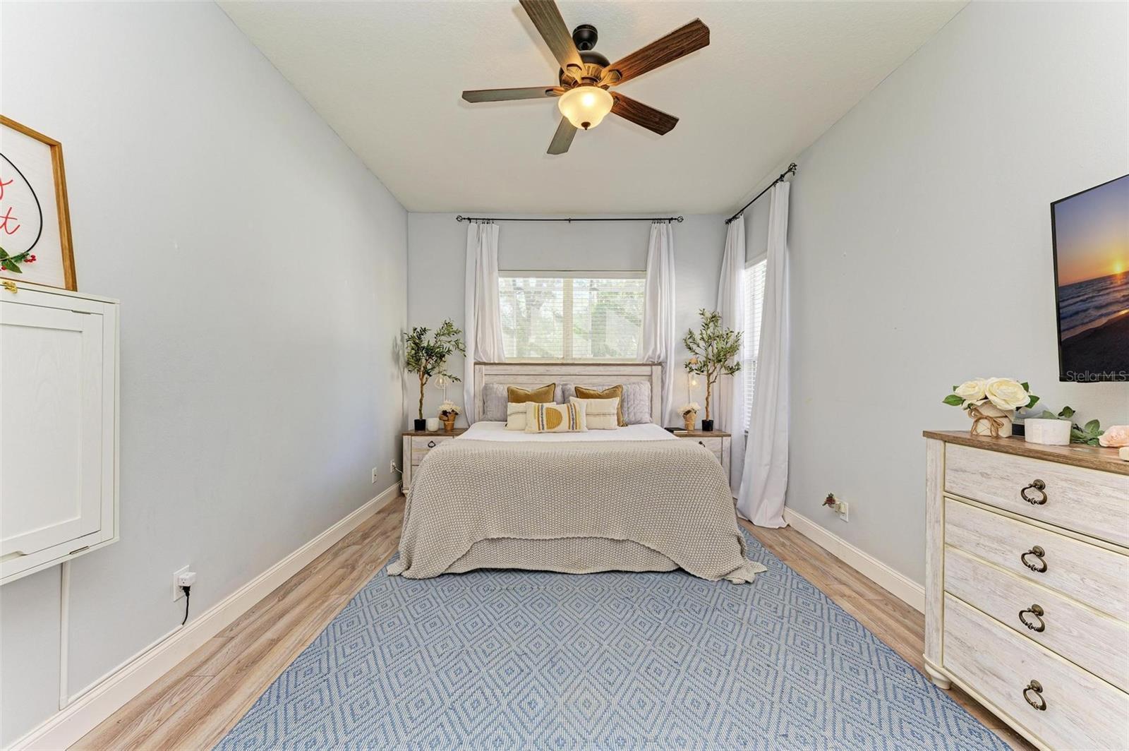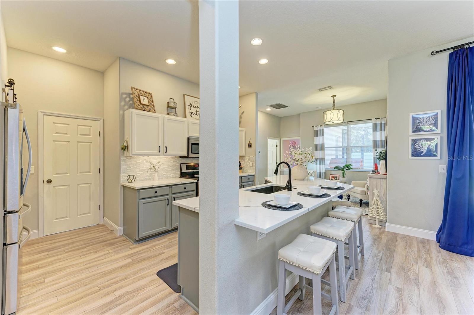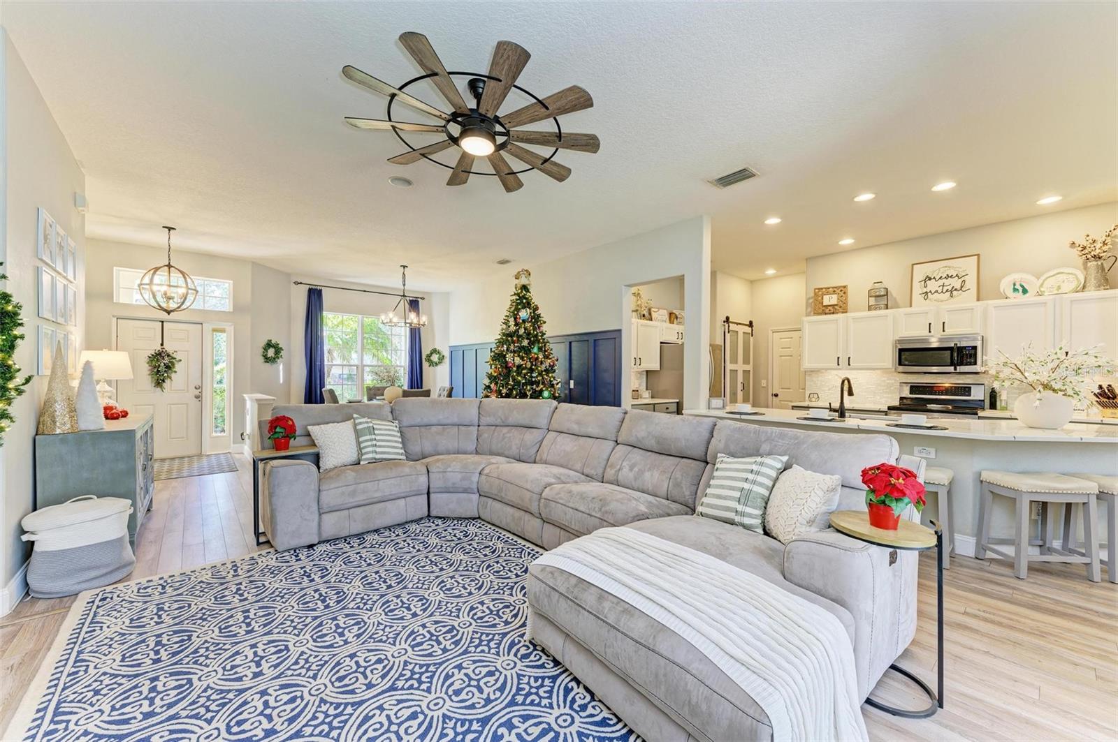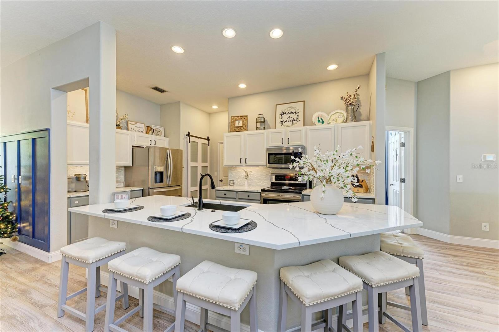 NEW ROOF 2025! Welcome to this stunning 4-bedroom, 2-bathroom home, conveniently located just 25 minutes from the beach, 15 minutes to University Town Center, and 20 minutes to downtown Sarasota, yet away from it all. This home combines charm, comfort, and functionality. You'll be captivated by the meticulously maintained landscaping and inviting curb appeal from the moment you arrive.Step inside to discover an open-concept living area adorned with abundant natural light, high ceilings, a custom entertainment center, and stylish finishes. The gourmet kitchen is a true showstopper, featuring quartz countertops, stainless steel appliances, a breakfast bar, and a cozy sitting area ideal for morning coffee. Adjacent to the kitchen and living room is the spacious dining room with massive windows and custom wall paneling, perfect for hosting gatherings.The spacious primary suite is a private retreat with a luxurious walk-in closet and an ensuite bathroom boasting dual vanities, a soaking tub, a walk-in shower, and elegant tile finishes.The extra bedrooms are spacious and can serve various purposes, such as guest accommodations, home offices, or playrooms.Outdoors, you'll find a screened lanai overlooking a fully fenced backyard, perfect for relaxing or entertaining under the Florida sun. The expansive yard provides ample space for activities, gardening, or even the addition of a pool. The community features a beautiful community pool and deluxe playground. Additional features include a NEW ROOF coming in 2025, a two-car garage, modern light fixtures, and premium flooring. Located just minutes from top-rated schools, shopping, dining, and recreation, this home truly has it all.SELLER MOTIVATED AND NEW ROOF COMING IN 2025! Don't miss this opportunity to own a beautifully upgraded home in an unbeatable location. Schedule your private showing today!