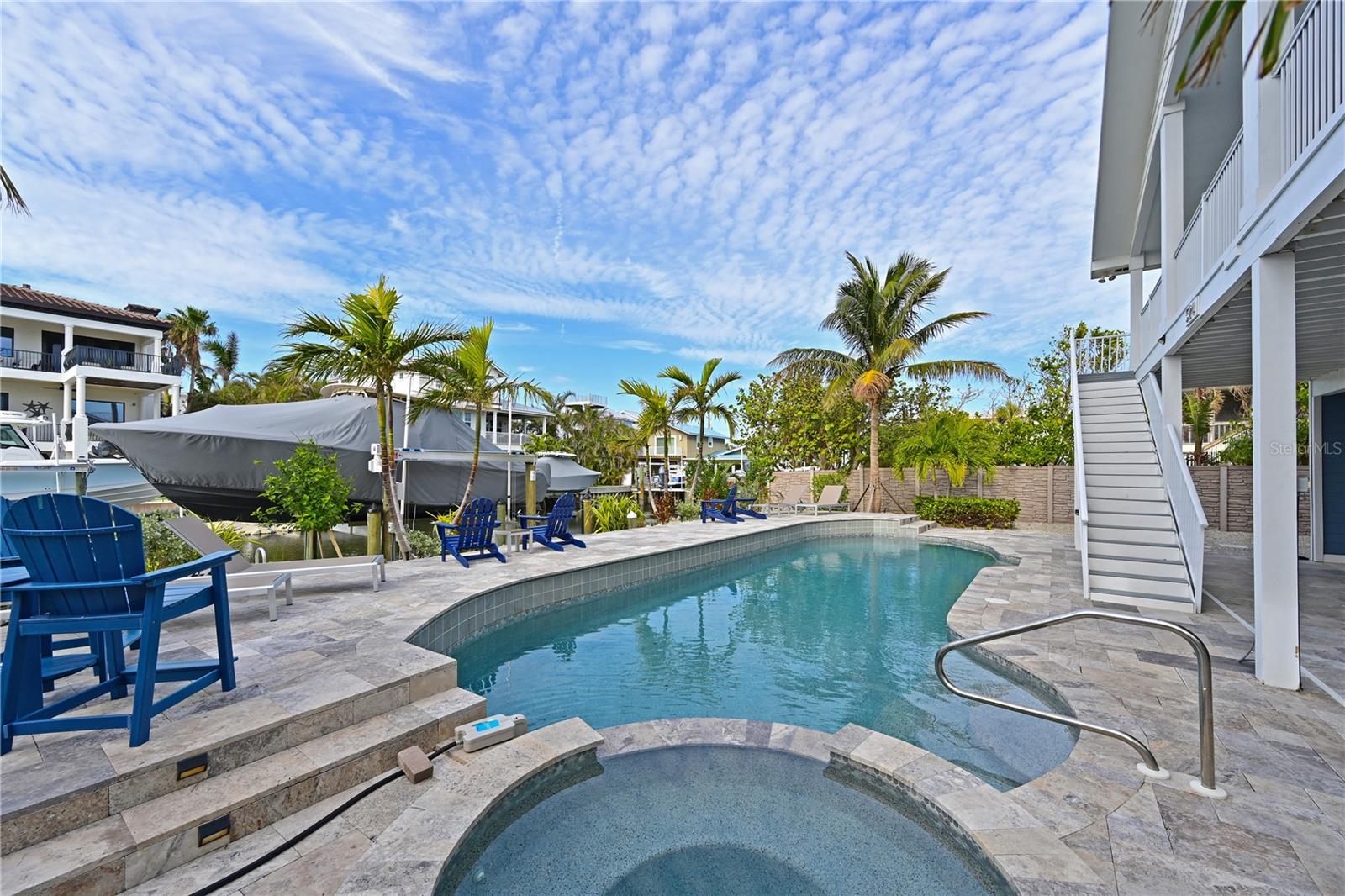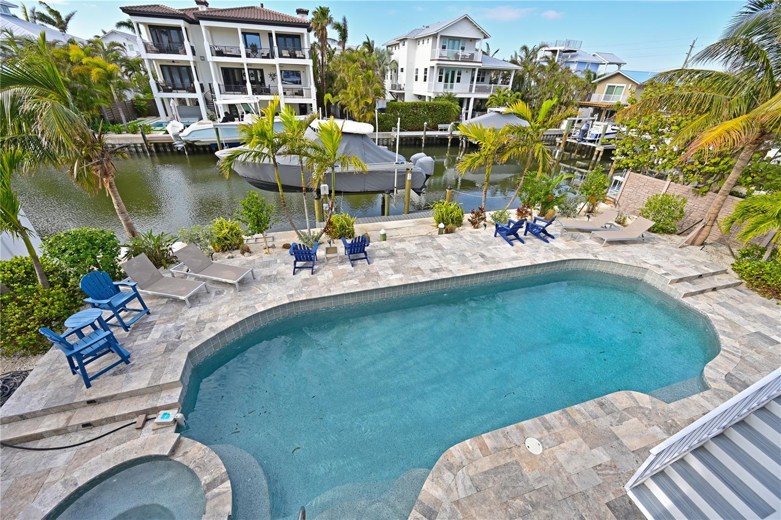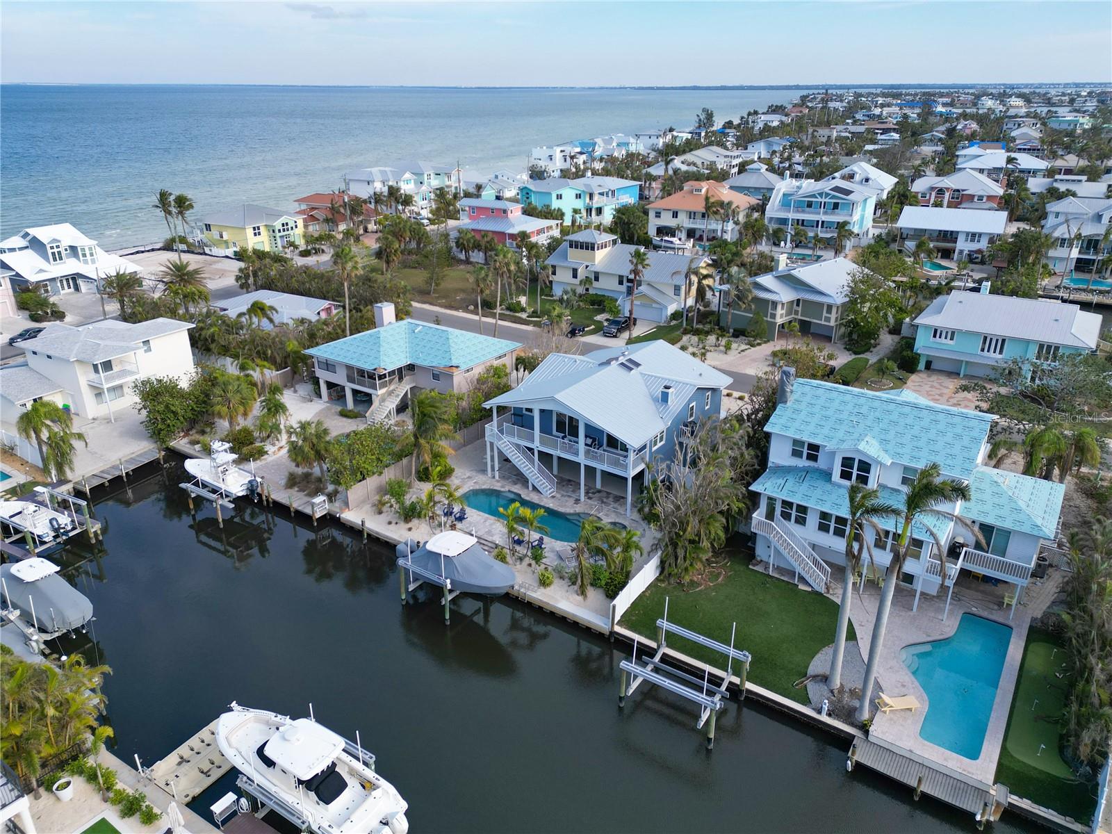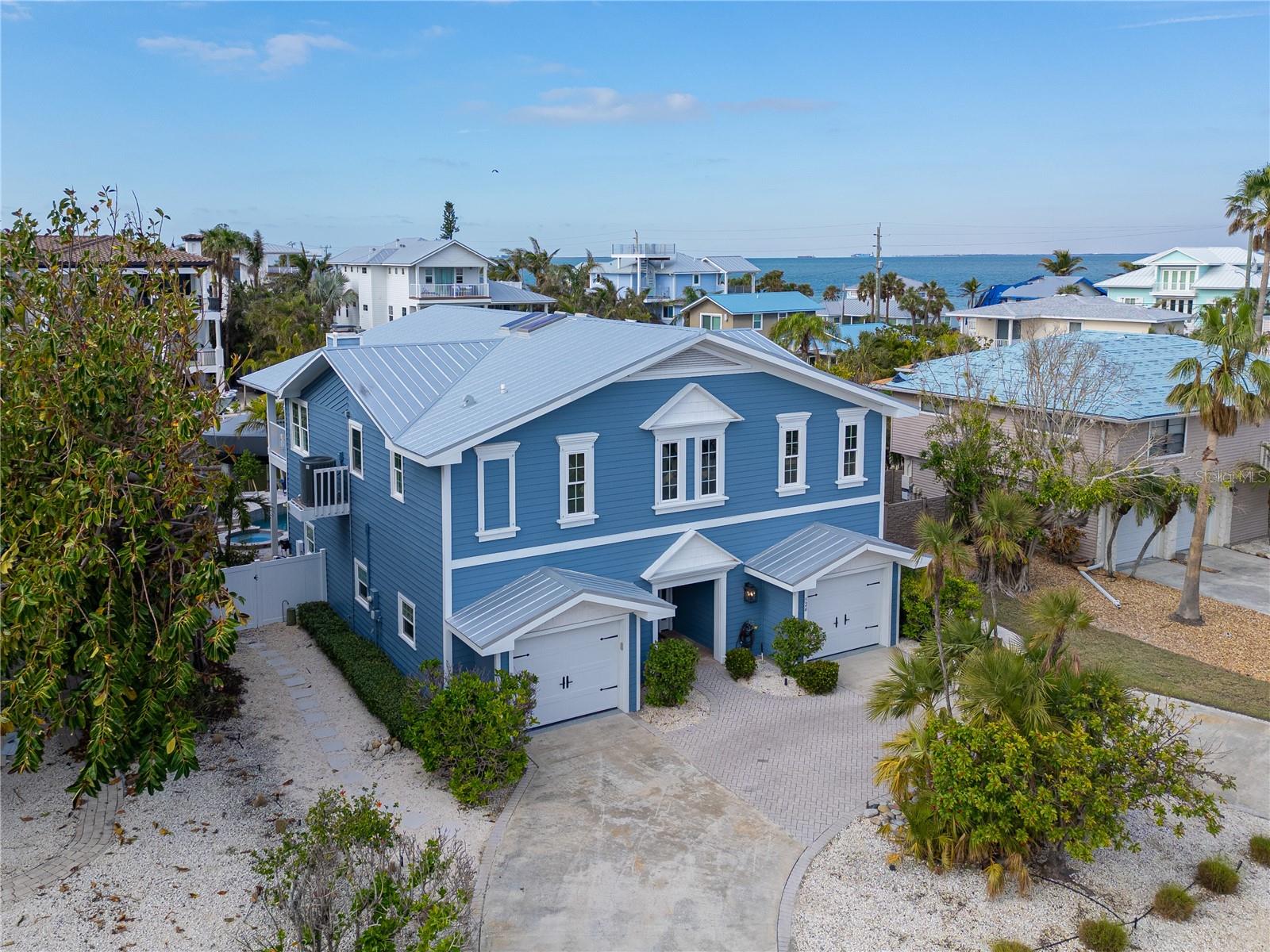 This newly remodeled home in the center of Anna Maria Island is just a short stroll to Pine Ave with all its shops and restaurants. The beach is right down the street. This home has so many beautiful features and a wide open floor plan for entertaining guests. Each bedroom has its own walk-in closet and master bath with designer fixtures. The back upper deck is the width of the entire home and has a back porch swing and lots of seating areas. The lower porch runs the entire width of the home also and is covered and looks out to the beautiful pool area with its many seating areas for large gatherings. The backyard has one of the largest pools on the island and has new landscaping and palms . The pool and spa have new equipment with a new pool pump and heater. Come bring your boat- there is a new raised seawall , dock and 16,000 lb boat lift- No bridges to the open water. The metal roof was installed in 2019 and the outside was just freshly painted. There is a circular drive and two separate garages that will hold multiple cars and golf carts. Come see why this is one of the worlds top 10 destinations to vacation. And then imagine being able to live here in your own private paradise.