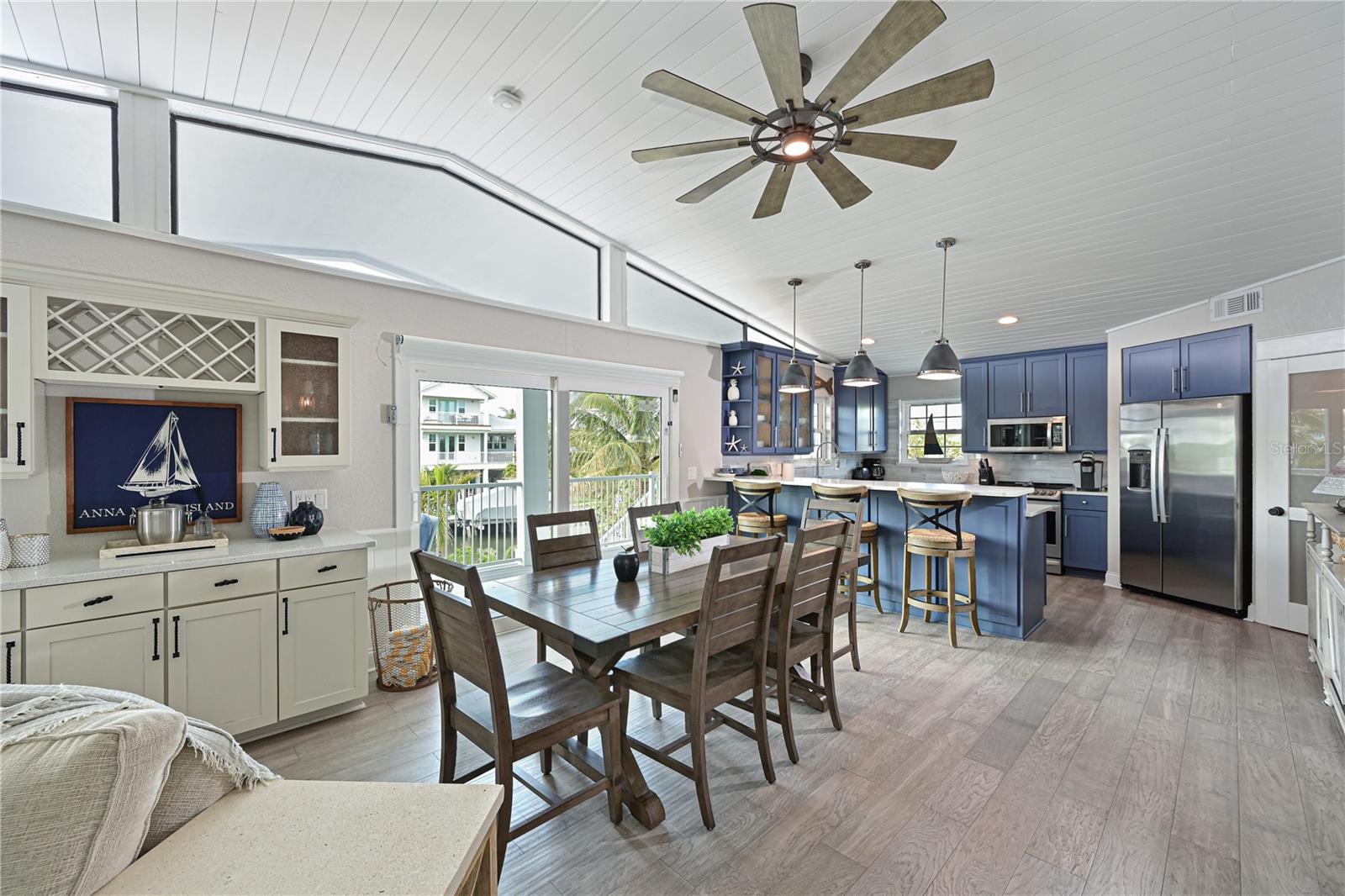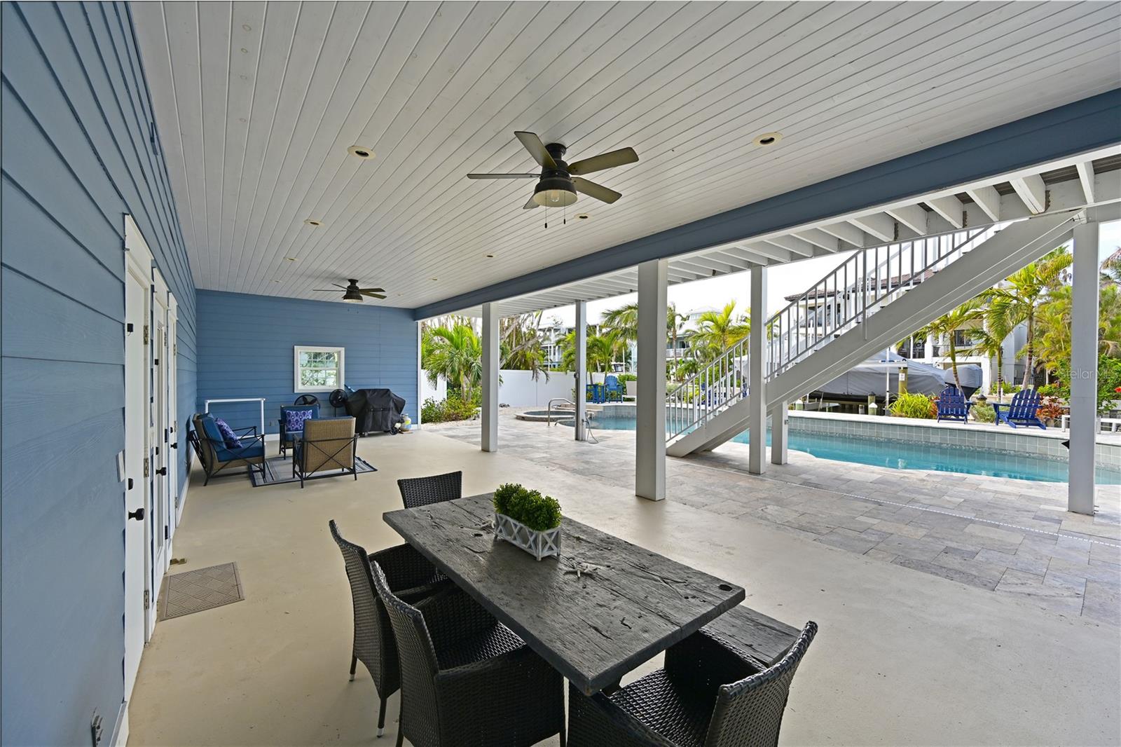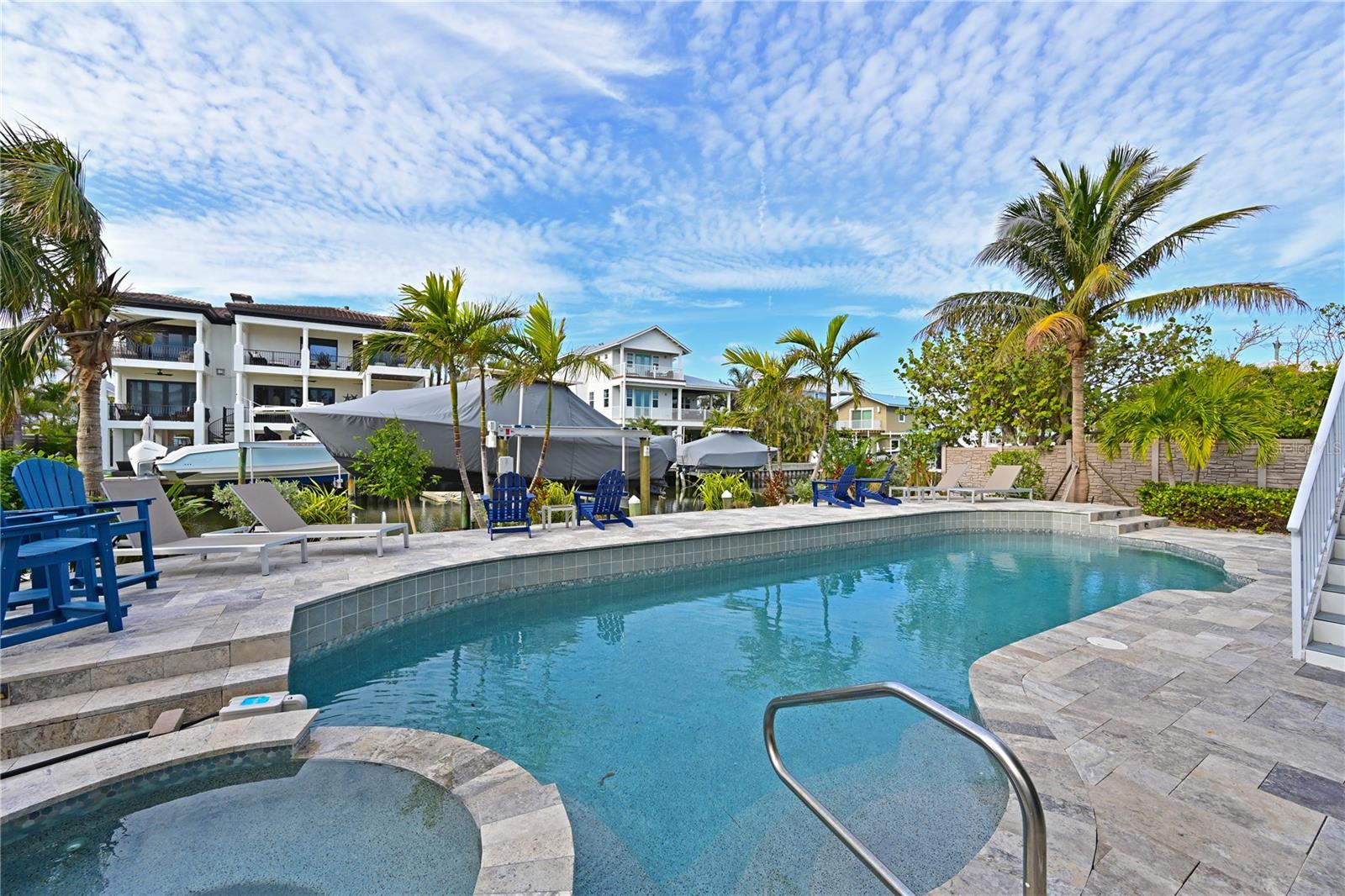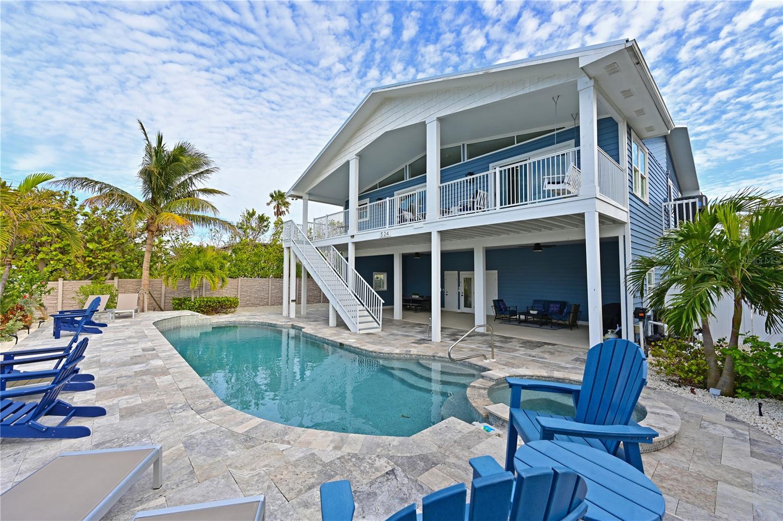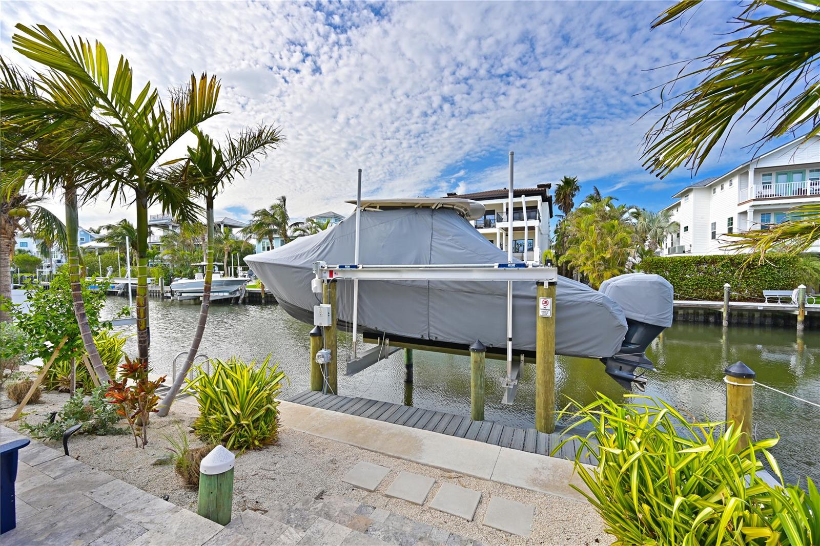 This newly remodeled home in the center of Anna Maria Island is just a short stroll to Pine Ave with all its shops and restaurants. The beach is right down the street. This home has so many beautiful features and a wide open floor plan for entertaining guests. Each bedroom has its own walk-in closet and master bath with designer fixtures. The back upper deck is the width of the entire home and has a back porch swing and lots of seating areas. The lower porch runs the entire width of the home also and is covered and looks out to the beautiful pool area with its many seating areas for large gatherings. The backyard has one of the largest pools on the island and has new landscaping and palms . The pool and spa have new equipment with a new pool pump and heater. Come bring your boat- there is a new raised seawall , dock and 16,000 lb boat lift- No bridges to the open water. The metal roof was installed in 2019 and the outside was just freshly painted. There is a circular drive and two separate garages that will hold multiple cars and golf carts. Come see why this is one of the worlds top 10 destinations to vacation. And then imagine being able to live here in your own private paradise.