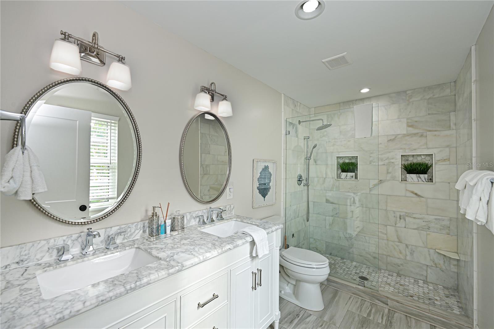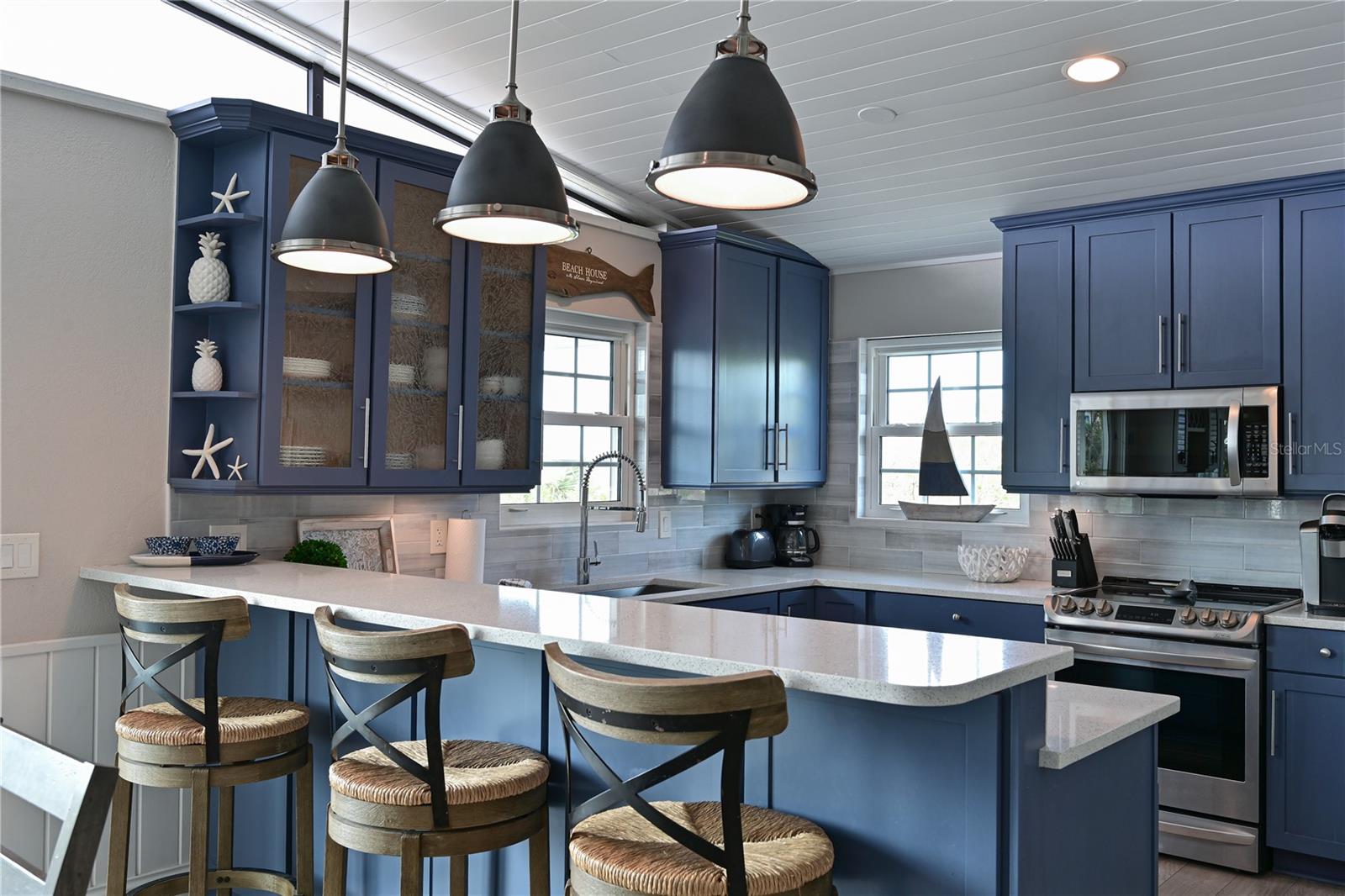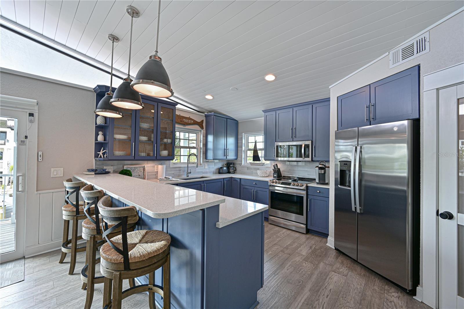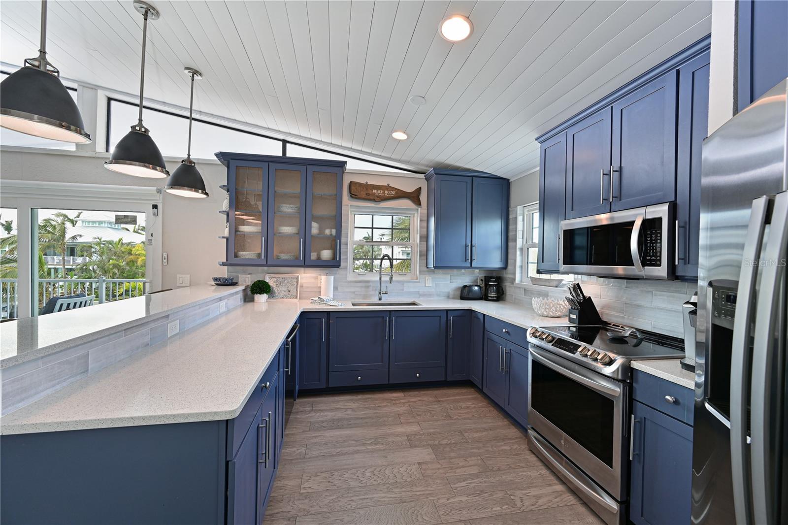 This newly remodeled home in the center of Anna Maria Island is just a short stroll to Pine Ave with all its shops and restaurants. The beach is right down the street. This home has so many beautiful features and a wide open floor plan for entertaining guests. Each bedroom has its own walk-in closet and master bath with designer fixtures. The back upper deck is the width of the entire home and has a back porch swing and lots of seating areas. The lower porch runs the entire width of the home also and is covered and looks out to the beautiful pool area with its many seating areas for large gatherings. The backyard has one of the largest pools on the island and has new landscaping and palms . The pool and spa have new equipment with a new pool pump and heater. Come bring your boat- there is a new raised seawall , dock and 16,000 lb boat lift- No bridges to the open water. The metal roof was installed in 2019 and the outside was just freshly painted. There is a circular drive and two separate garages that will hold multiple cars and golf carts. Come see why this is one of the worlds top 10 destinations to vacation. And then imagine being able to live here in your own private paradise.