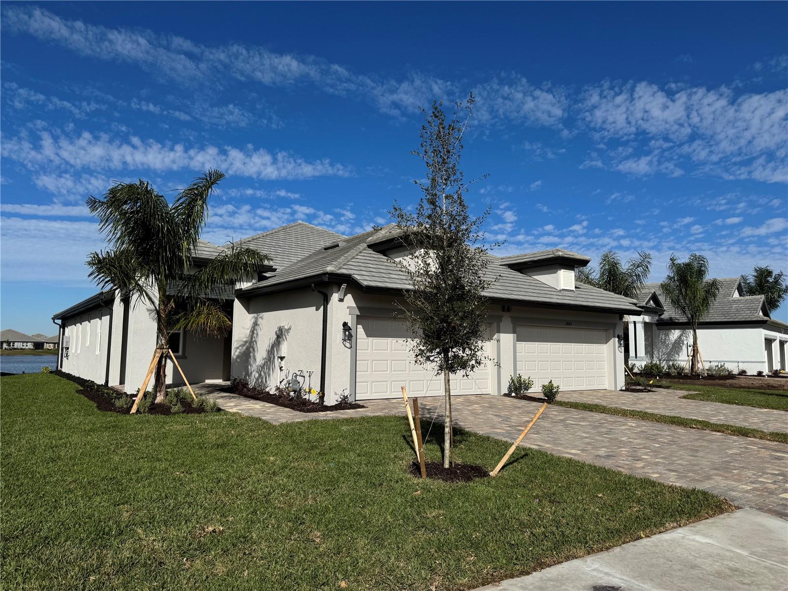 Builder Promotion ALL Closing Costs Paid! **SPECIAL FINANCING AVAILABLE FOR A LIMITED TIME ONLY FROM PREFERRED LENDER. RESTRICTIONS APPLY, FOR QUALIFIED BUYERS, SUBJECT TO APPLICABLE TERMS AND CONDITIONS. SUBJECT TO CHANGE WITHOUT NOTICE** Brand New and Move In Ready, Lakefront Villa in Sweetwater Lakewood Ranch. The Topaz villa's floorplan includes two bedrooms, two bathrooms, den, and a two-car garage. Enter in from the extended entryway, perfect for sipping your morning coffee, and head straight in the front door and into the heart of the home. A cozy den is tucked into the side with optional doors for maximum privacy. A Gourmet chef's kitchen awaits with a large center island, beautiful cabinetry, an abundant amount of countertop space, gas range, wine bar, and a pantry to provide extra storage. Across the kitchen is the dining area, followed by the large great room. Sliding glass doors cover the back wall and open to the covered lanai with beautiful sunset views on the lake. The owner's suite shares this wing of the house with an optional tray ceiling for a spacious feeling. The bedroom leads into the bathroom with quartz counter tops, a walk-in shower, and a spacious walk-in closet. Nestled in the front of the Topaz are a bedroom and a full bathroom. A large laundry and utility room sits beside the bathroom, creating great accessibility to the rest of the home. You will enjoy all the amenities in Sweetwater, including pickleball, tennis, 2 swimming pools, fitness center, clubhouse, gated community and more.
