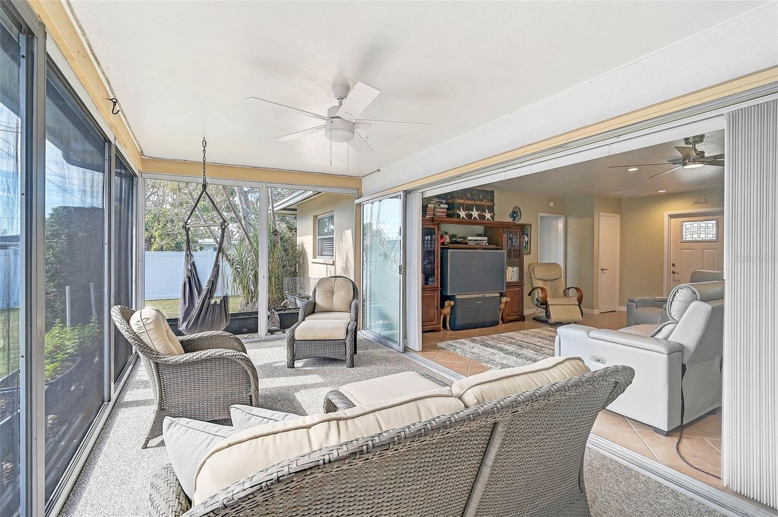 Welcome to your charming new home in Venice Gardens! Step inside this inviting 2-bedroom, 2-bathroom residence and immediately feel at home. The spacious living room, with its sliding glass doors, seamlessly connects to a screened-in lanai--perfect for enjoying the delightful seasonal weather. The adjacent dining area sets the scene for memorable holiday meals, while the kitchen boasts modern upgrades, including a newer induction oven, microwave, dishwasher, and reverse osmosis system. The cozy eat-in dinette, complete with an additional sliding door, provides a peaceful spot for your morning coffee and fresh air.The generous primary bedroom offers a tranquil retreat, featuring an upgraded ensuite bathroom with a double vanity. The second bedroom is thoughtfully separated for privacy, with a guest bathroom conveniently nearby. The large 2-car garage includes built-in storage and a new Wi-Fi-enabled garage door for added convenience. Notable upgrades include a NEWER ROOF (2023), a Square D Electric Panel (2023) with surge protector, UV light in HVAC with new ductwork (2017), and re-plumbing of the potable water system.Outside, enjoy the expansive, completely fenced-in backyard, which includes 3 storage sheds and a charming treehouse--perfect for both relaxation and recreation. Save space for your boat or RV because there are double doors through the backyard fence to pull in your favorite recreational toys!This home is ideally located just steps from the Venice Gardens Civic Association, offering access to the community pool with an optional membership and a low annual fee. Enjoy the vibrant local scene with an array of restaurants, shopping, and activities. Venice Beach and Downtown Venice are just 4 miles away, where you can enjoy art festivals, parades, and explore the "Shark Tooth Capital of the World." For sports fans, Wellen Park and CoolToday Park--home to the Atlanta Braves' spring training--are only 8 miles away, offering even more entertainment options.This is truly a place to call home!